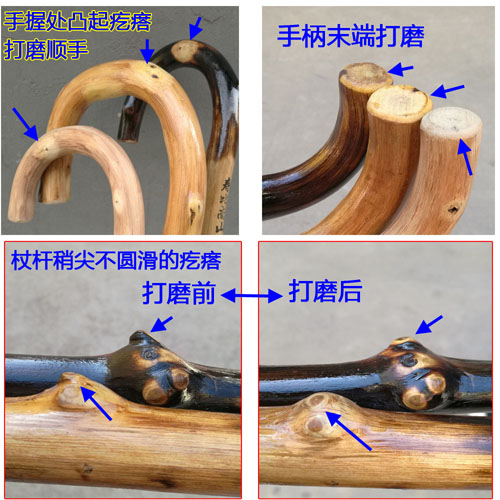是否更直、手柄弧度是否更圆滑、光泽、疤痕、木质密度等
