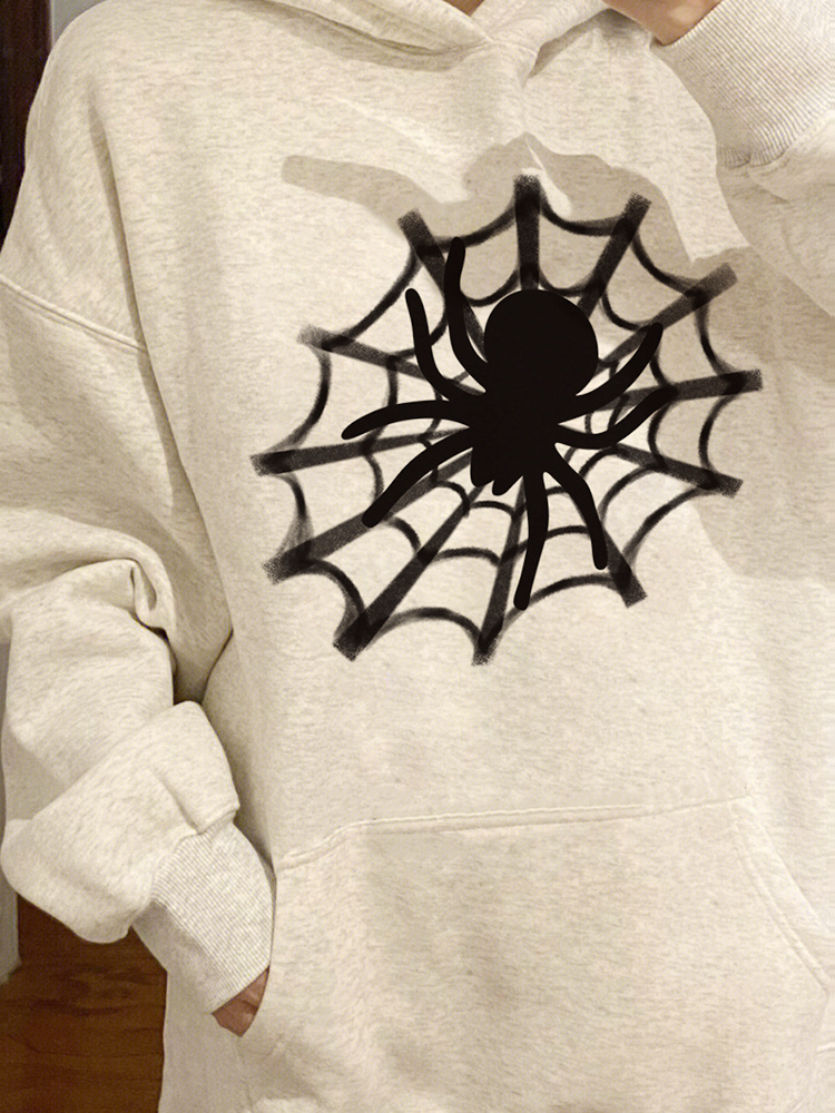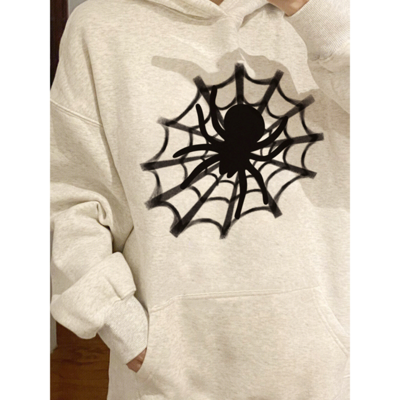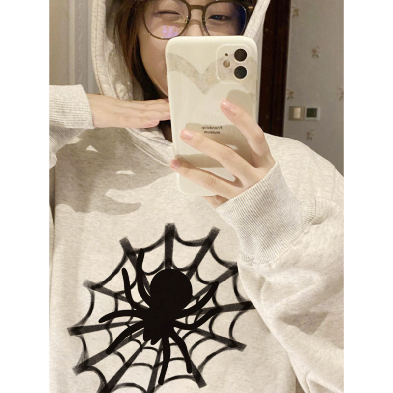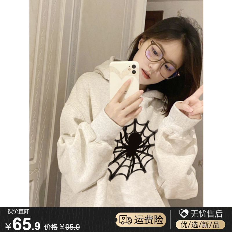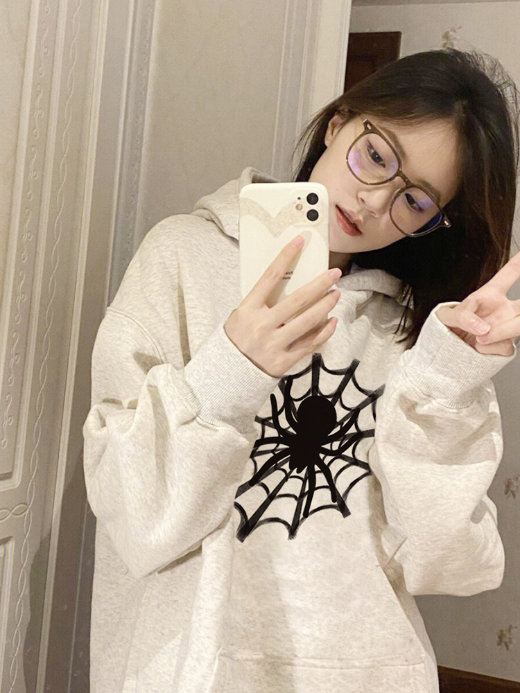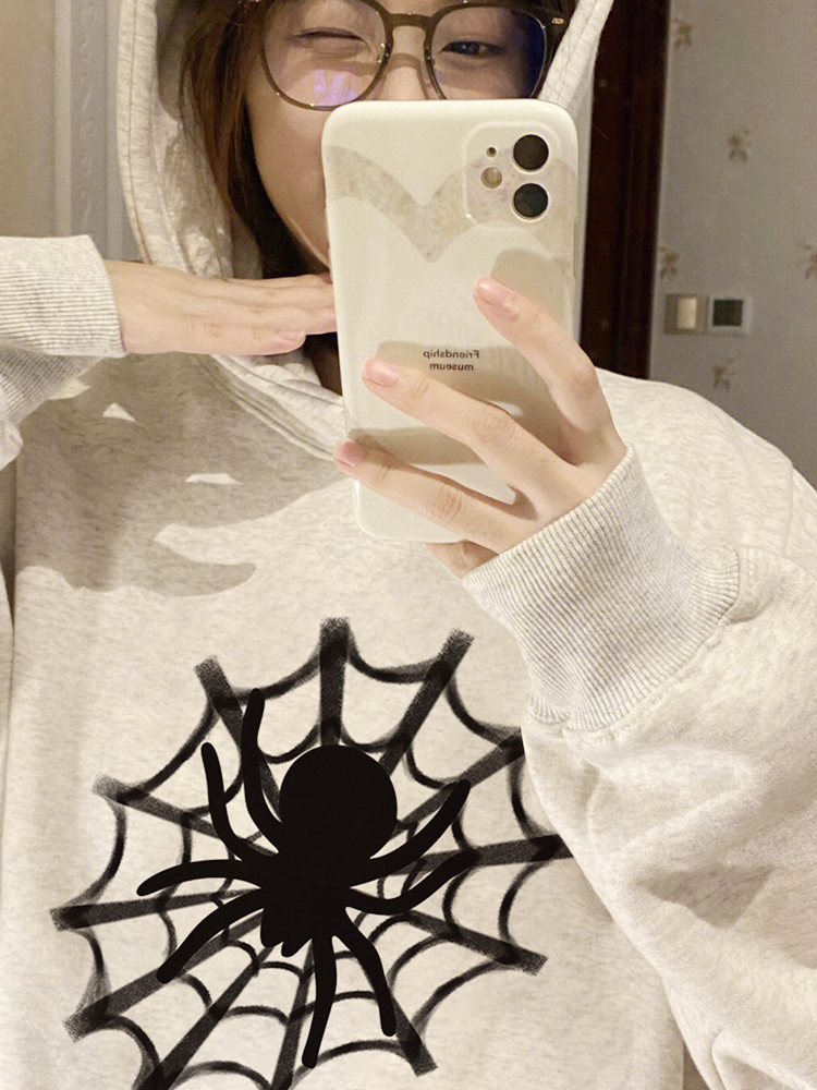 美式高街蜘蛛連帽運動衫女春秋薄款設計感小眾ins國潮寬鬆上衣外套