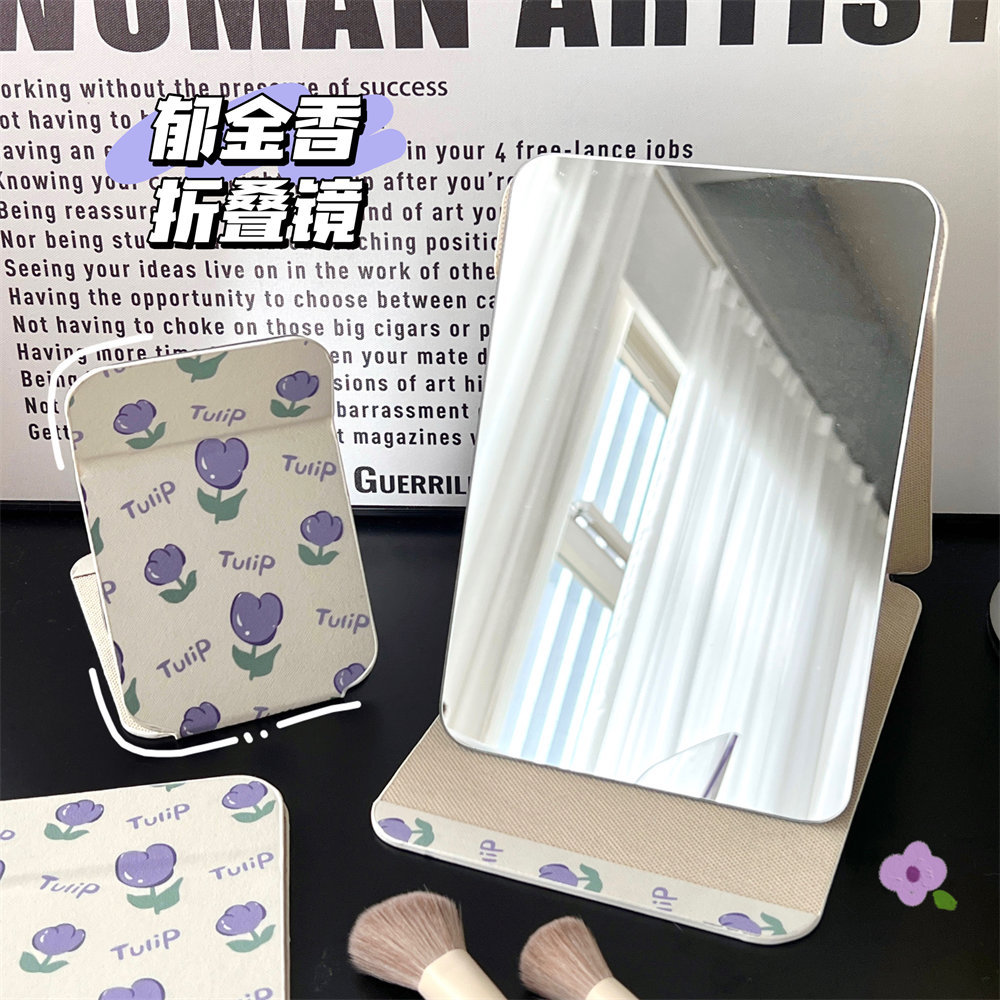 ins风折叠郁金香小镜子化妆镜学生宿舍女生桌面梳妆镜便携易携带