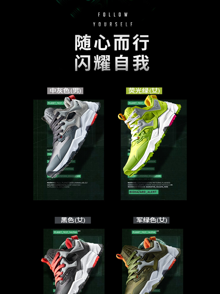顏色分類 淺灰色-女(機械豹) 墨綠色-男(機械豹) 軍綠色-男 中灰色-男 黑色-女 螢光綠-女