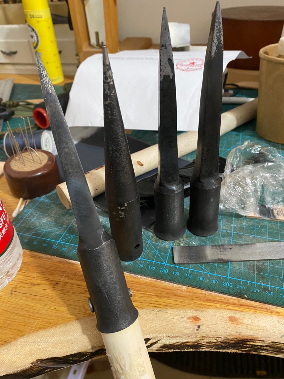 手工锻打每一把尺寸有略微误差,表面不是很光滑,各种小瑕疵这些都不影响使用,毕竟是手工做的 不是模具铸造出来的,所以不做表面加工处理,,使用一段时间就光滑了。