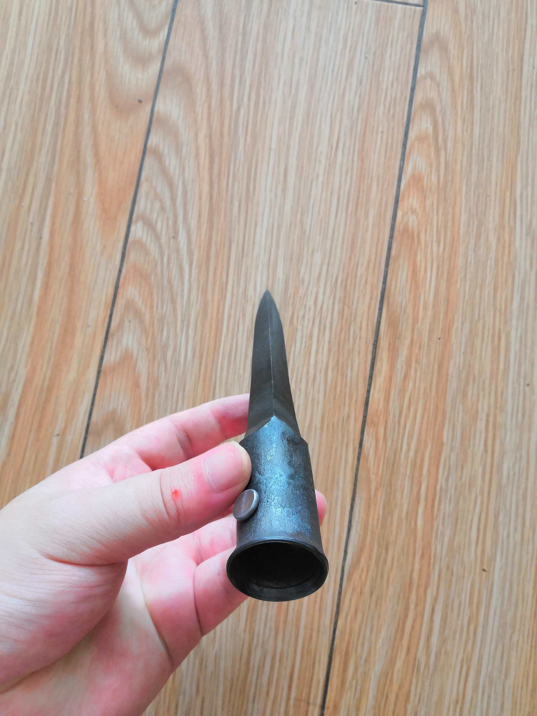 手工一体锻打轴承钢钢制登山杖尖 200克左右。一体成型 绝非焊接