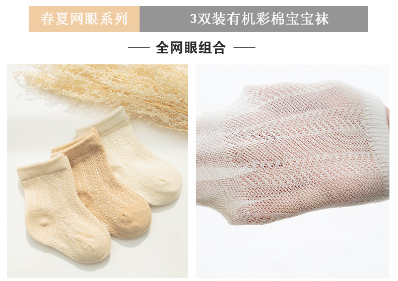 春夏新款新生儿彩棉婴儿袜子0-1岁0-3岁宝宝网眼无骨薄款儿童袜子