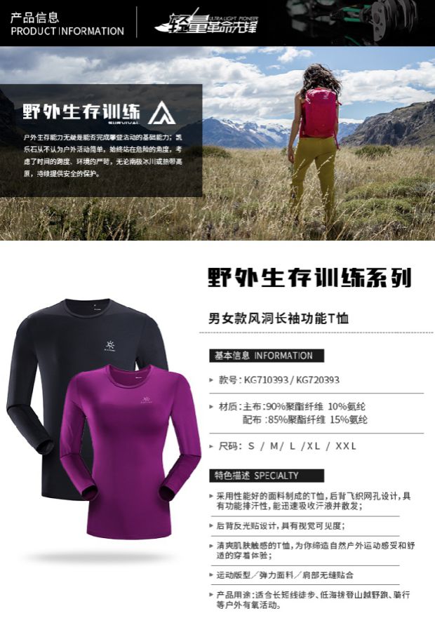 kailas凱樂石長袖速乾衣男女情侶款飛織排汗純色功能T恤風洞透氣