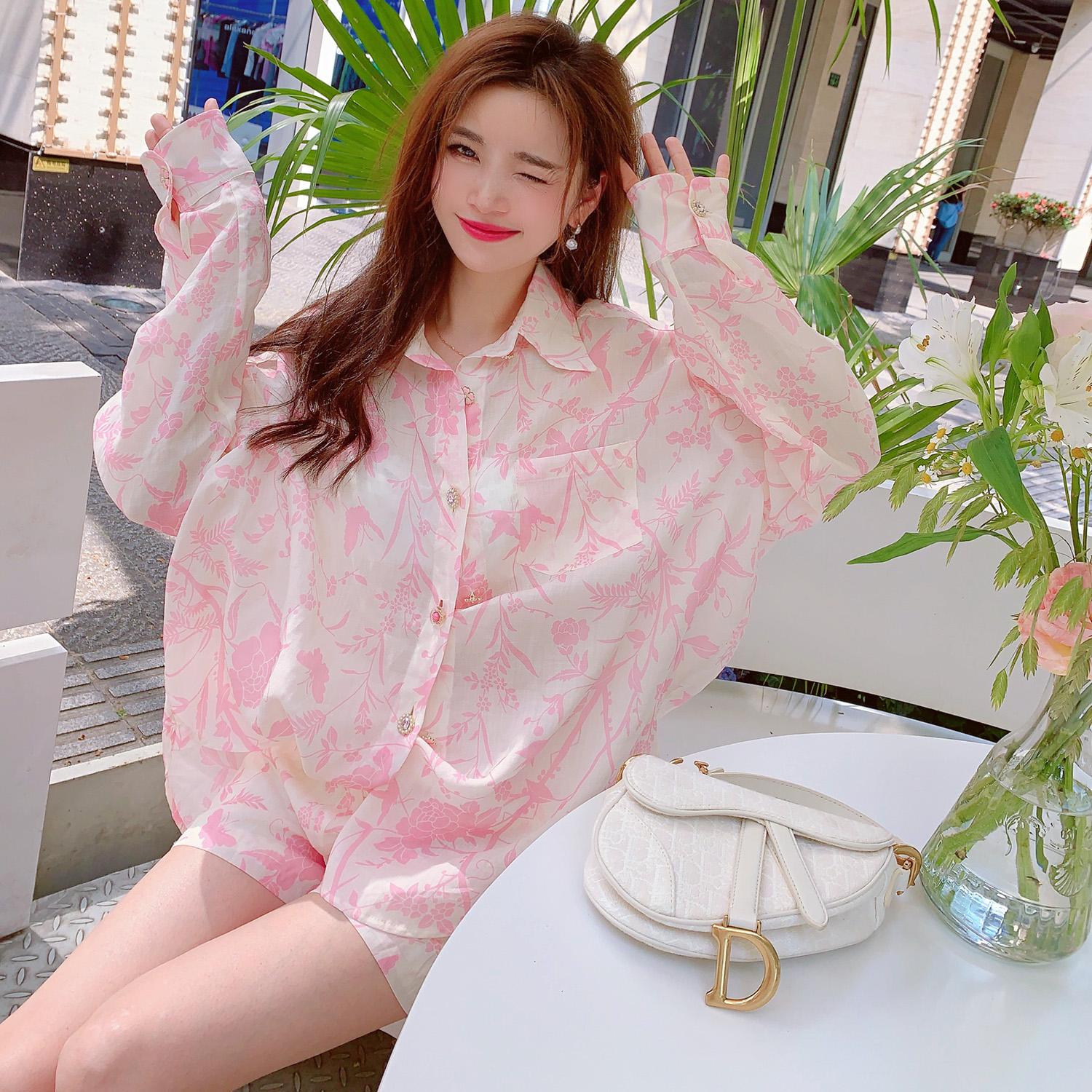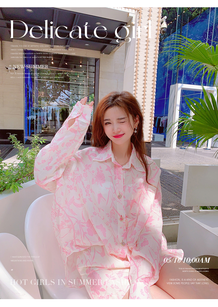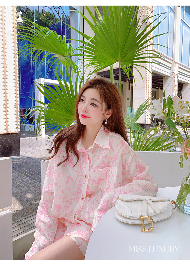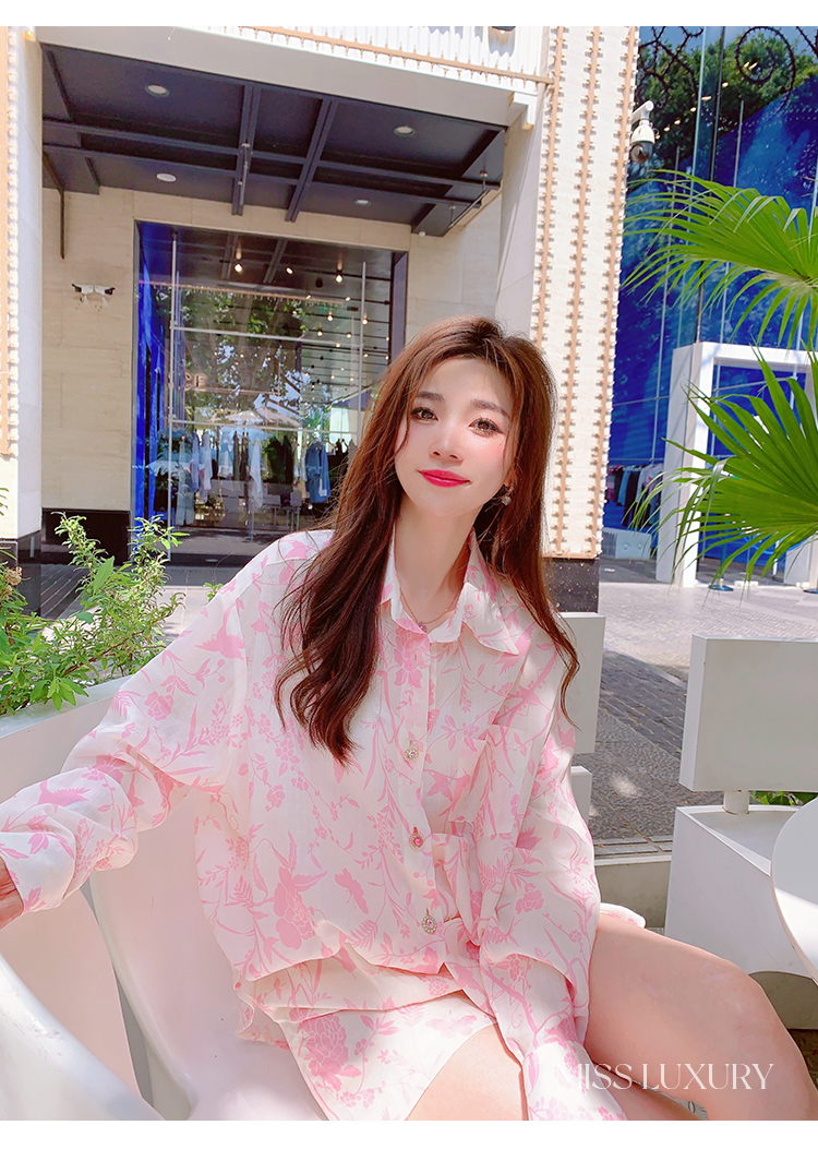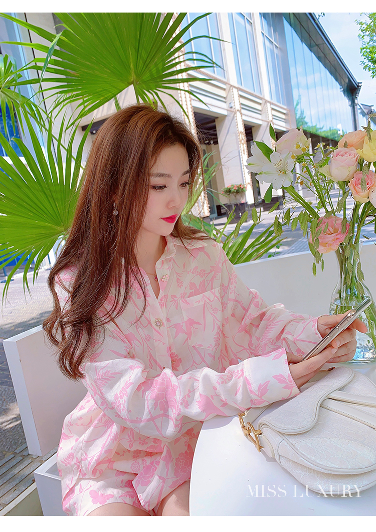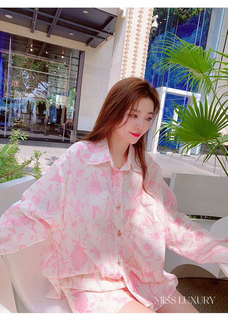 MissLuxury『浪漫滿屋』2023夏季高級感天絲棉防曬襯衫女夏季套裝