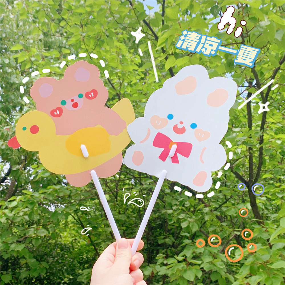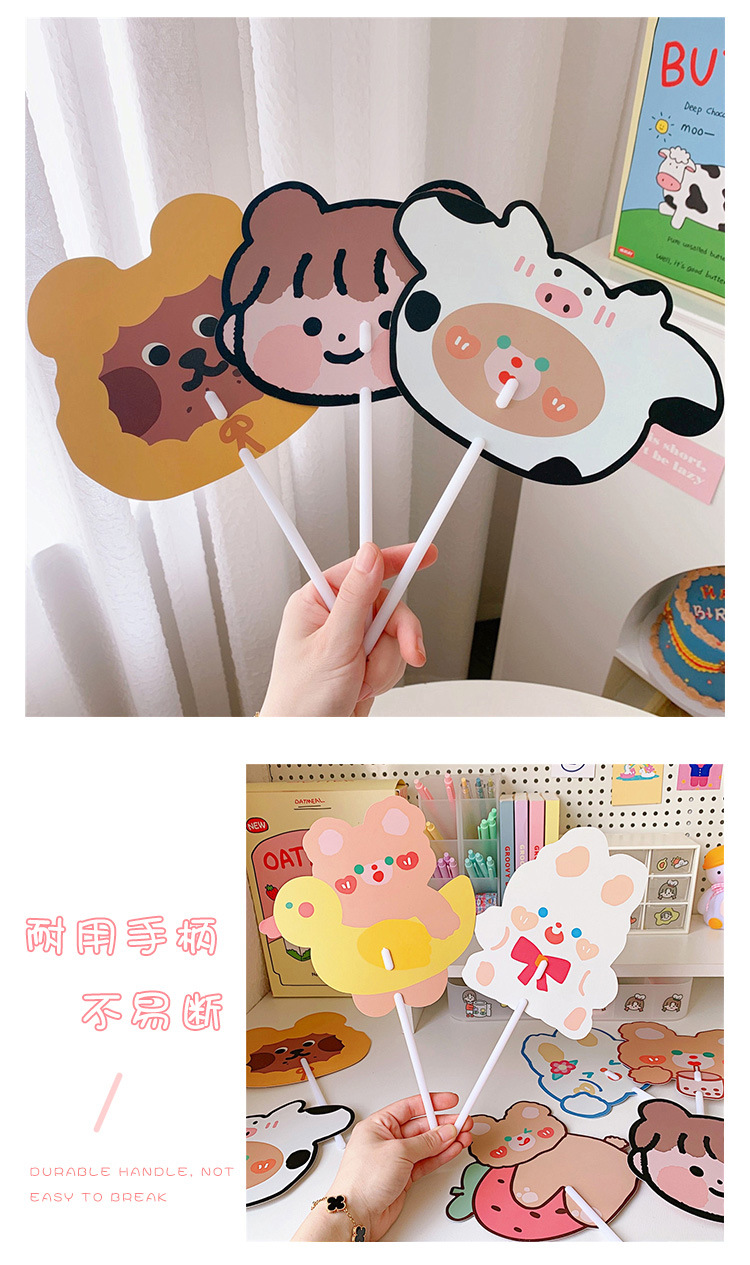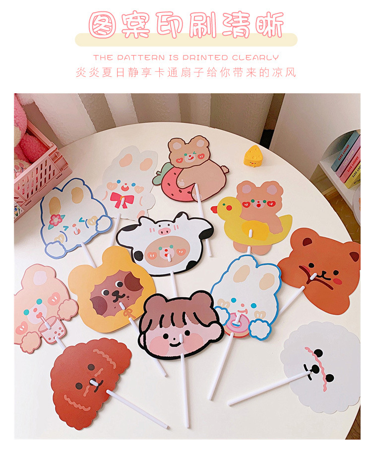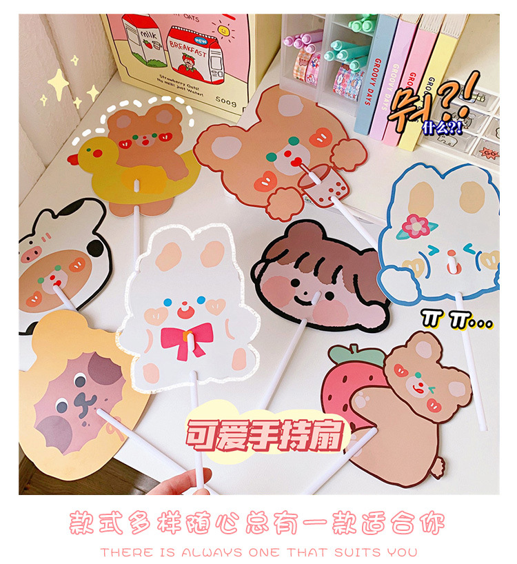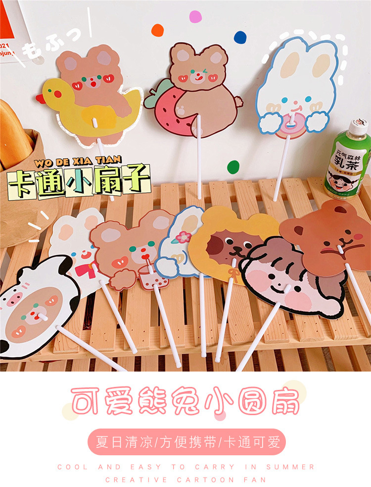 日系可爱小熊小兔卡通扇子儿童学生手持异形小扇子学生礼品小圆扇