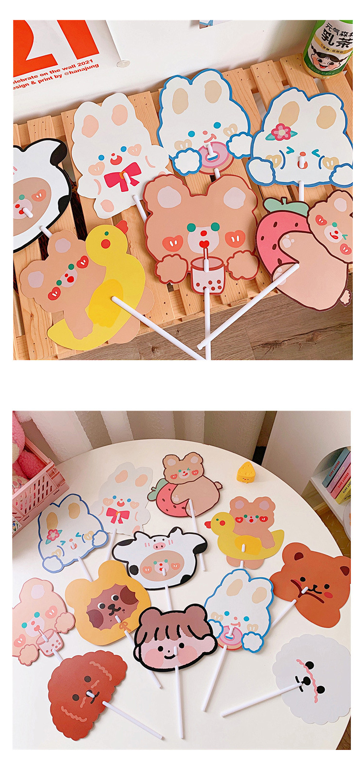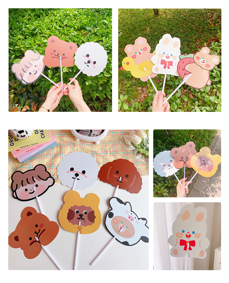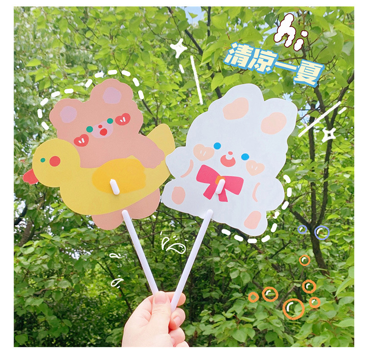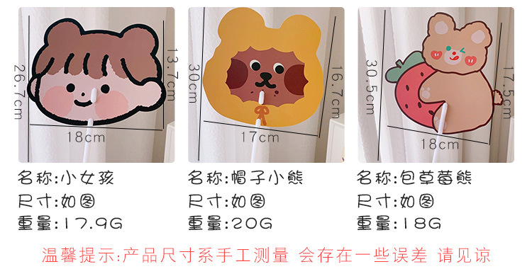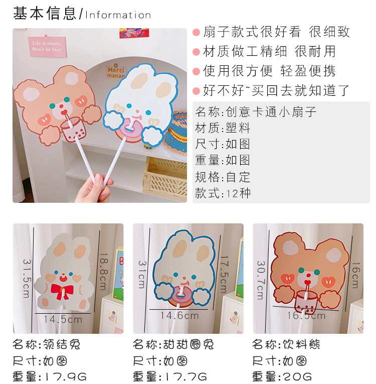 日系可爱小熊小兔卡通扇子儿童学生手持异形小扇子学生礼品小圆扇