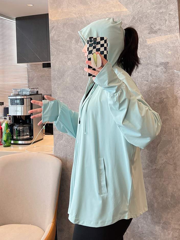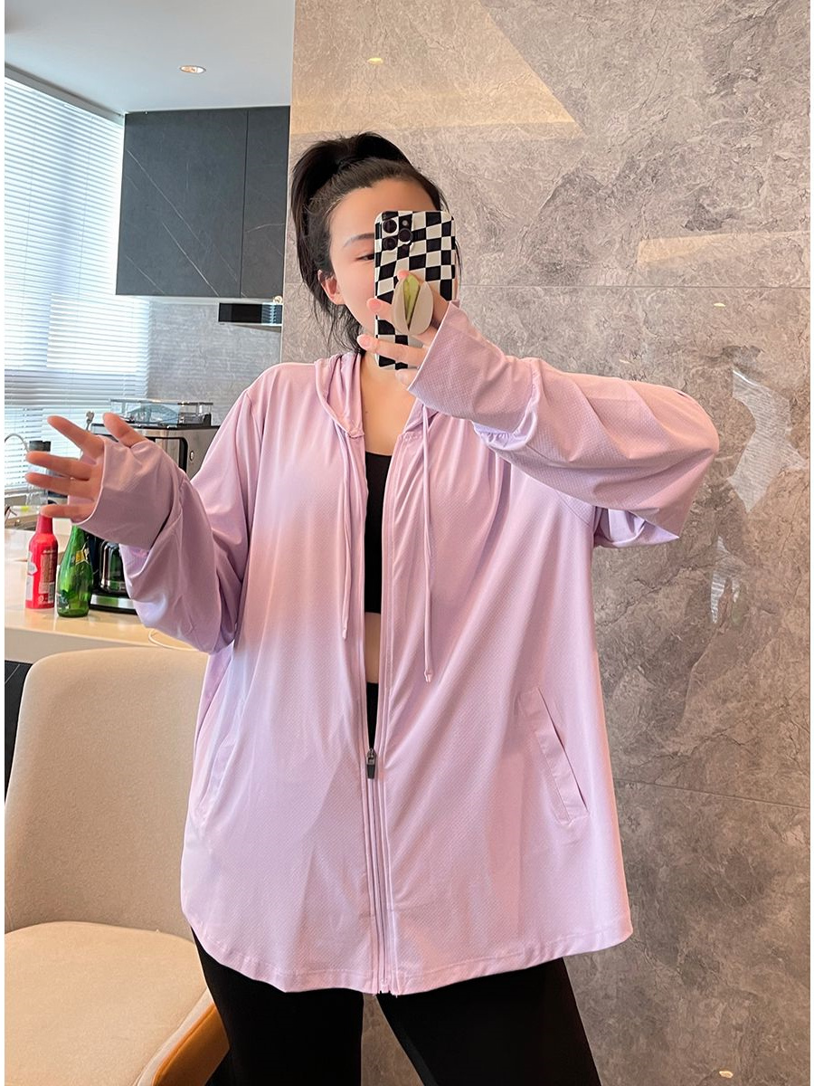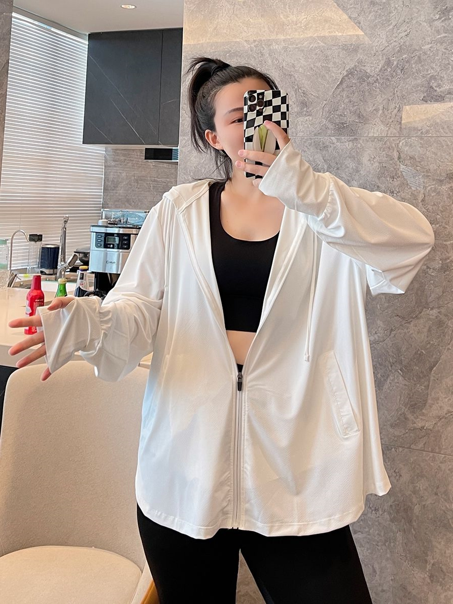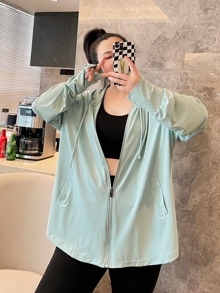 連帽運動外套女寬鬆跑步健身服大尺碼女裝300斤胖MM寬鬆長袖防曬衣