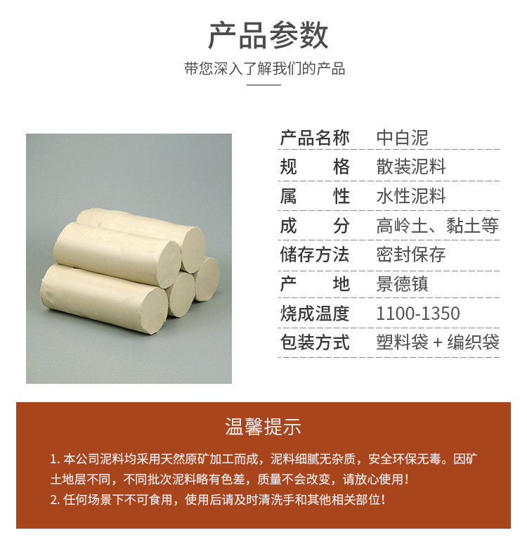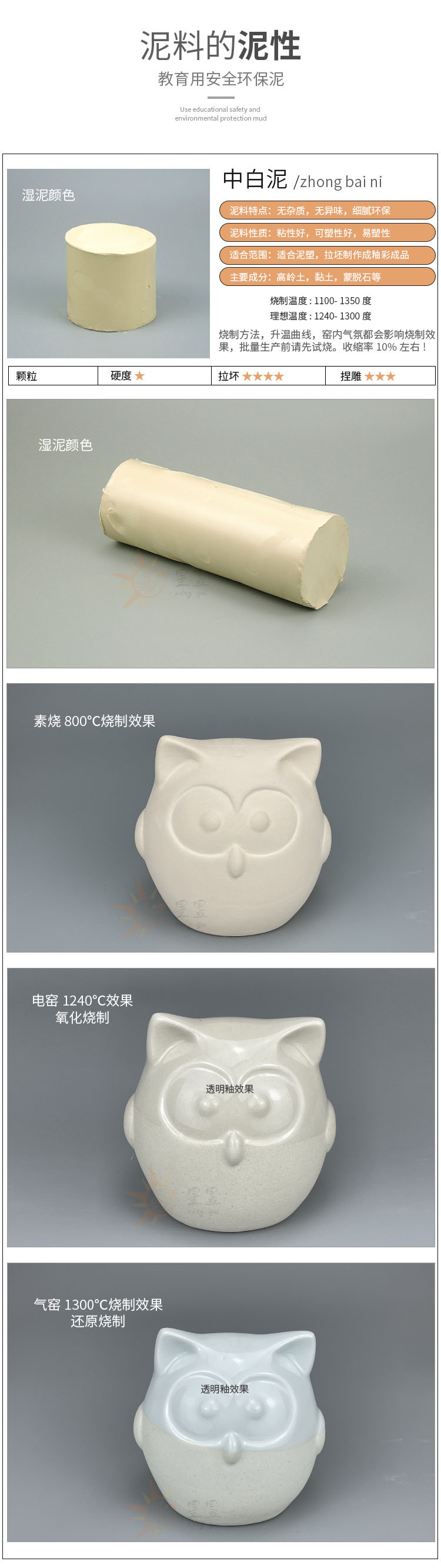中白瓷泥陶艺用泥学校陶吧高岭土陶土陶泥瓷泥教学专业用泥拉坯泥