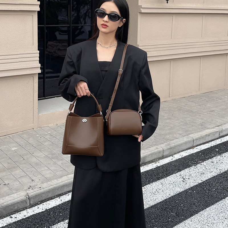 2024新款水桶包手提真皮单肩女包子母包软皮大容量简约时尚斜挎包