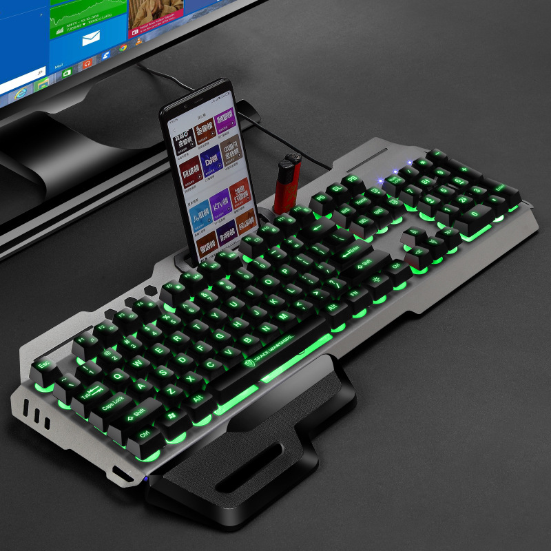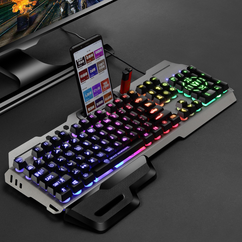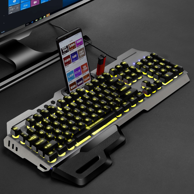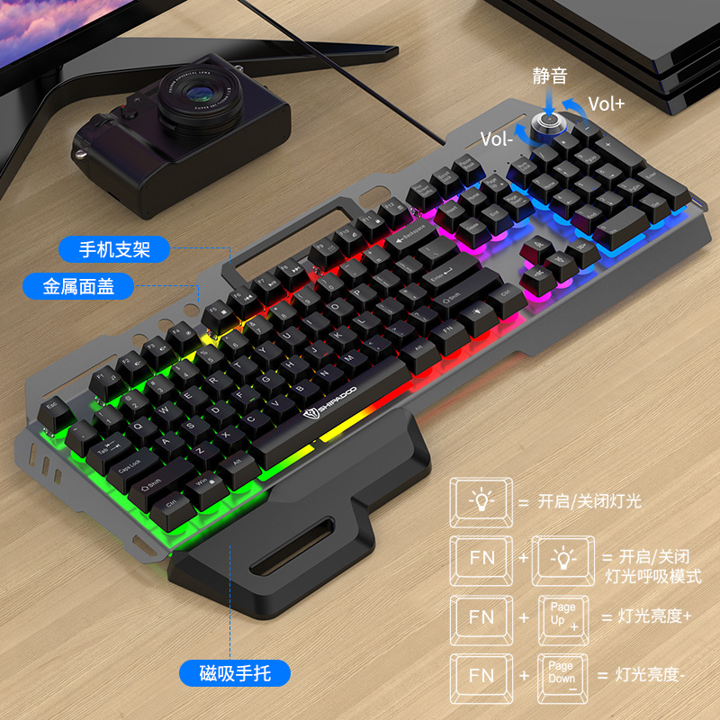 十八渡GK70 高低键帽金属铁板字符发光加宽手托旋钮游戏有线键盘