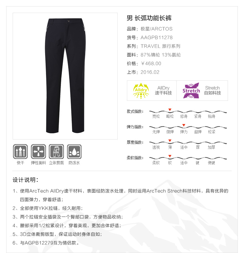 特價極星戶外男功能褲 春夏吸汗速乾褲四面彈力登山長褲AGPB11278
