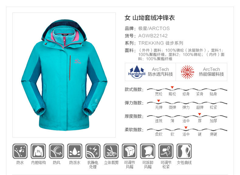 斷碼特價極星三防衝鋒衣男女三合一外套可拆卸加絨防水防風戶外服