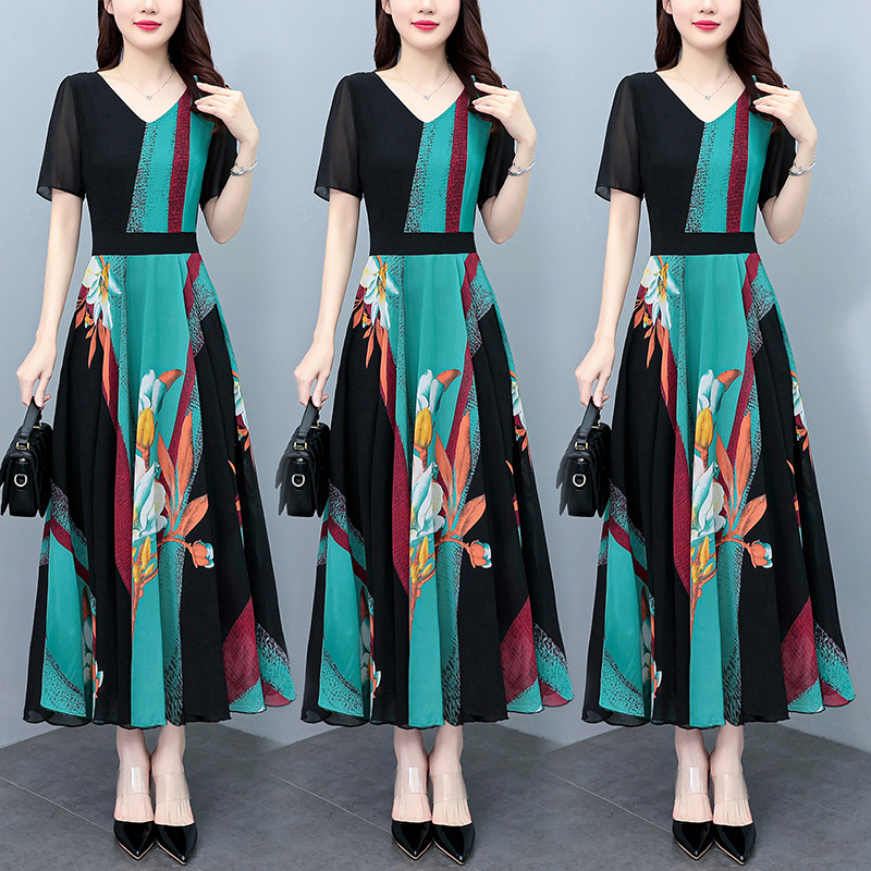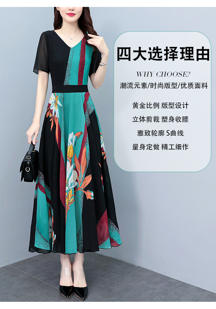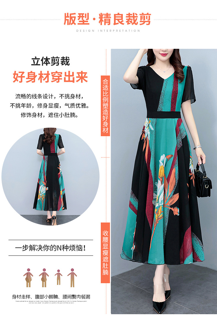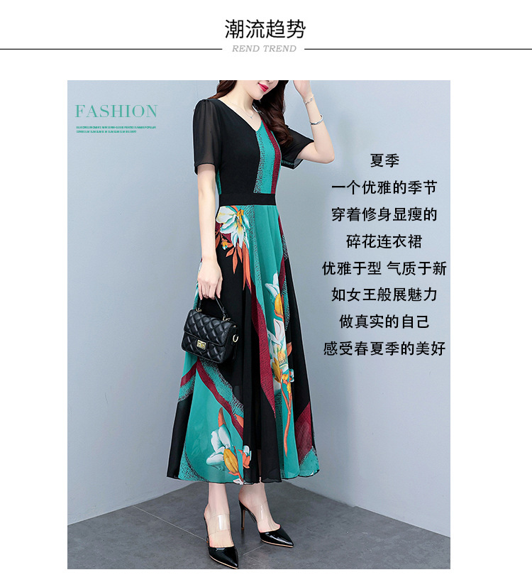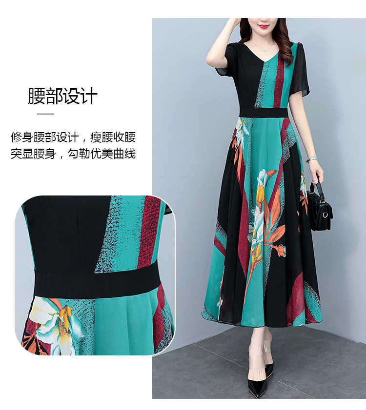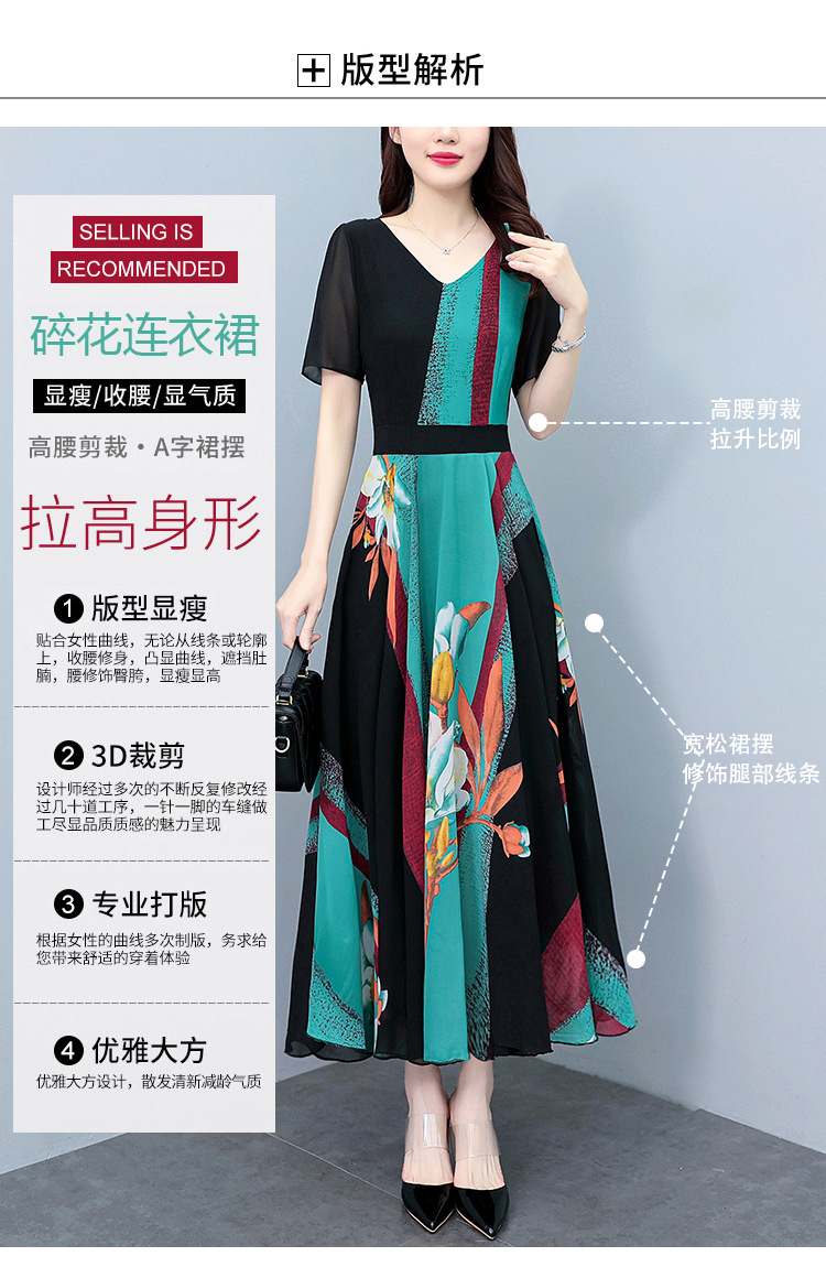 2023夏季新款高档碎花雪纺连衣裙长款大码胖mm收腰显瘦遮肚子长裙