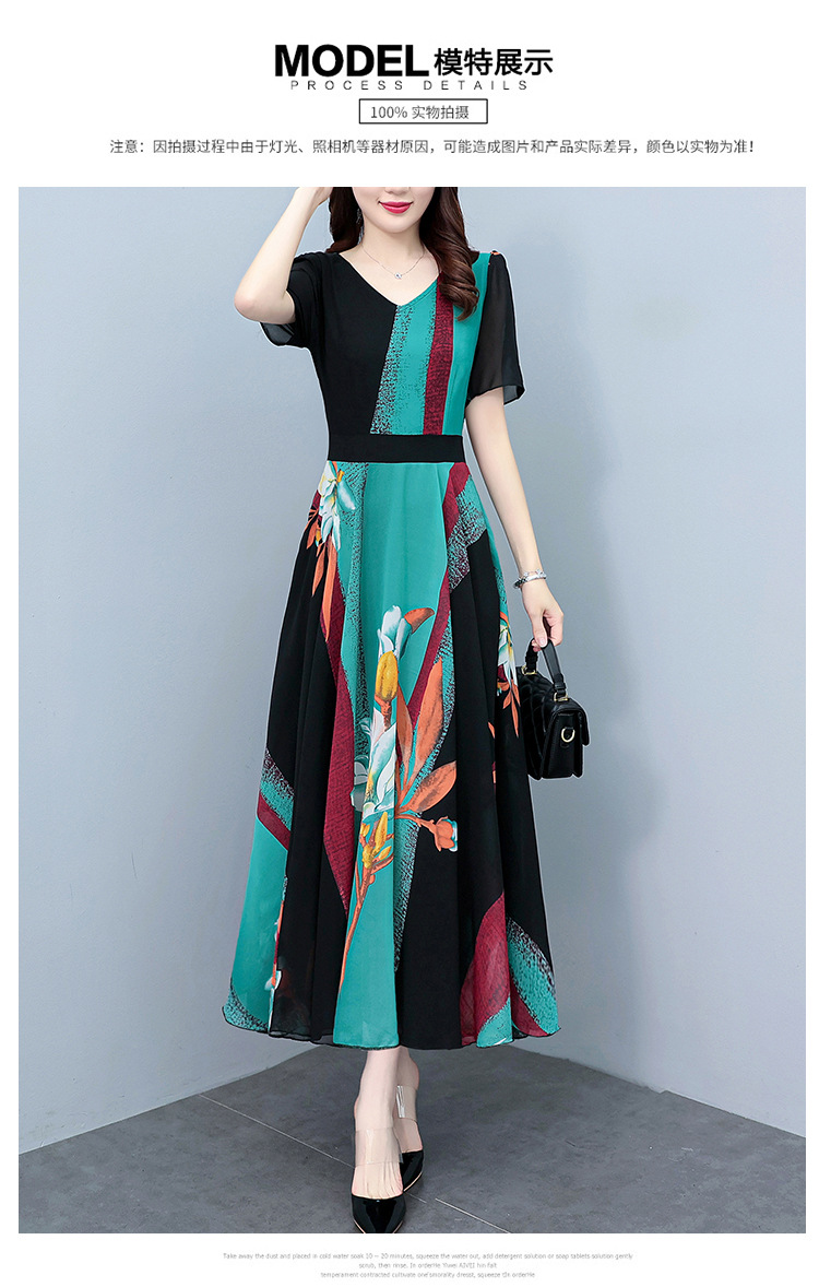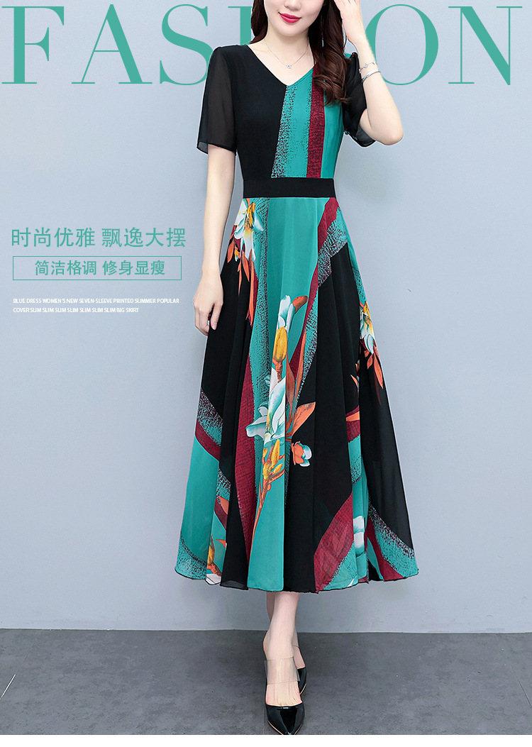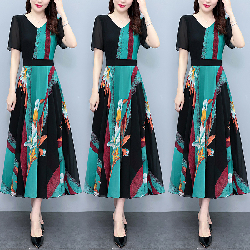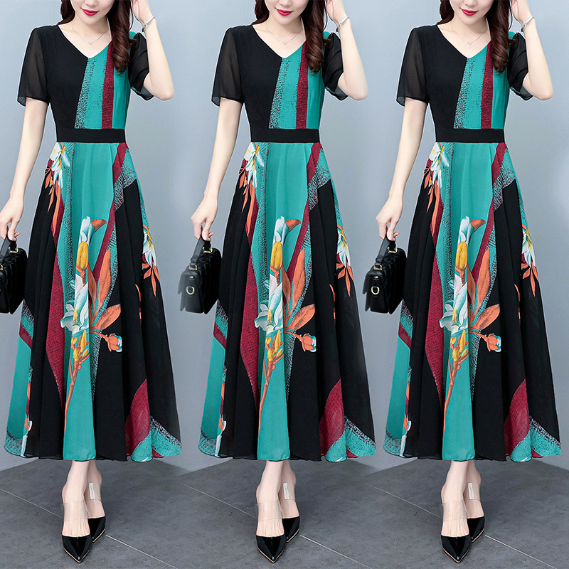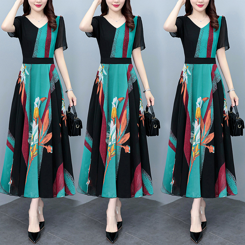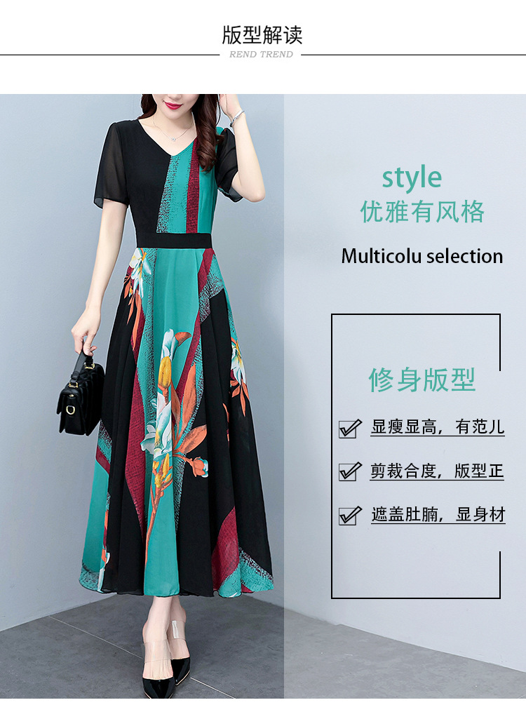 2023夏季新款高档碎花雪纺连衣裙长款大码胖mm收腰显瘦遮肚子长裙