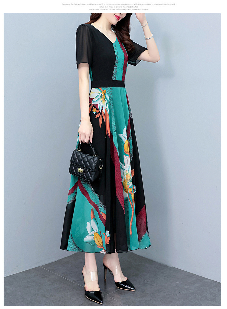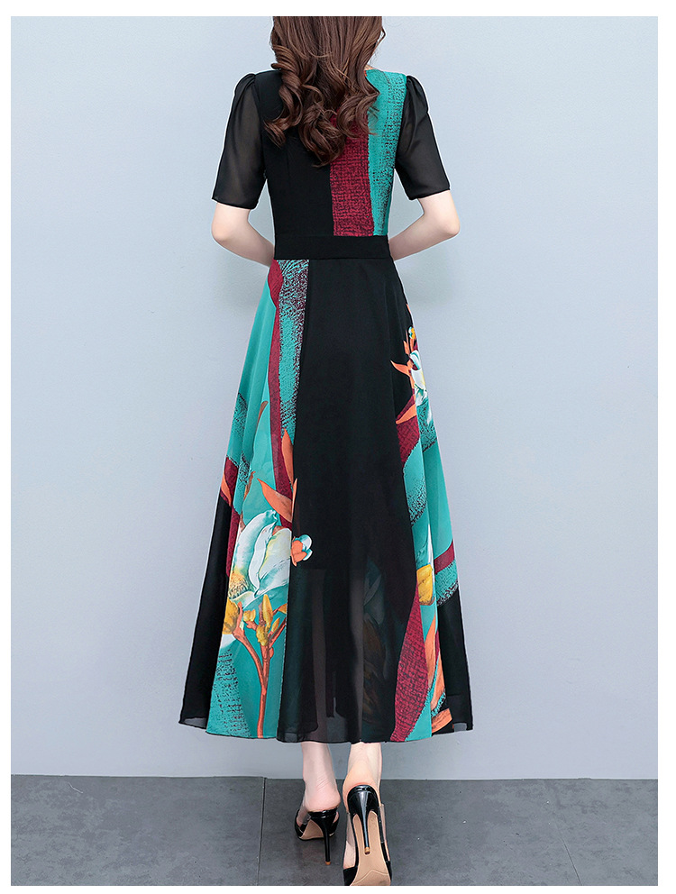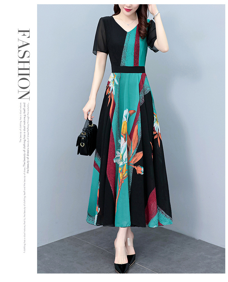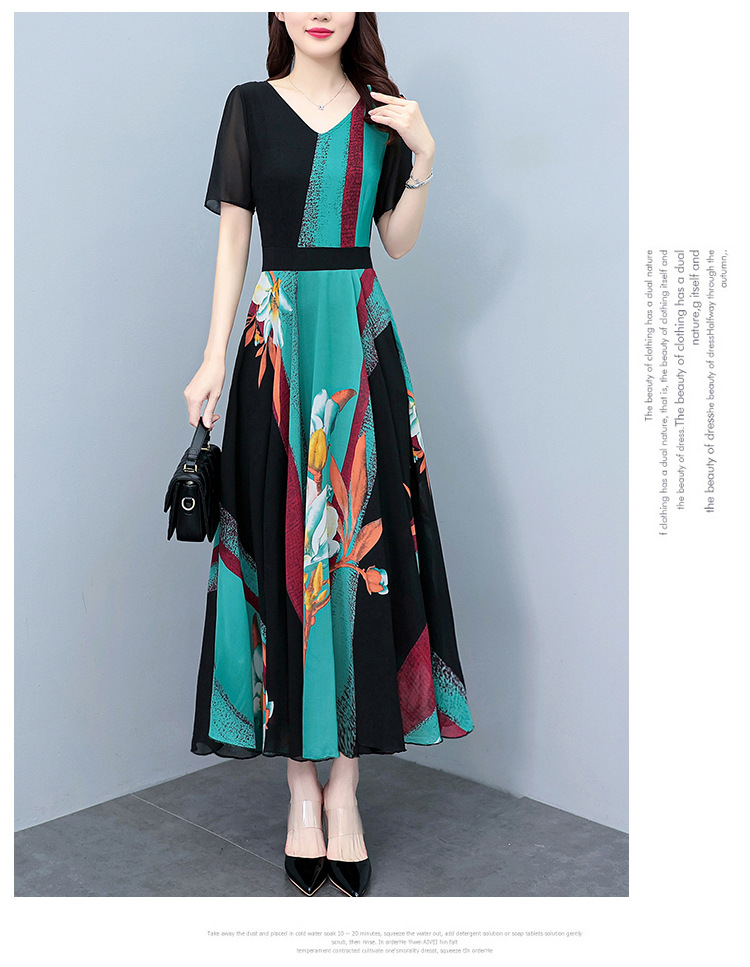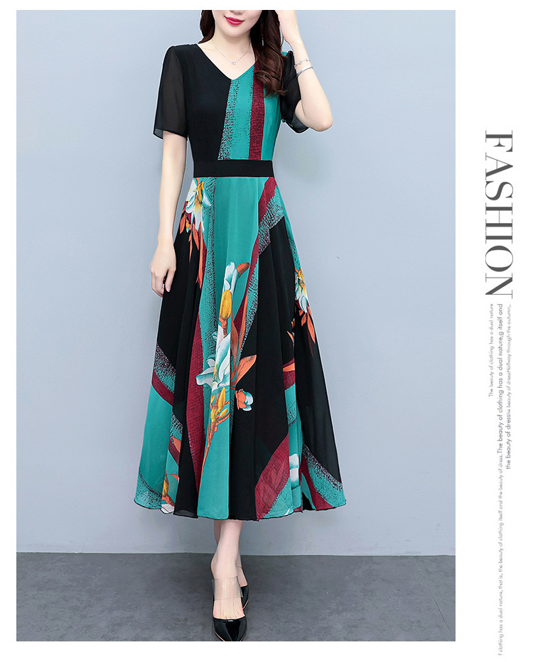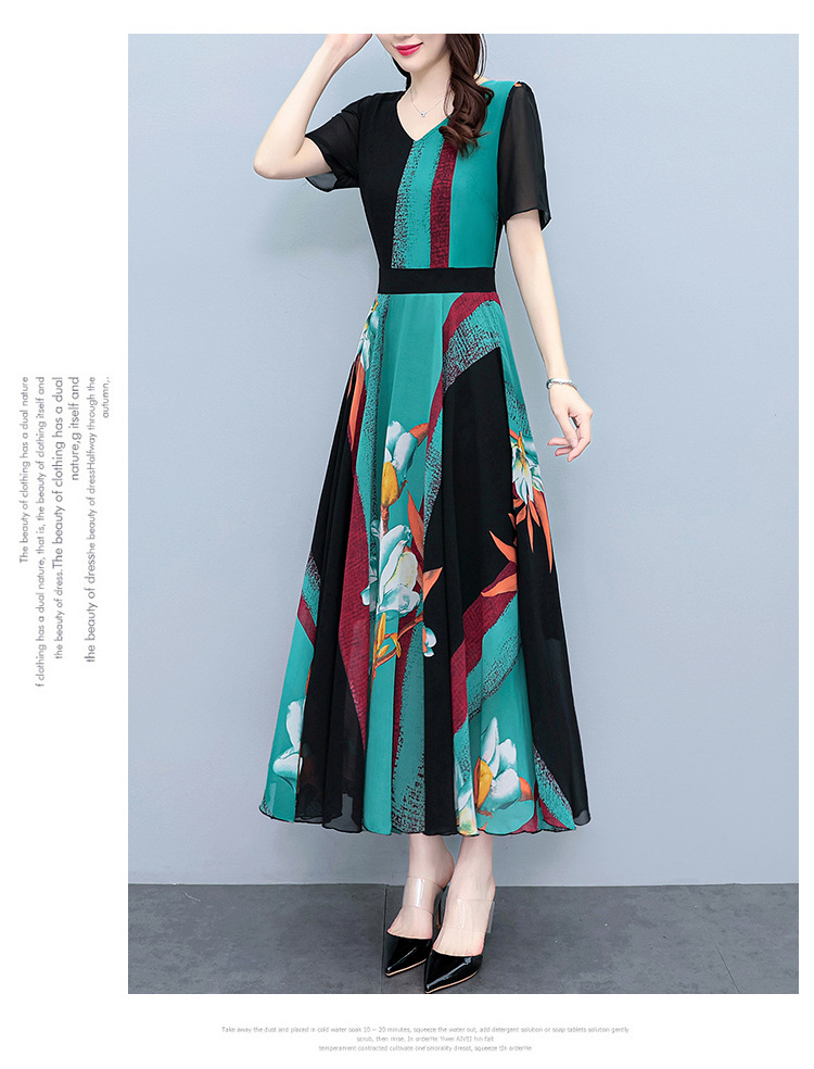 2023夏季新款高档碎花雪纺连衣裙长款大码胖mm收腰显瘦遮肚子长裙