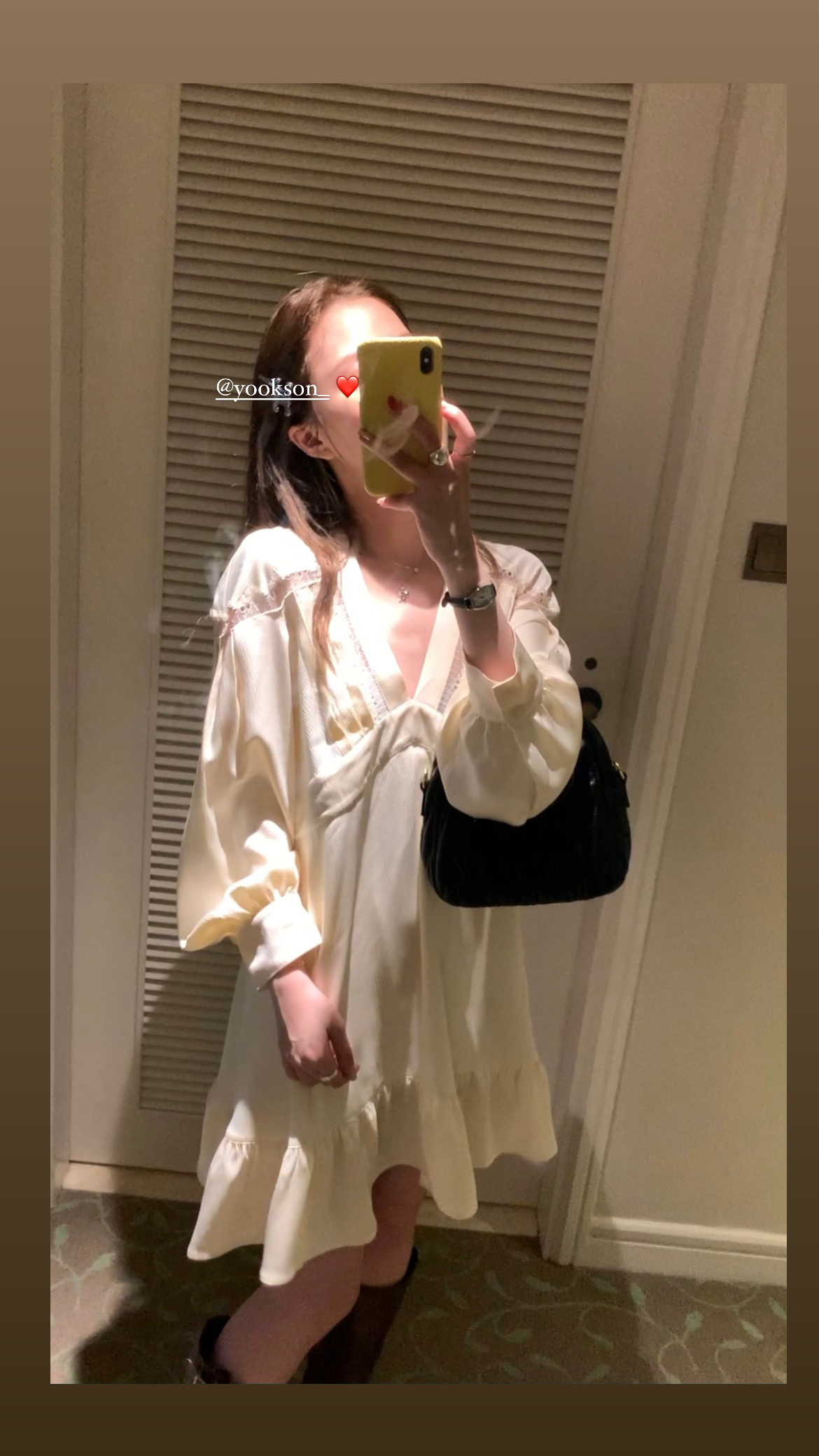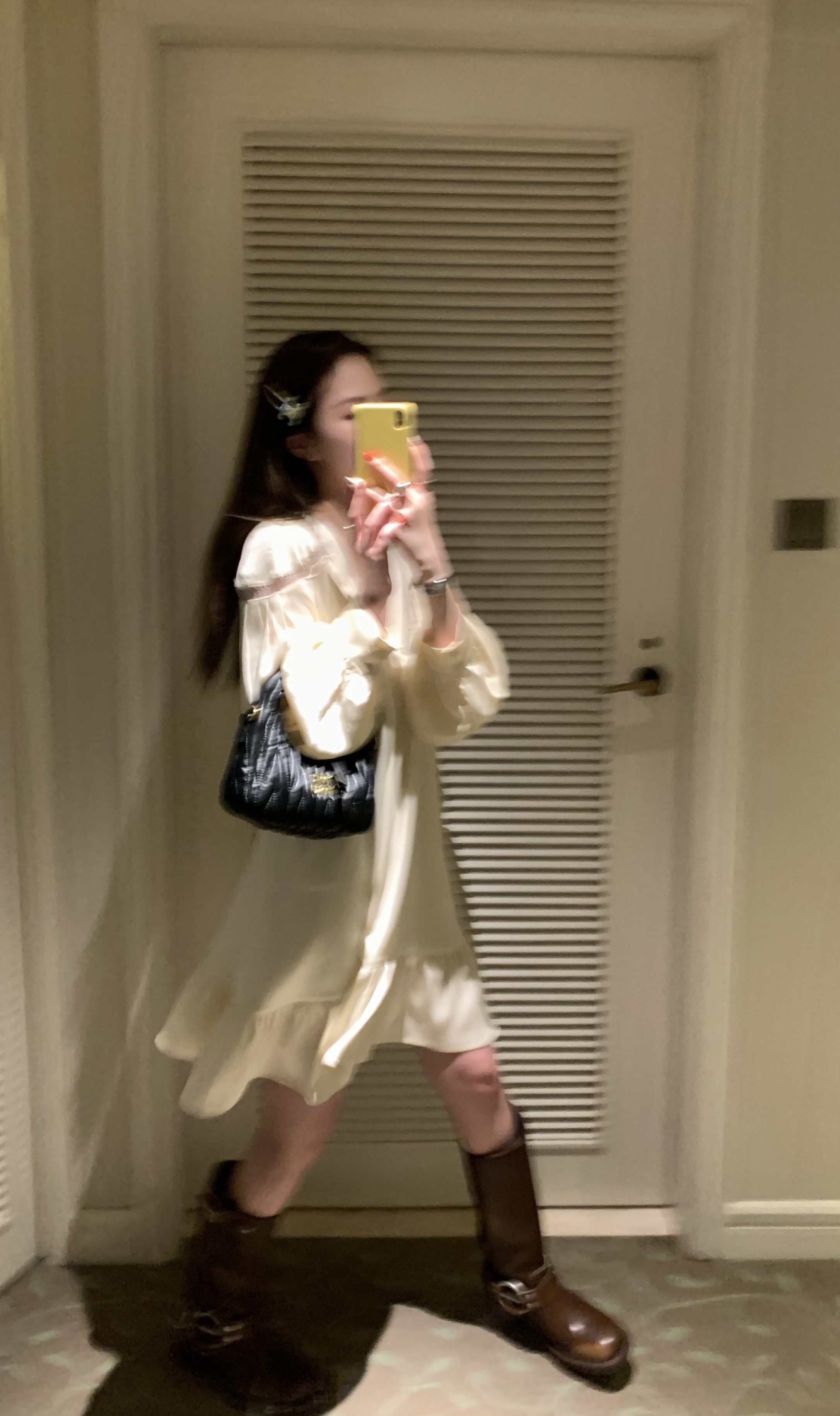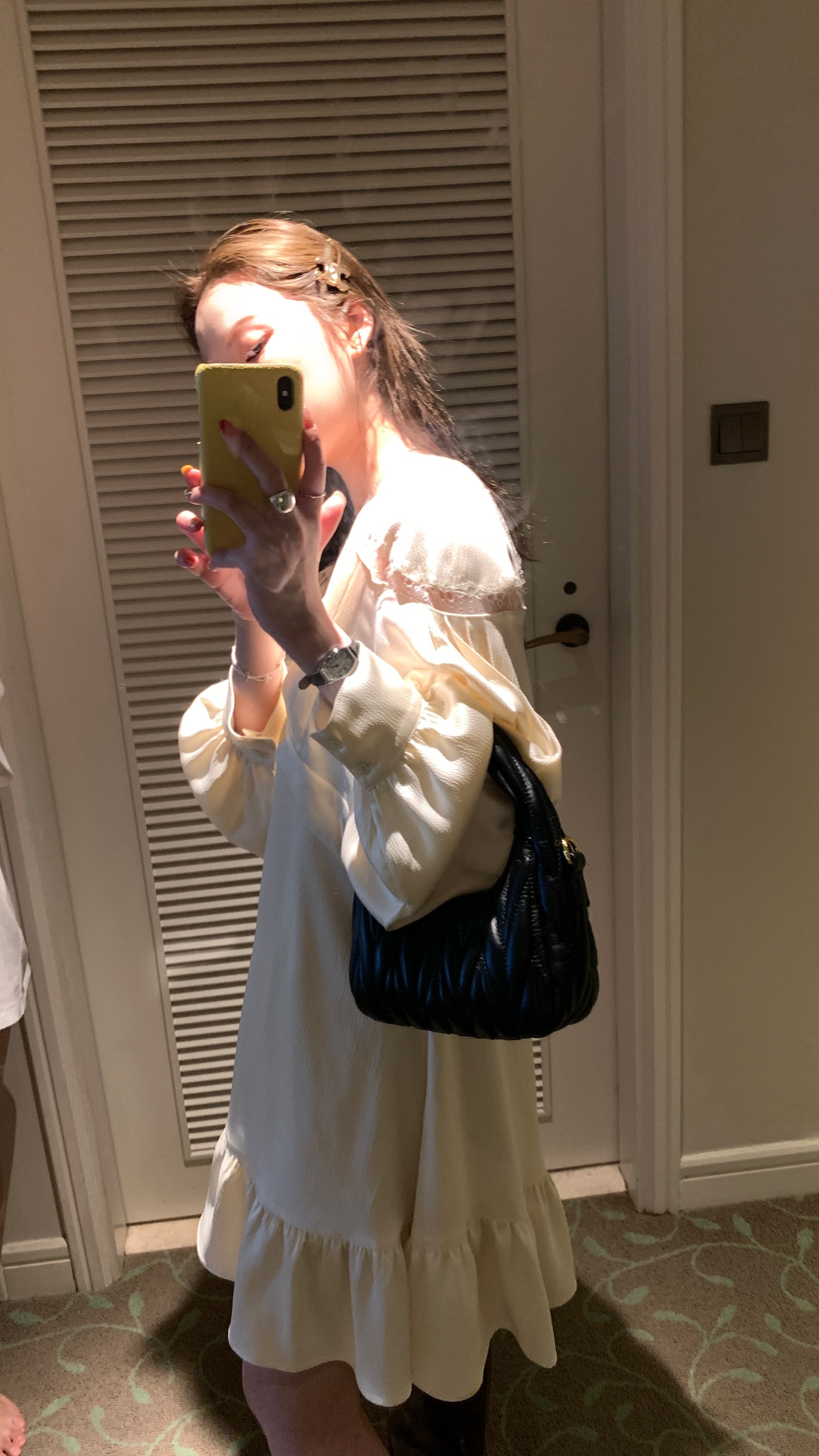 HEYGIRL黑哥 海島清茶 泡泡袖V領氣質洋裝女春季荷葉邊鏤空裙子