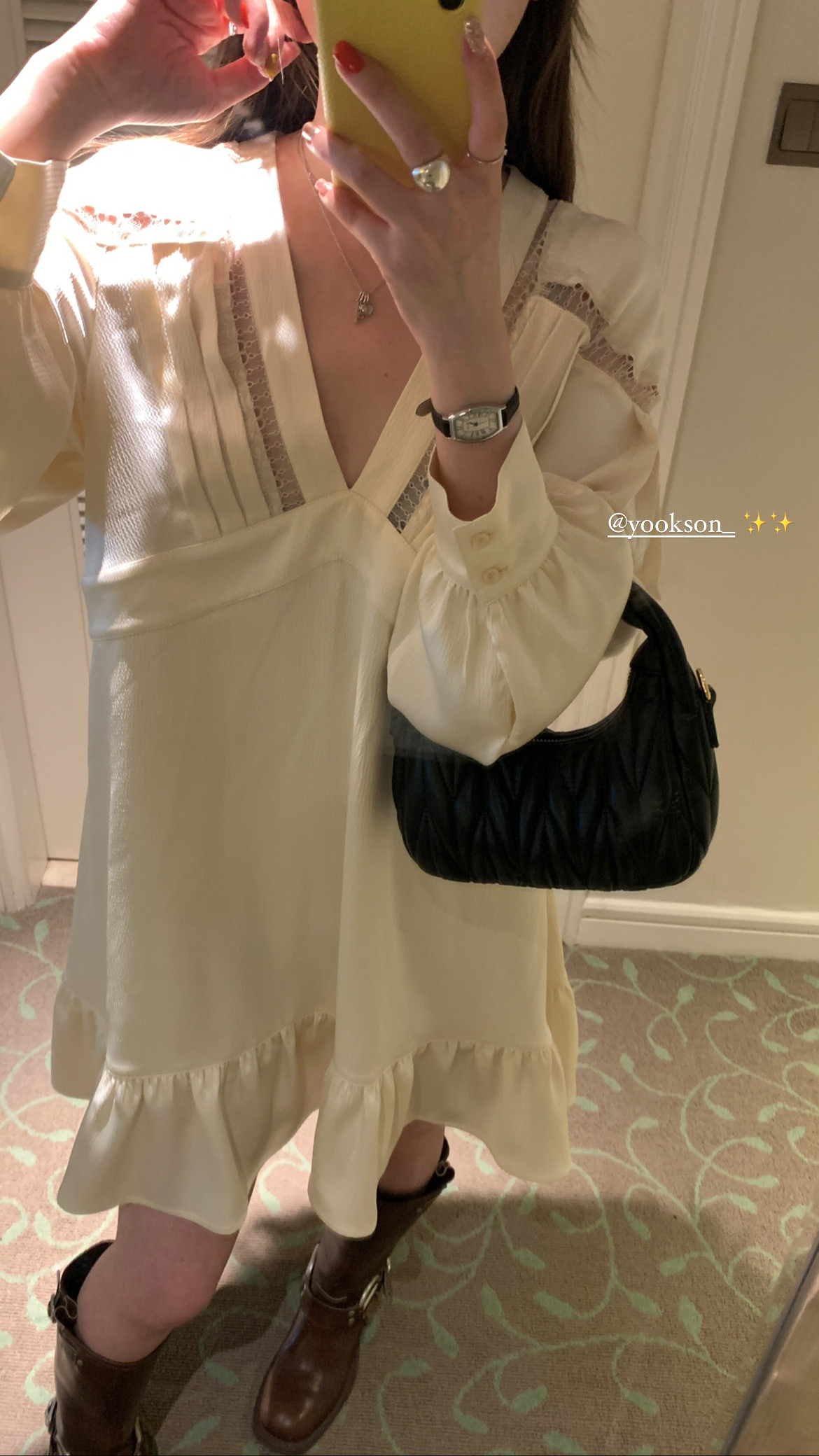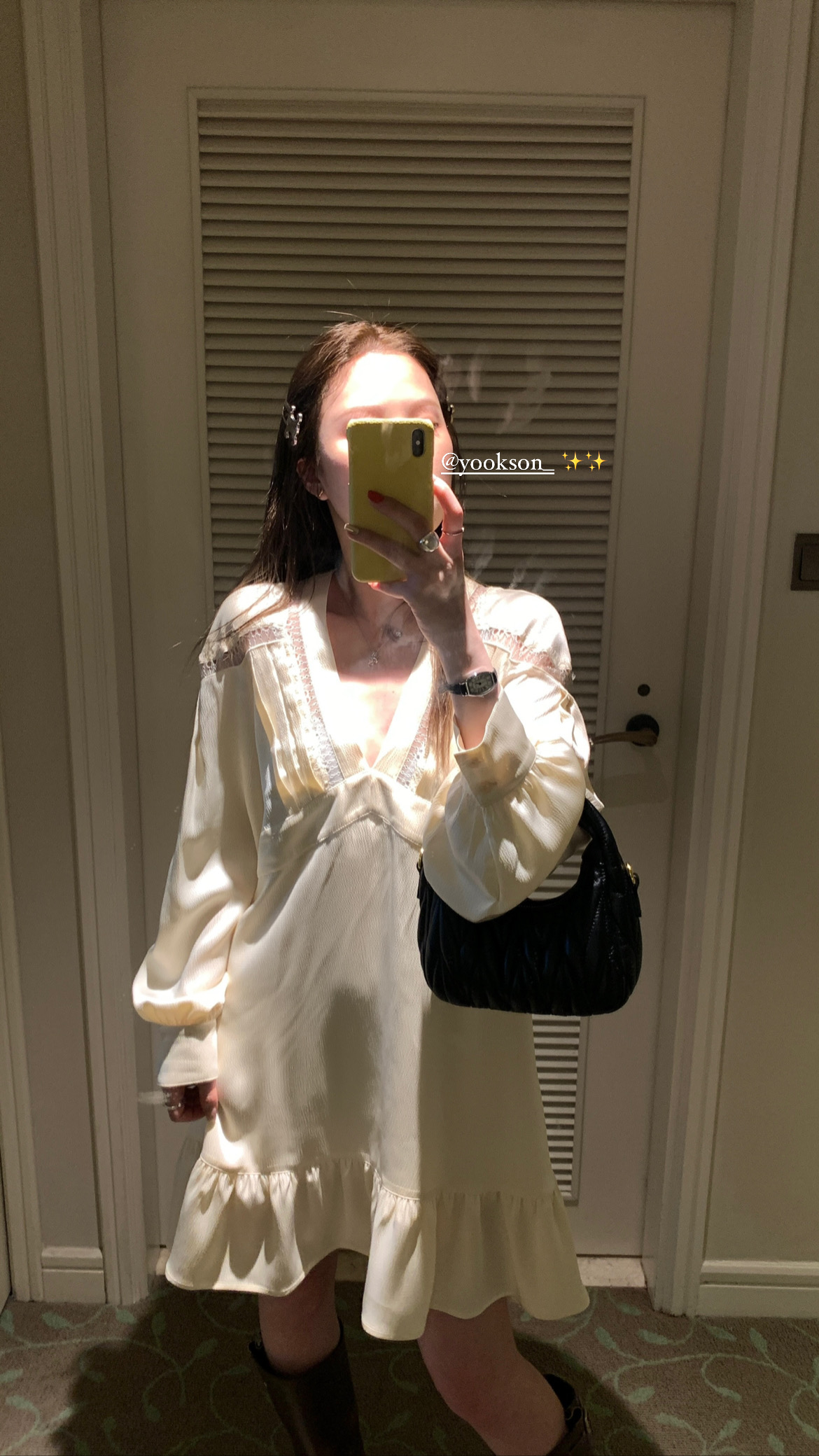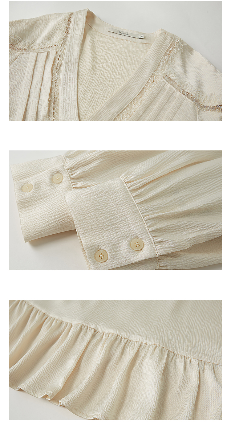 领口和肩部做了蕾丝拼接 费料费工时 精zhi感up