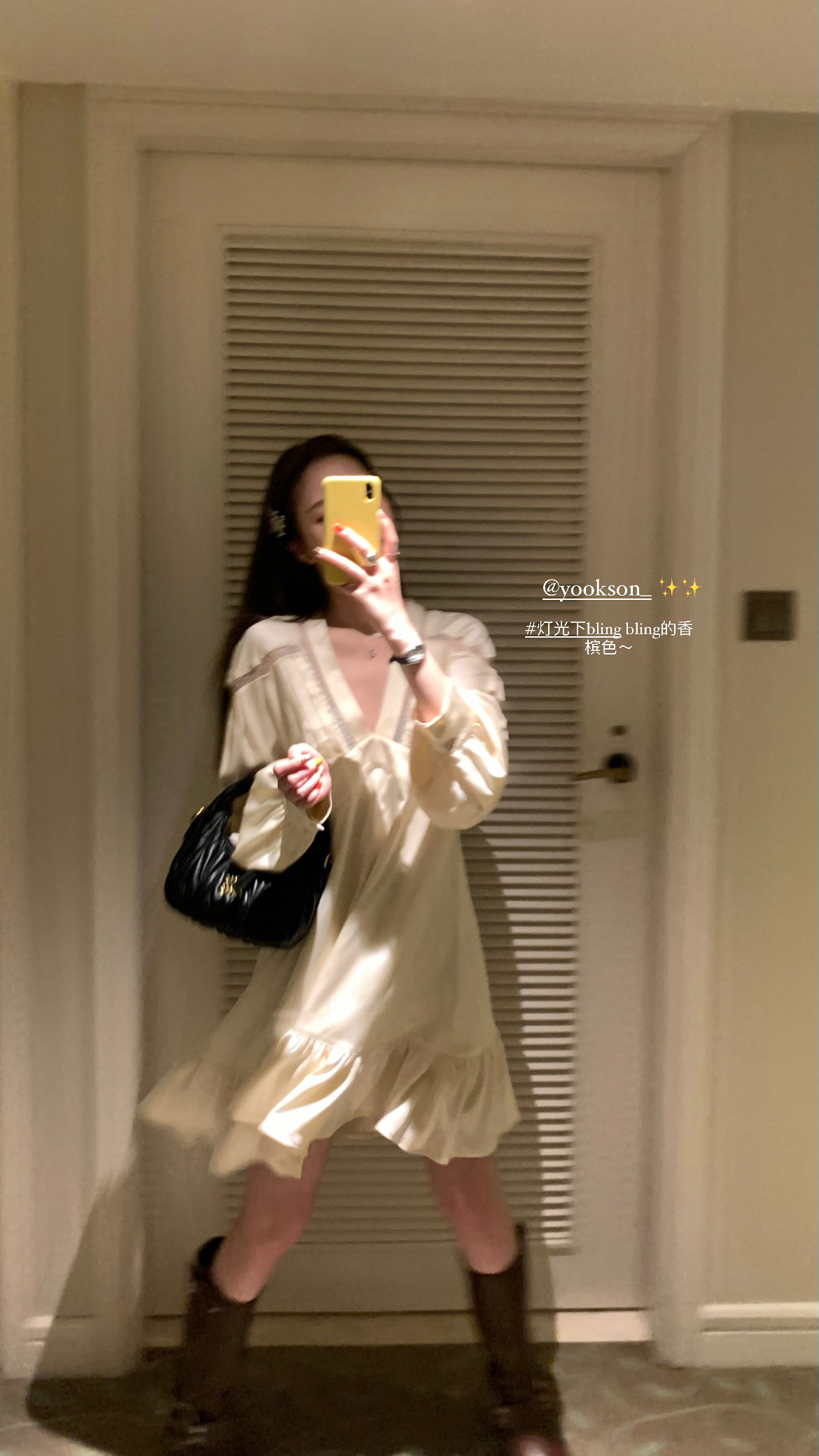 V领设计巧妙的显露锁骨 脖颈线条优越又纤细