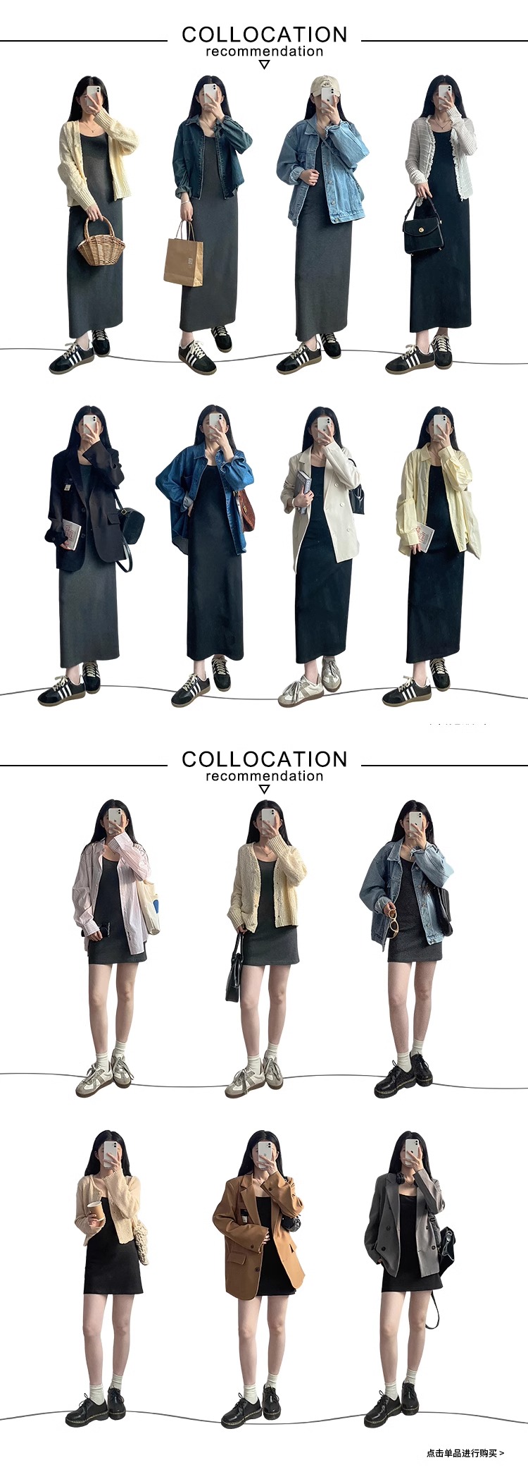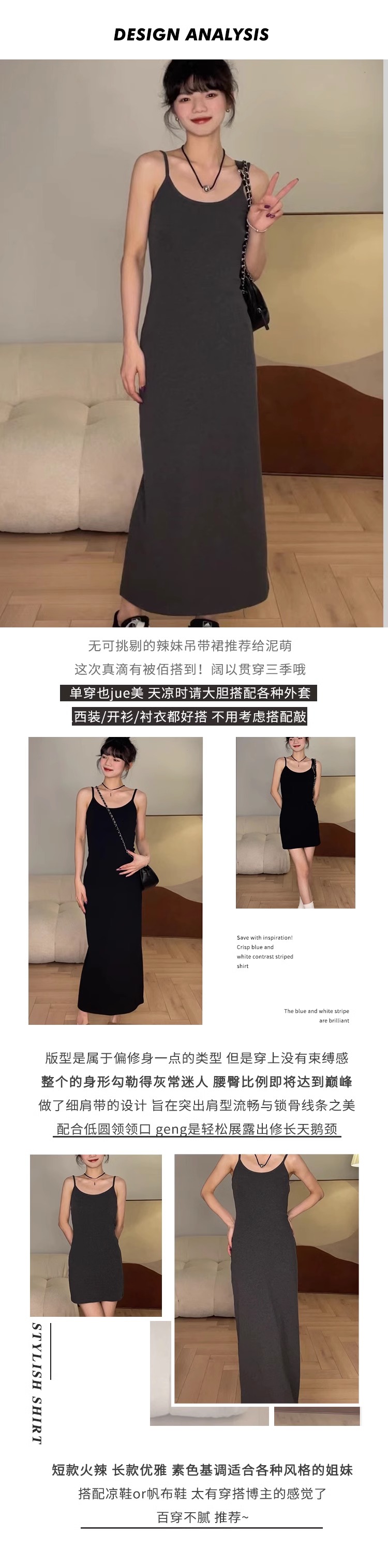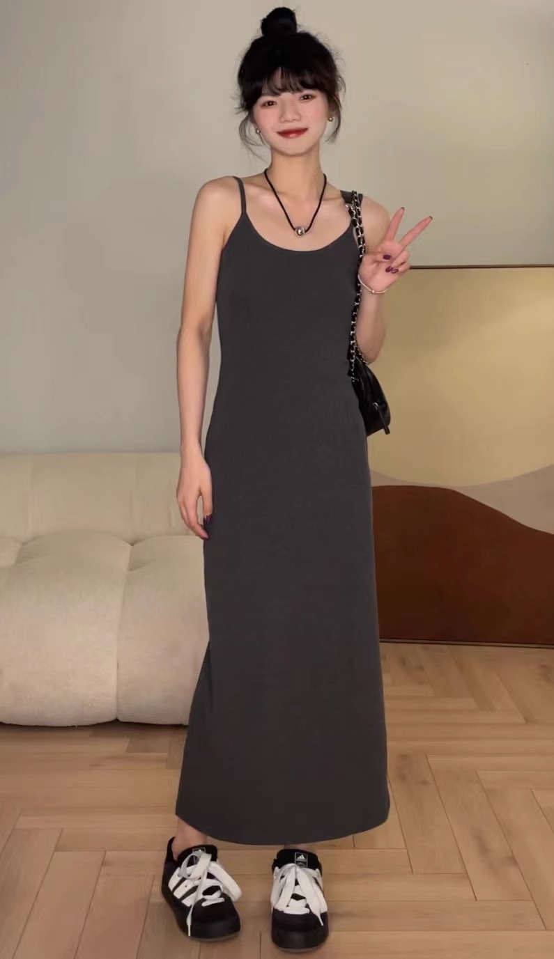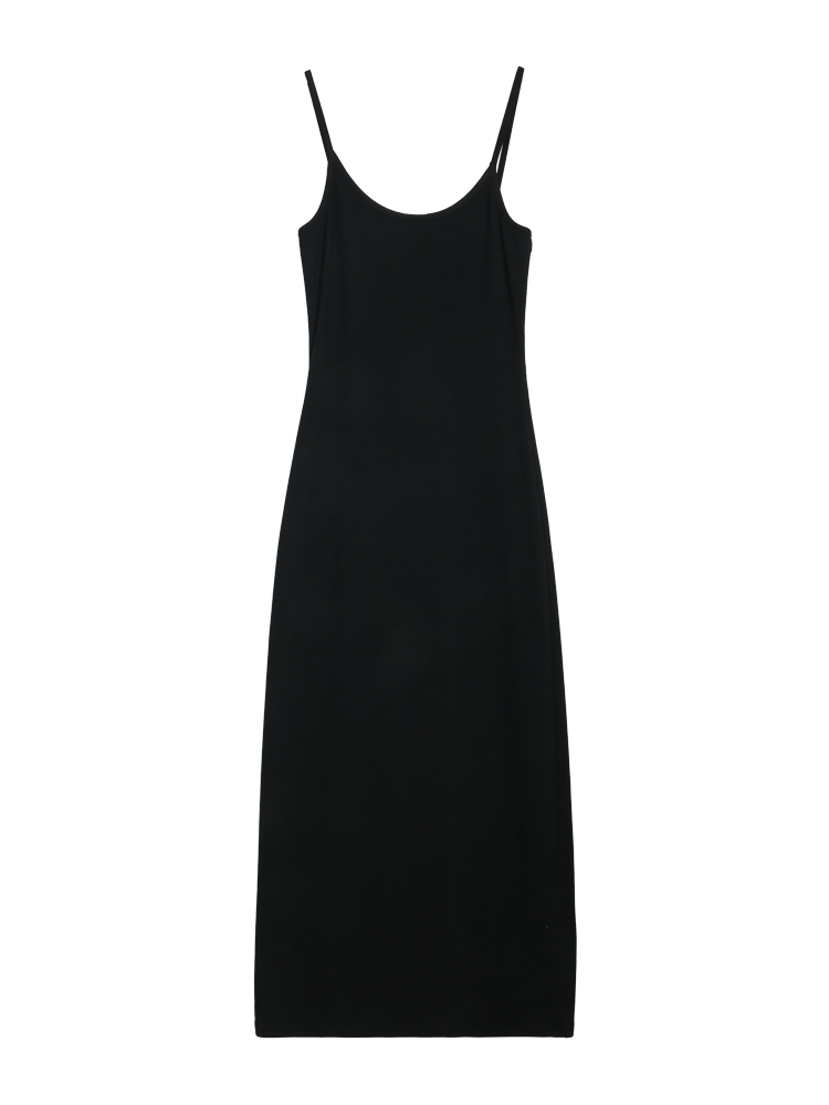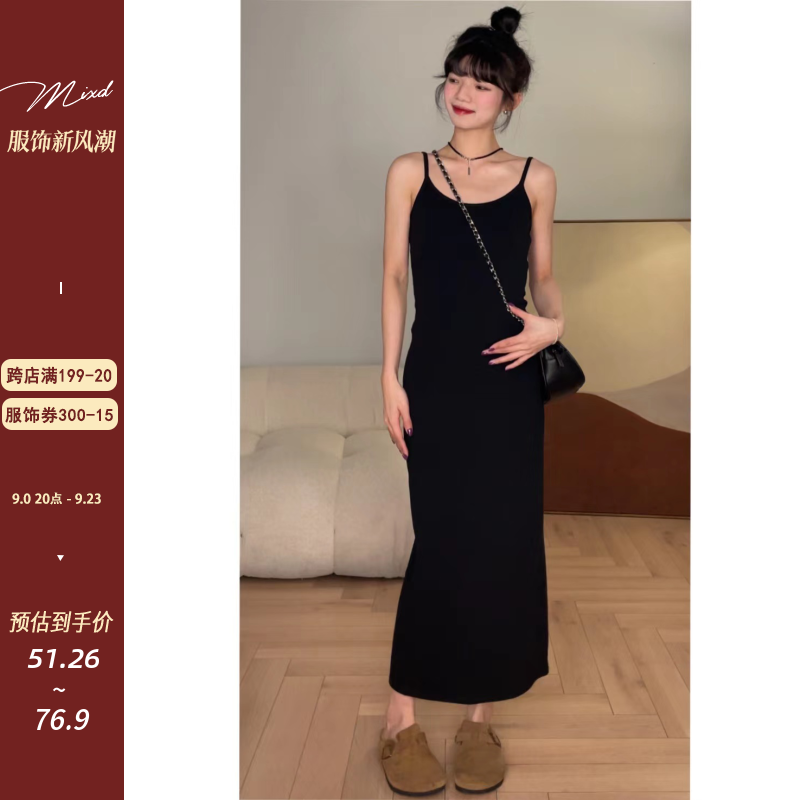 覓定黑色吊帶裙洋裝女秋季內搭打底裙修身長裙背心裙小個子裙子