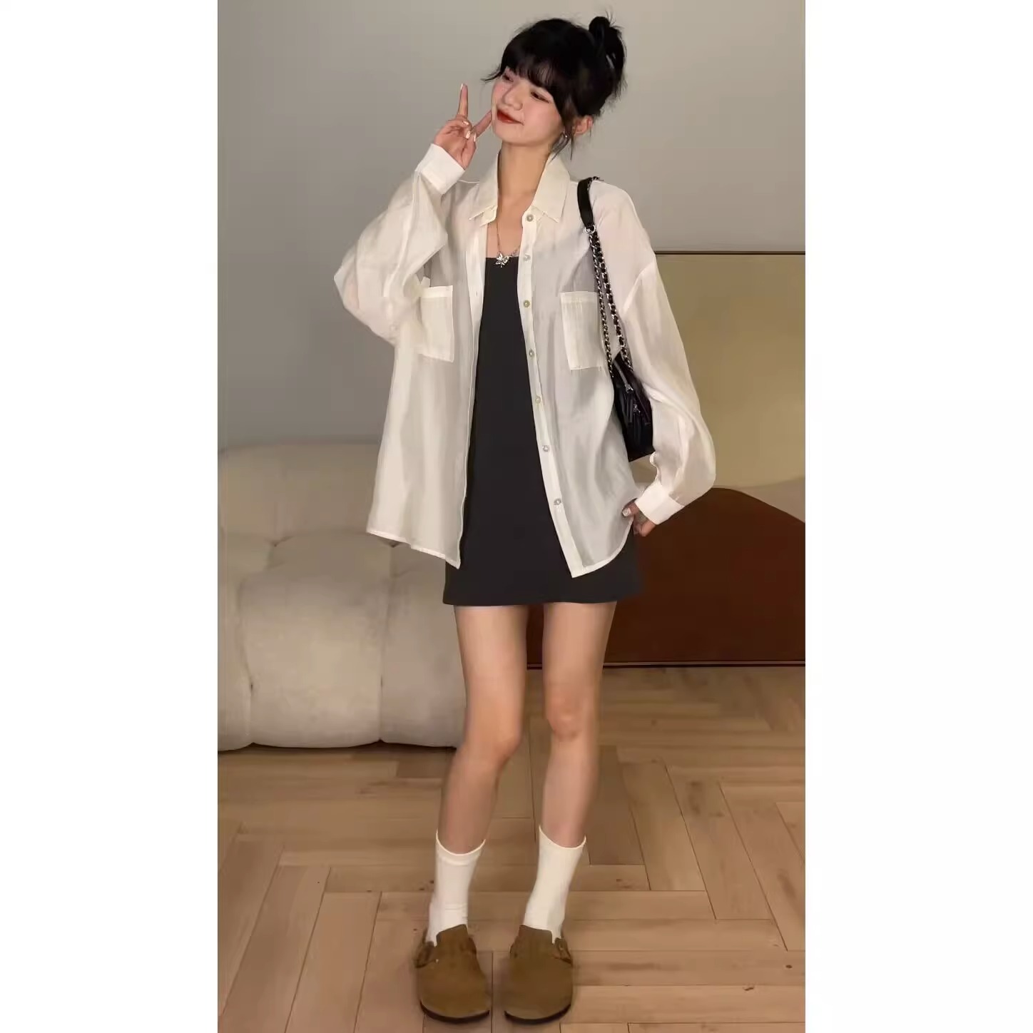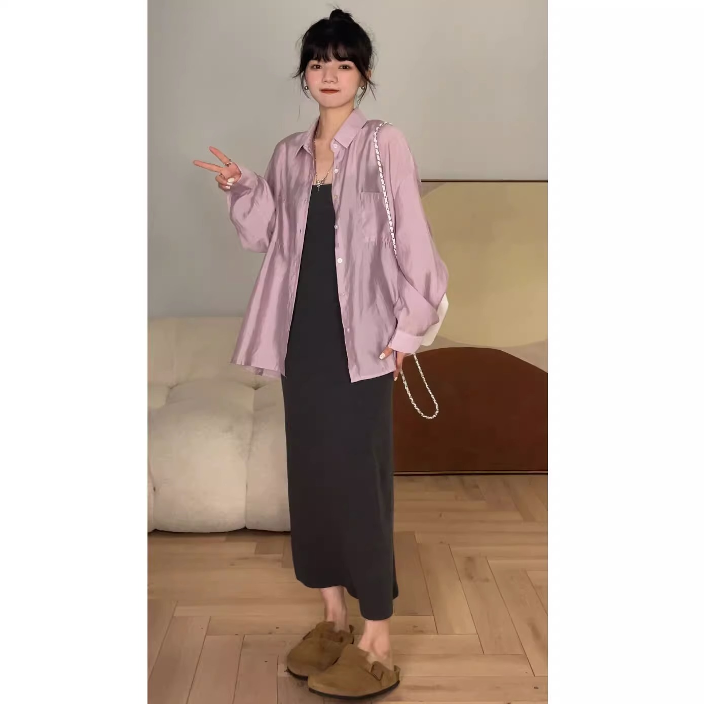 顏色分類 吊帶深灰-短款,吊帶黑色-短款,吊帶粉色-短款,吊帶深灰-長版,吊帶黑色-長版,吊帶粉色-長版,短袖灰色-短款,短袖黑色-短款,短袖灰色-長版,短袖黑色-長版,紫色襯衫,白色襯衫