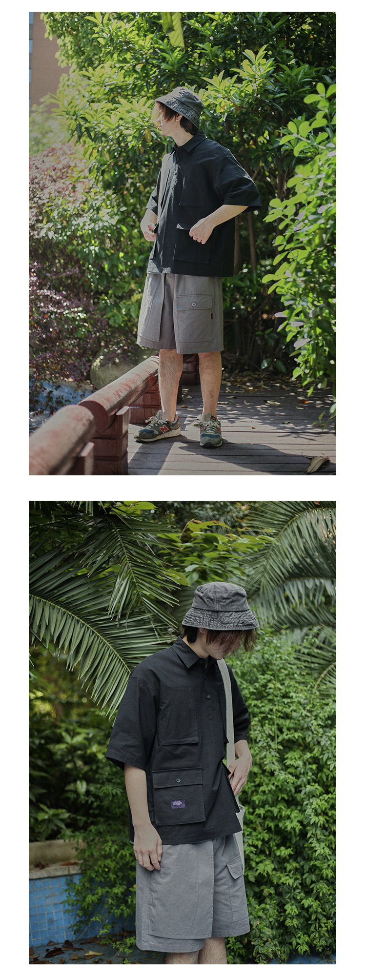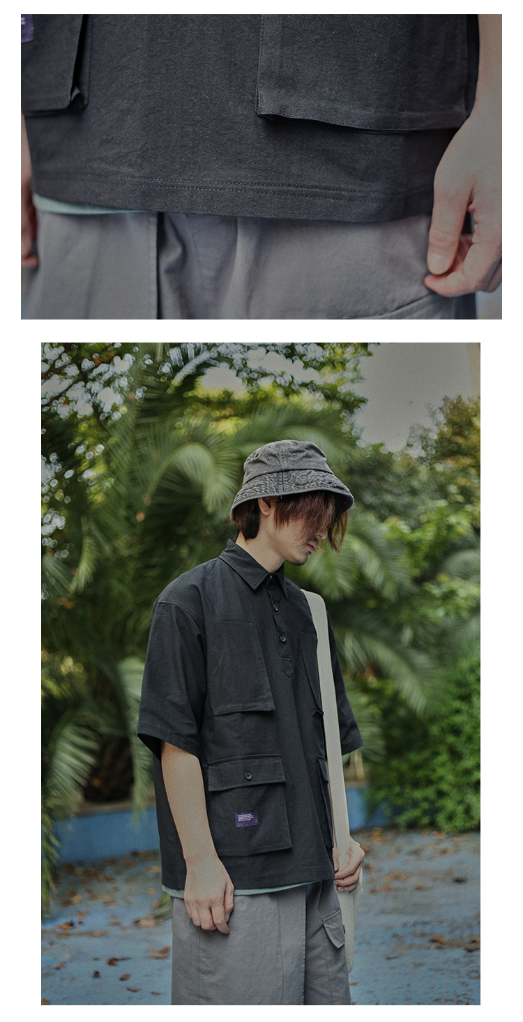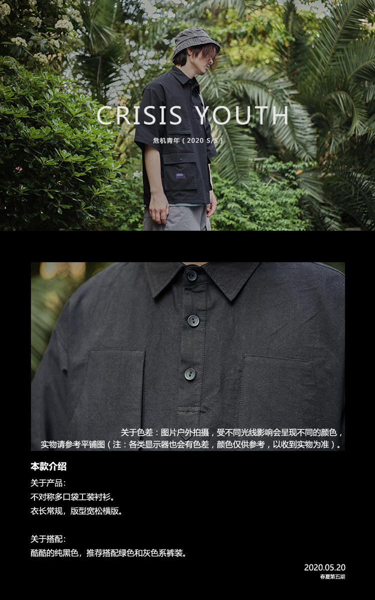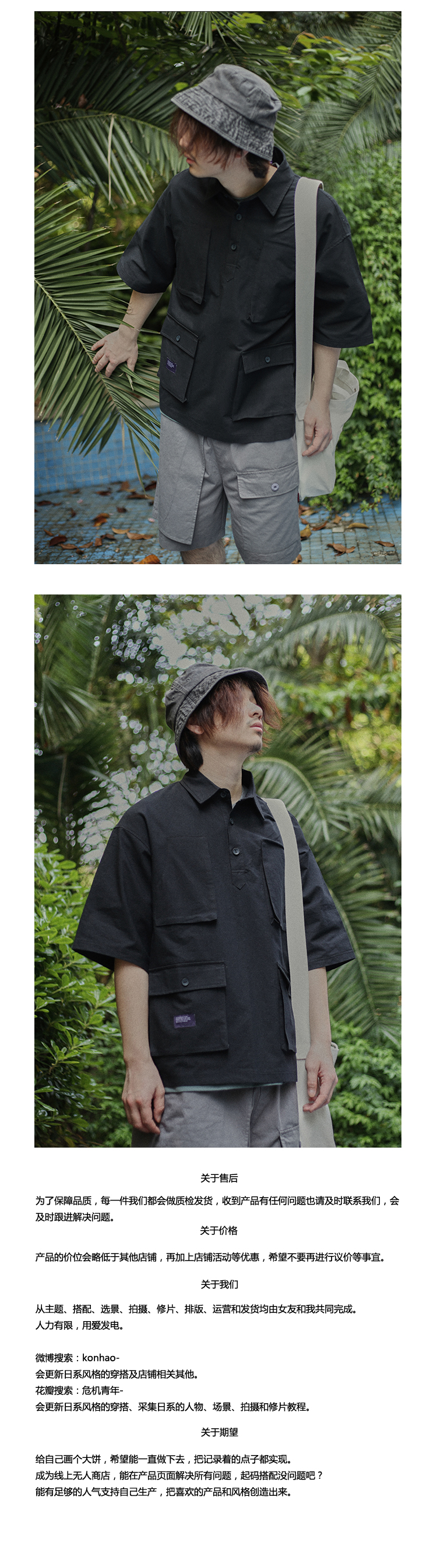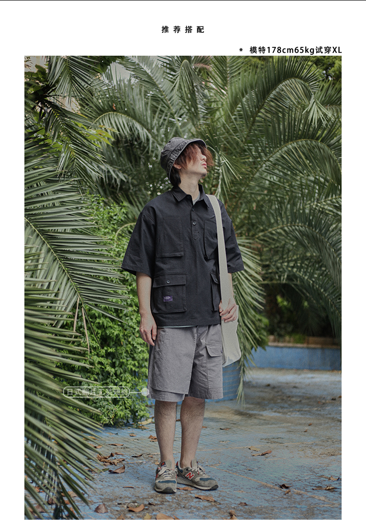 危機青年 黑色polo衫夏季男士T恤寬鬆日系潮牌潮港風工裝短袖襯衫