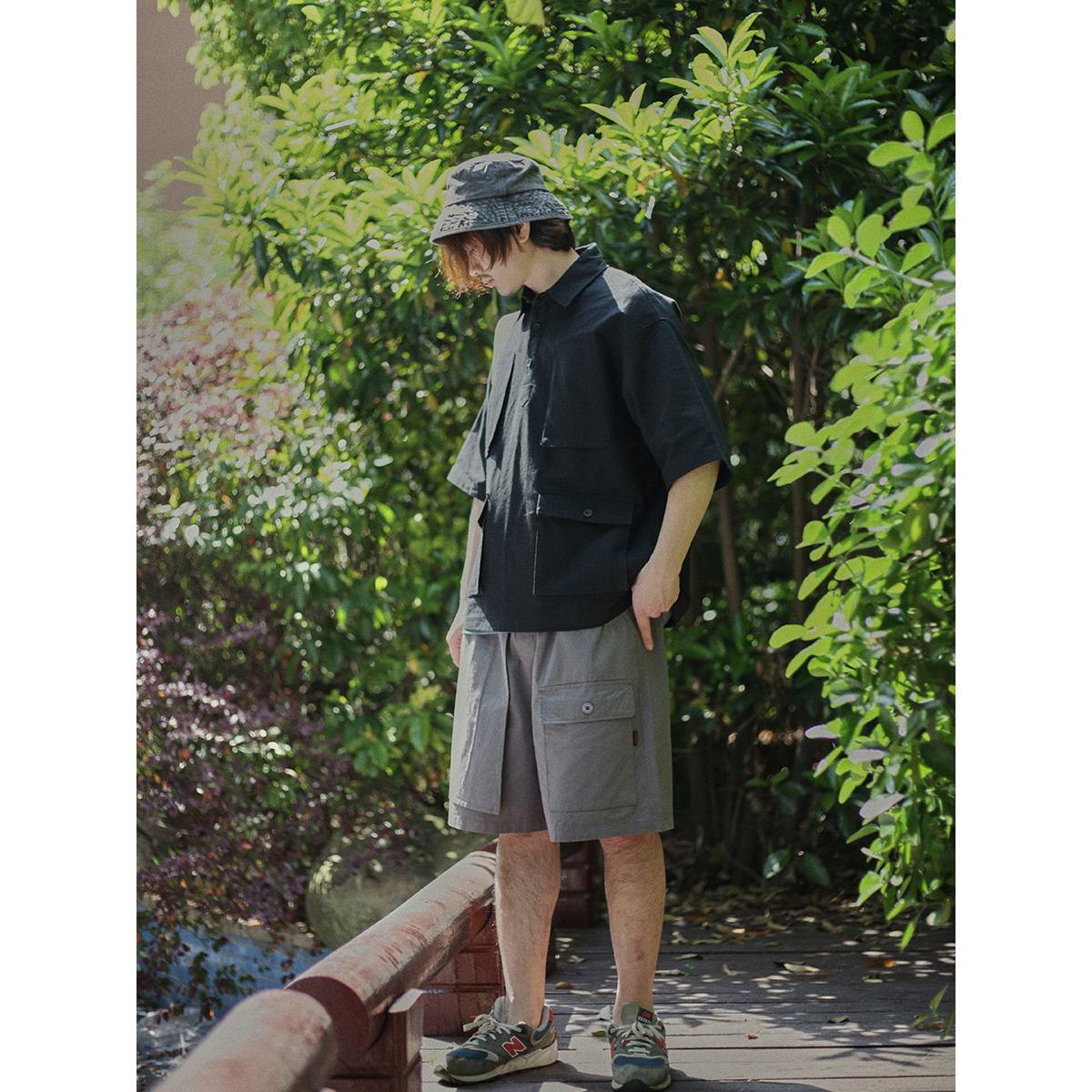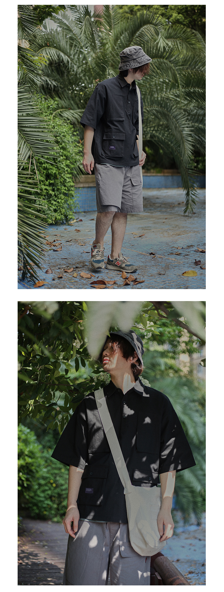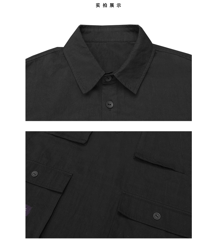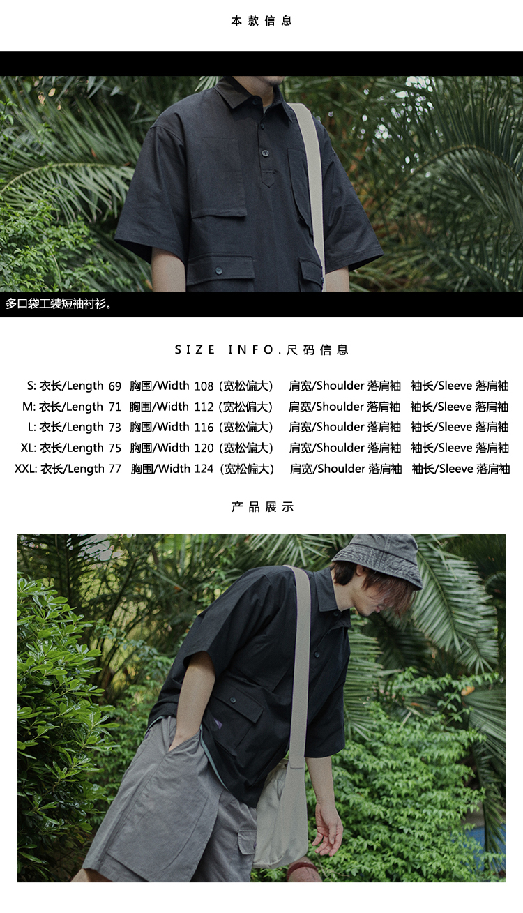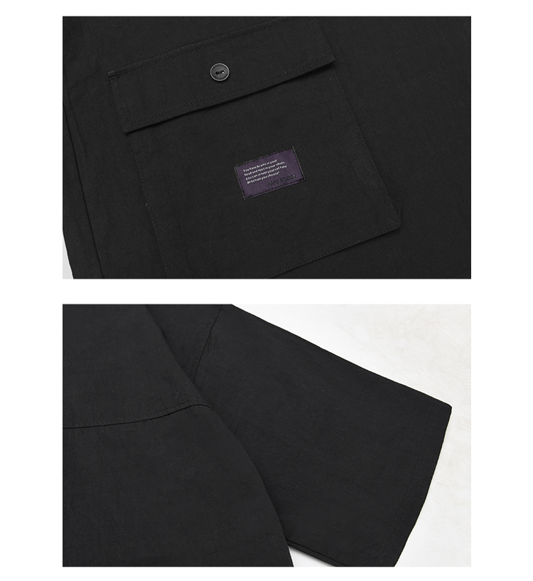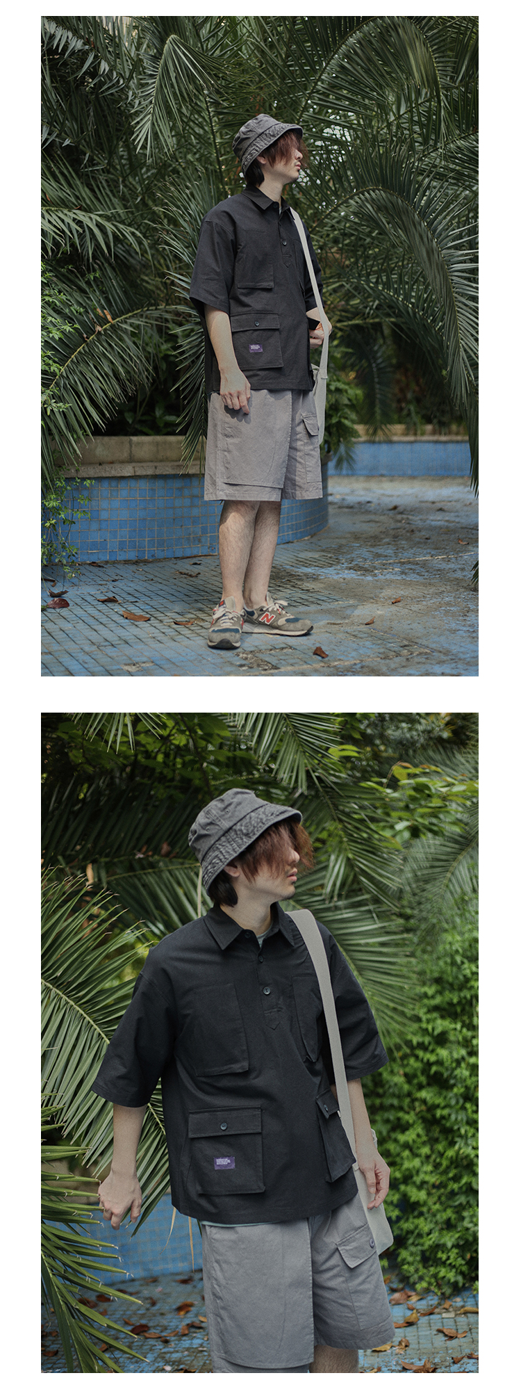 危機青年 黑色polo衫夏季男士T恤寬鬆日系潮牌潮港風工裝短袖襯衫