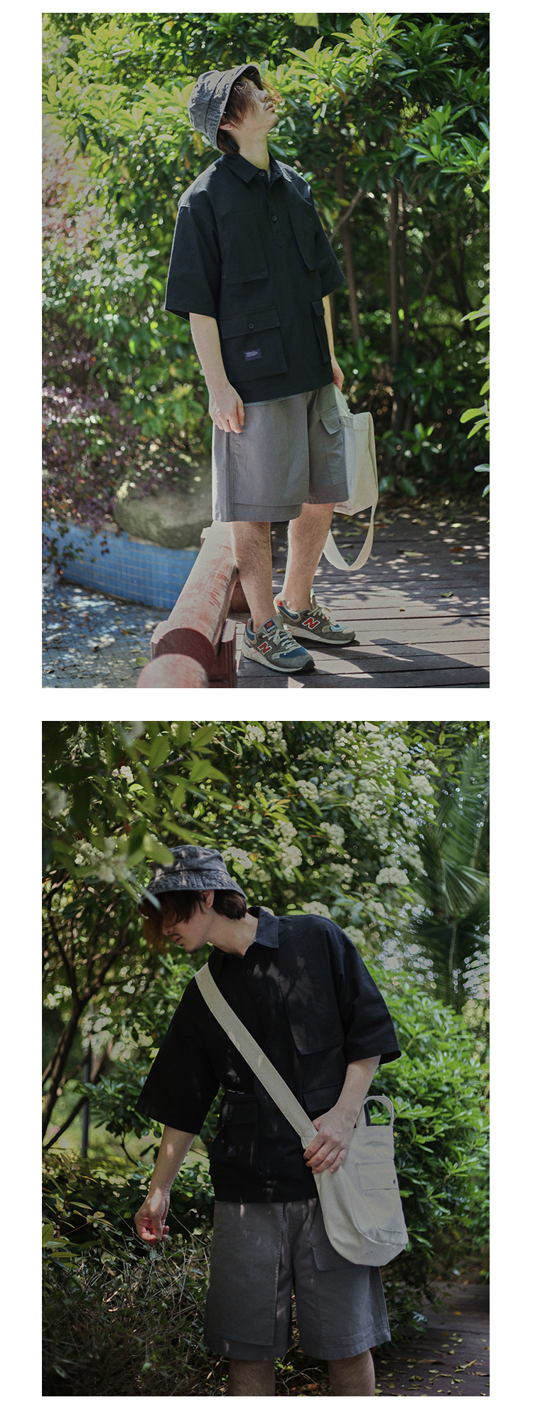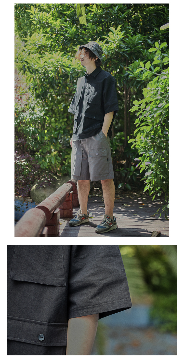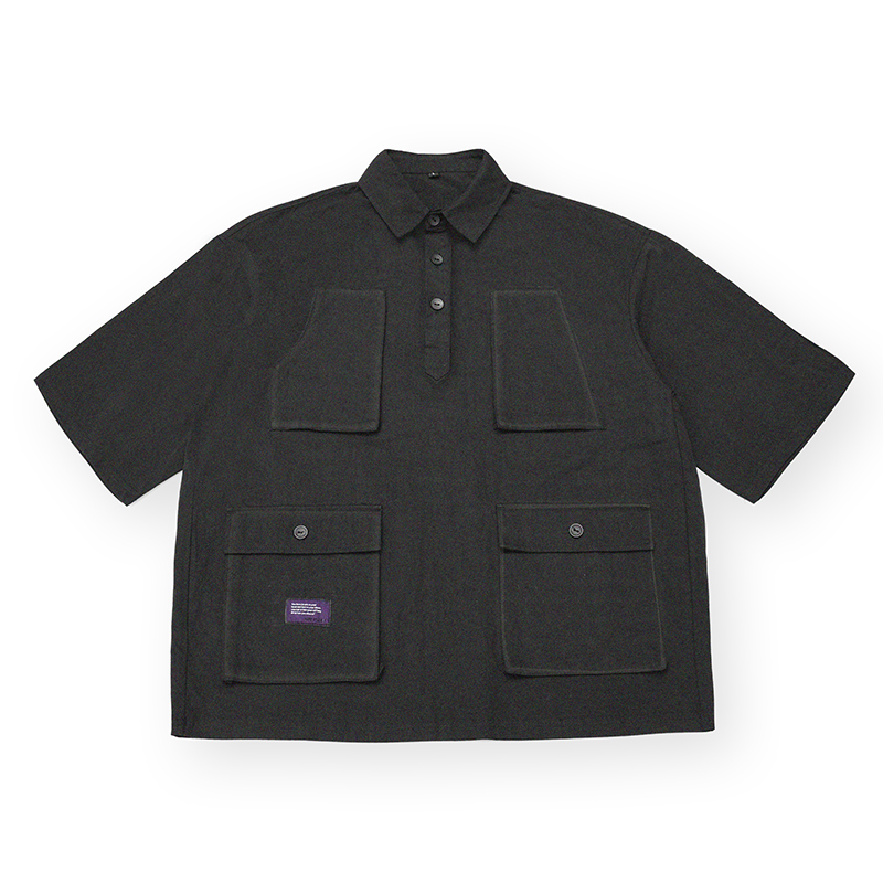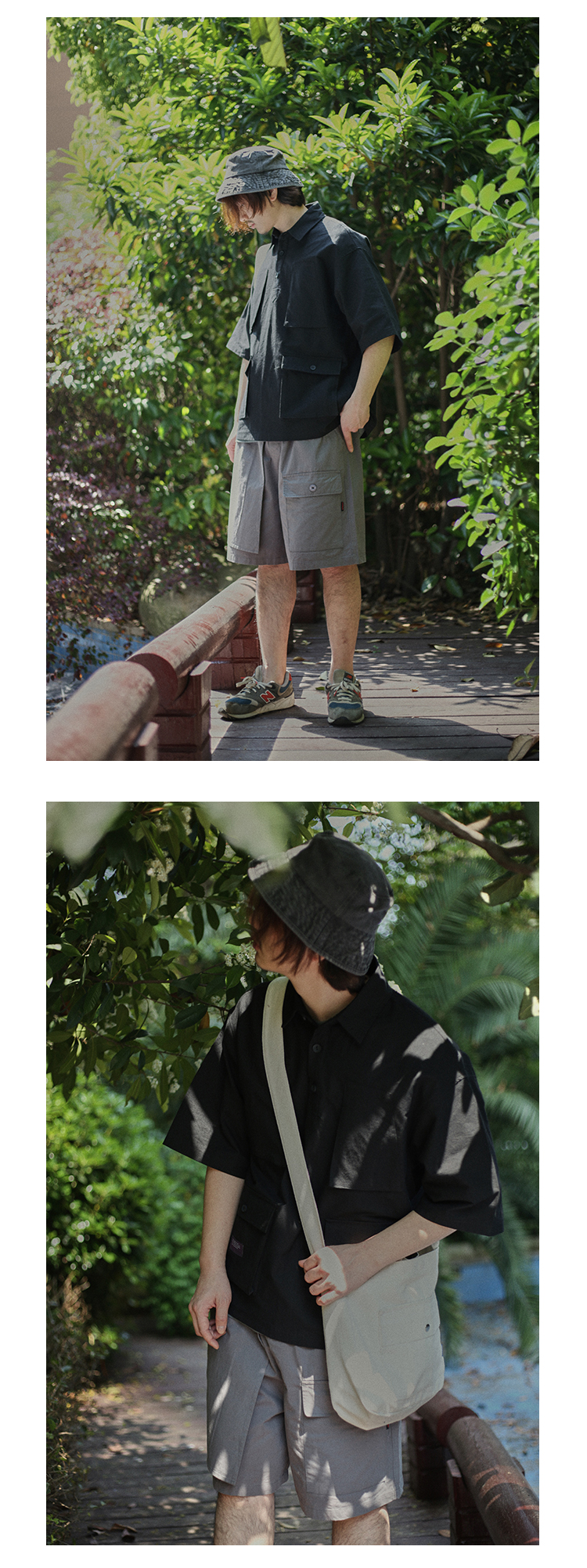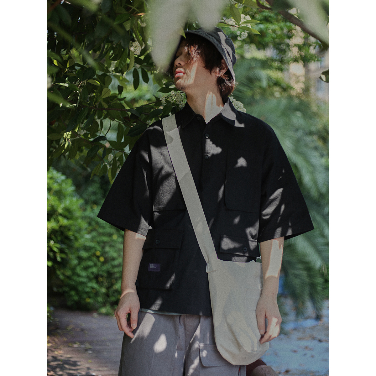 危機青年 黑色polo衫夏季男士T恤寬鬆日系潮牌潮港風工裝短袖襯衫