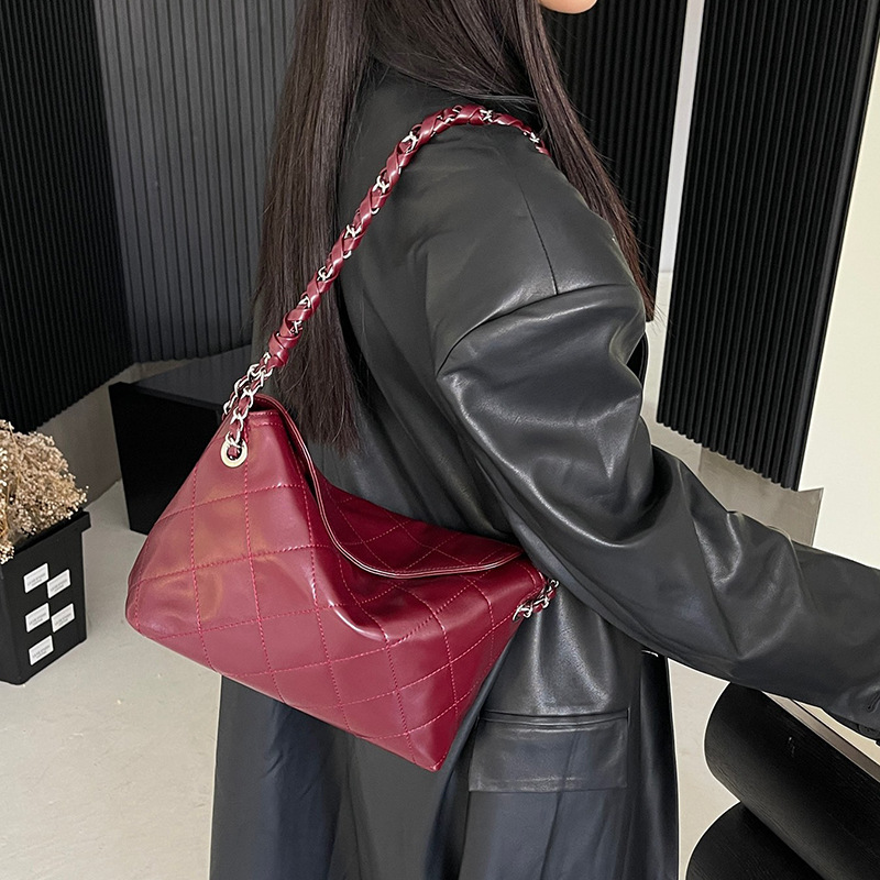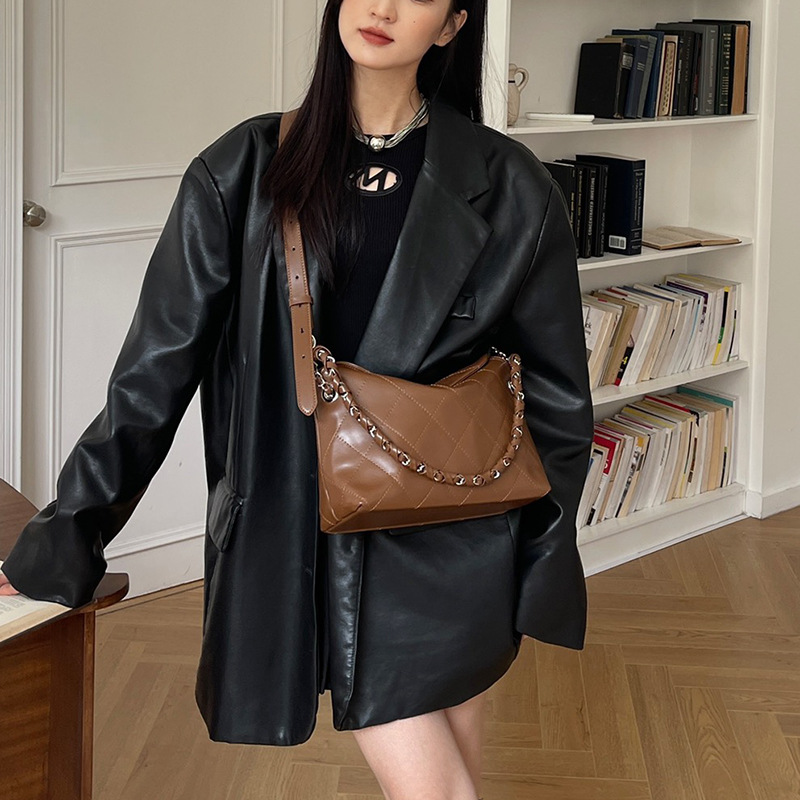 腋下包小众设计真皮女包小香风菱格链条托特包大容量通勤单肩包