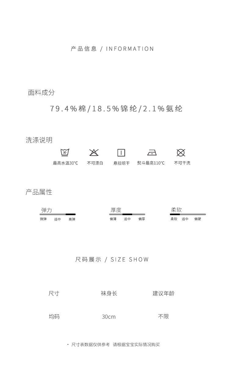 童袜尺码 均码【袜长30cm】