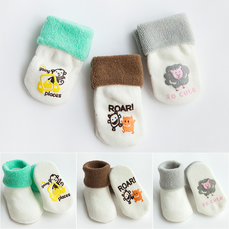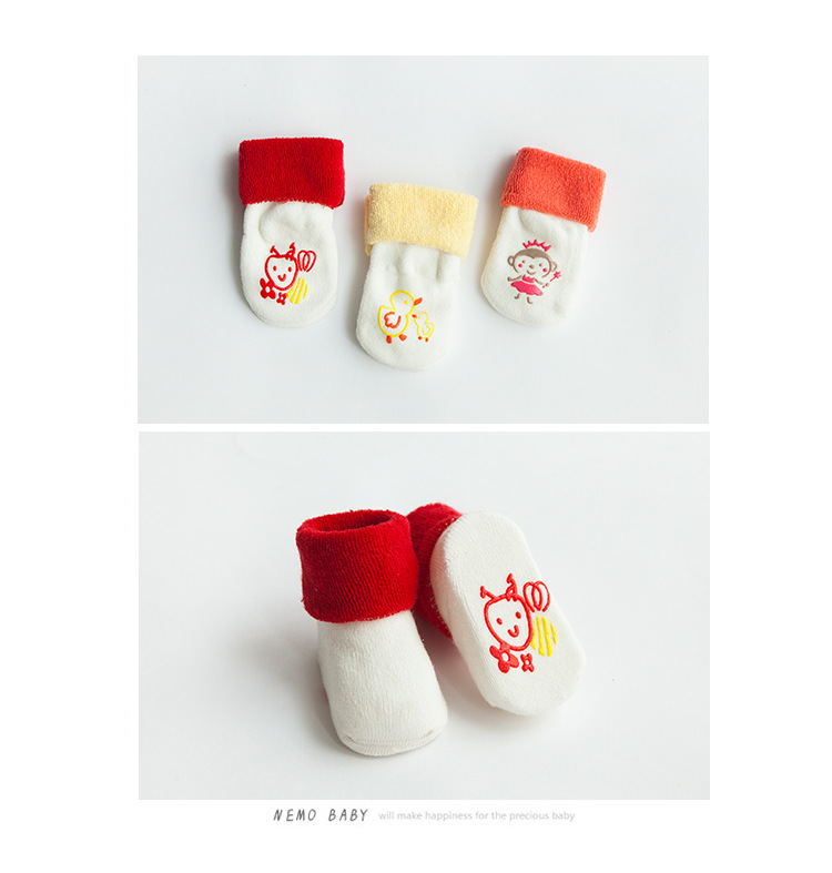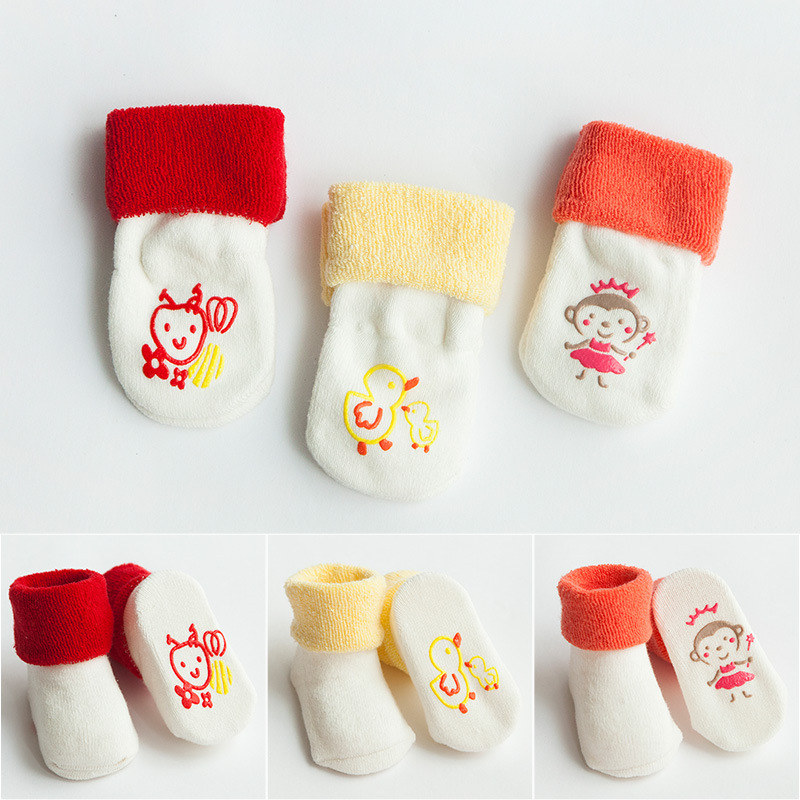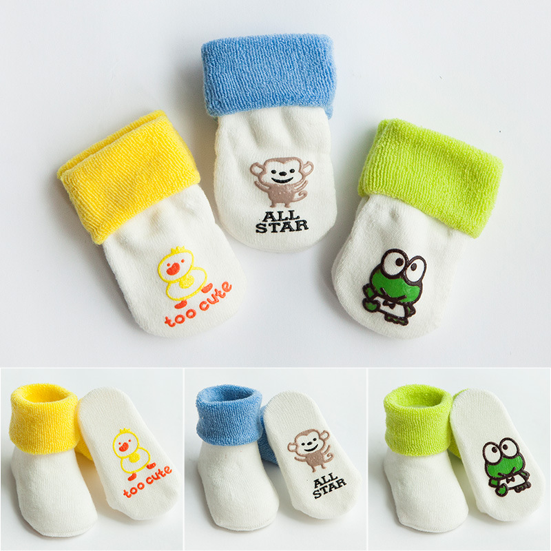 秋冬新款毛圈加厚精梳棉宝宝袜子 婴儿中筒卡通地板防滑0-3岁