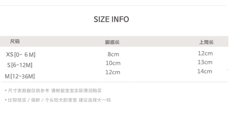 童袜尺码 XS码0-6个月,S码6-12个月,M码1-3岁