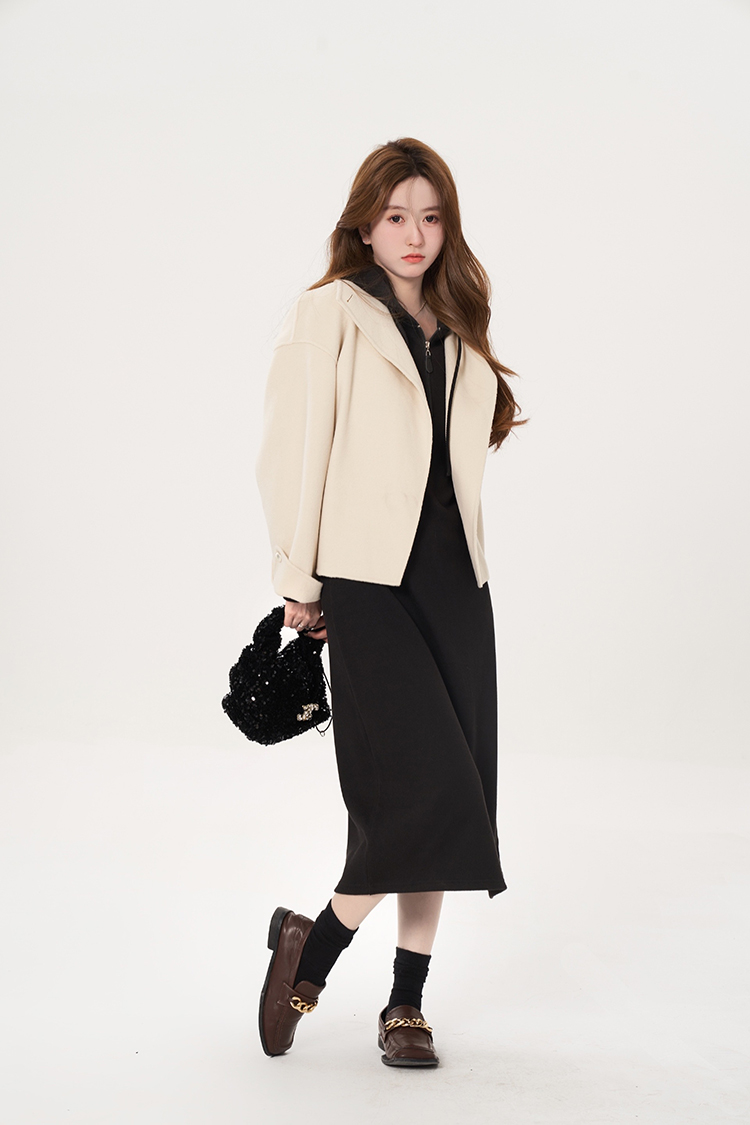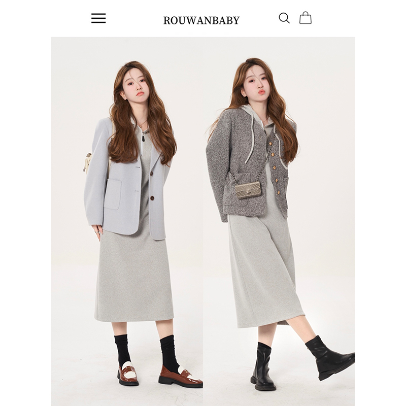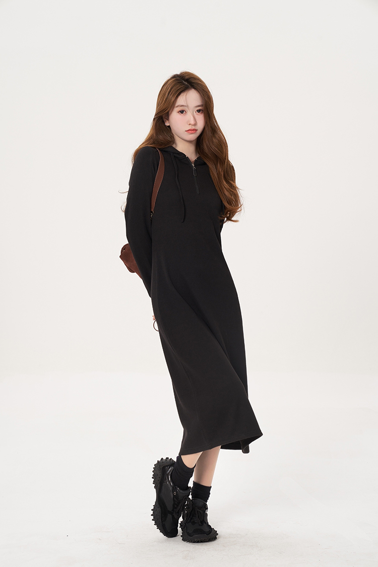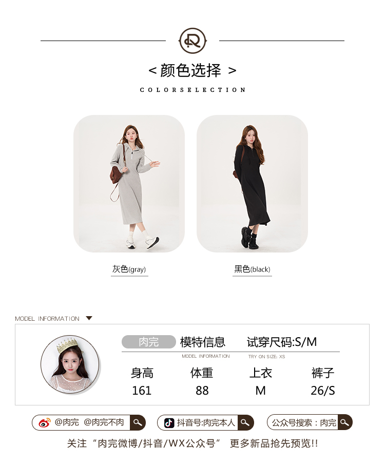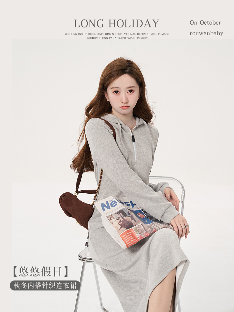 肉完【悠悠假日】秋冬內搭針織洋裝休閒厚棉裙女秋冬長版小個子