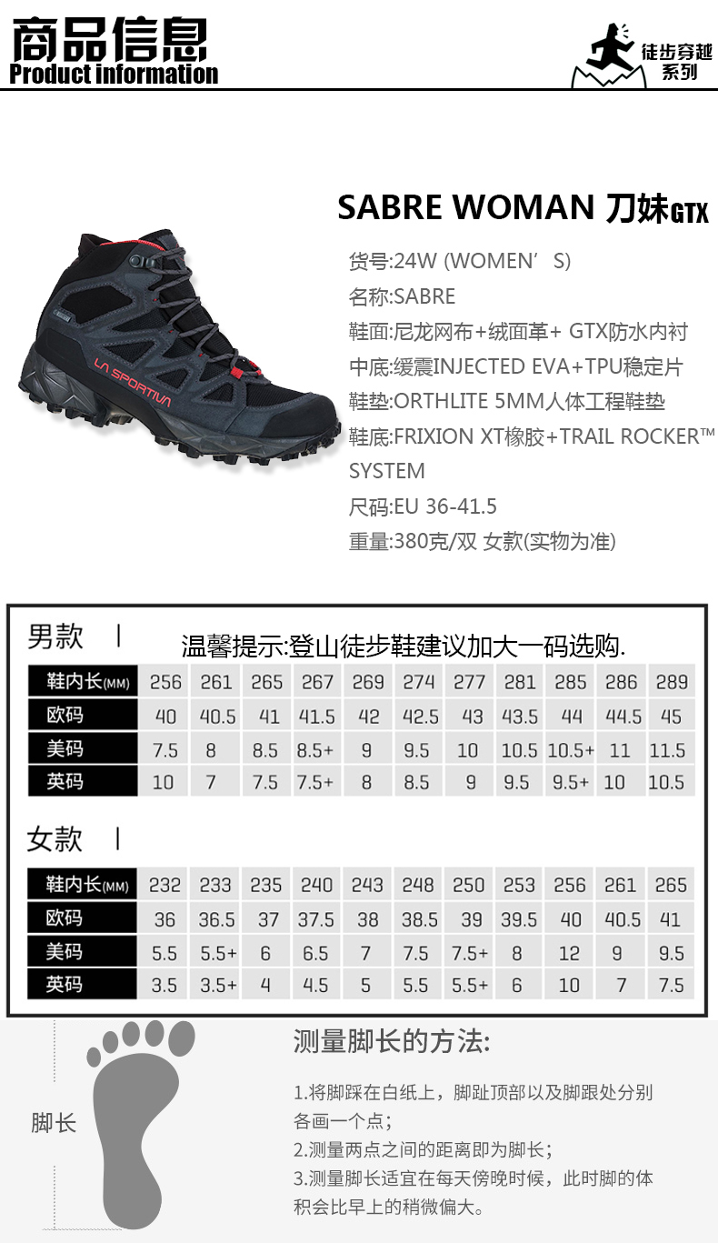 LA SPORTIVA 男女款戶外多地形中邦GTX防水徒步鞋Sabre 24W 24V