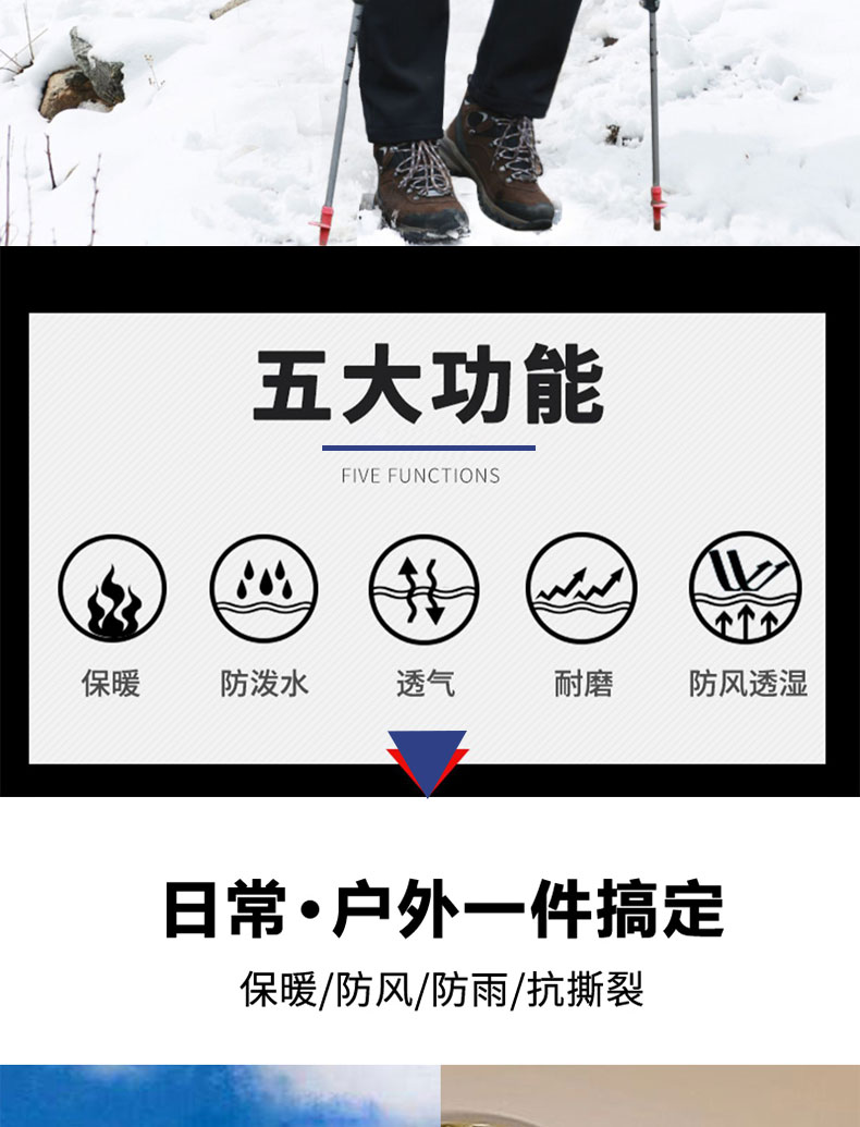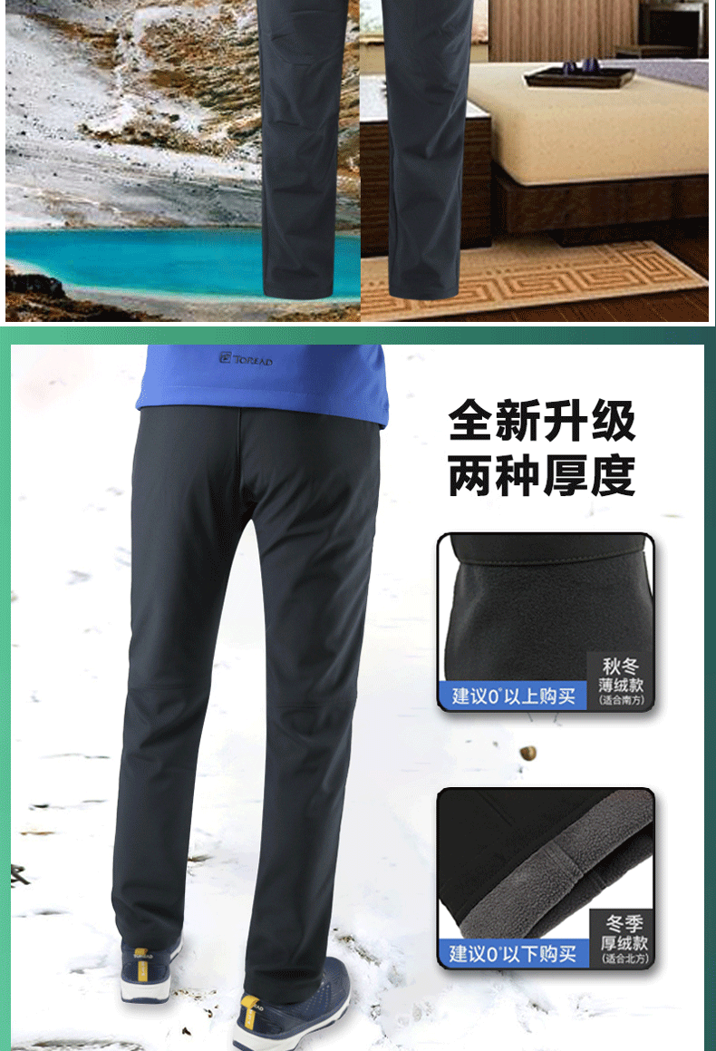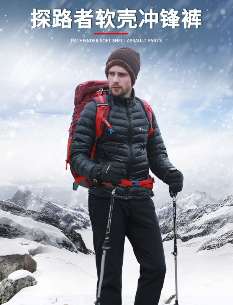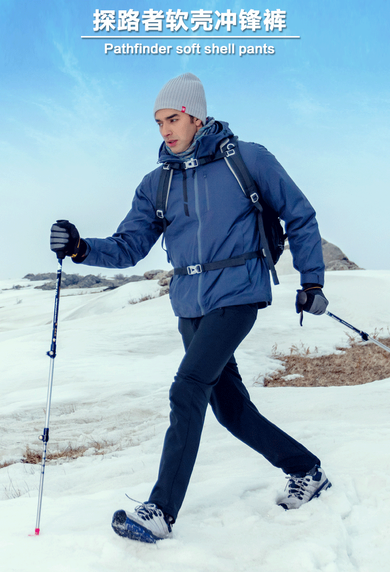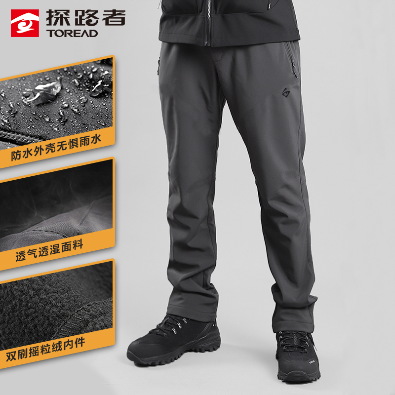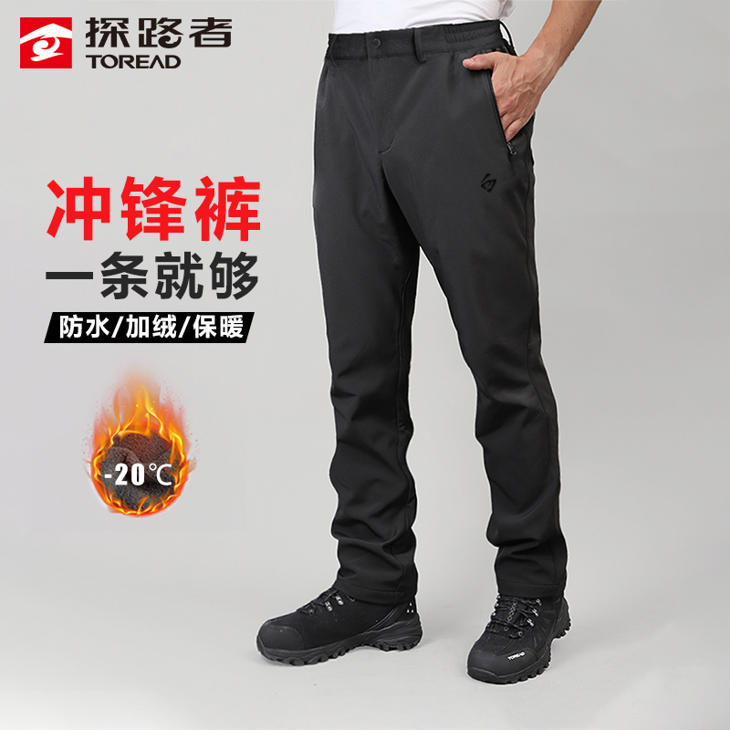 探路者衝鋒褲男戶外防水保暖軟殼褲男防風加絨登山褲滑雪褲長褲男