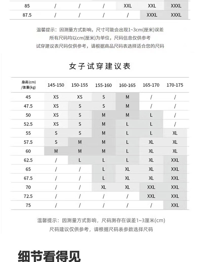 尺碼 S/165 M/170 L/175 XL/180 XXL/185 XXXL/190 S/155 M/160 L/165 XL/170 XXL/175