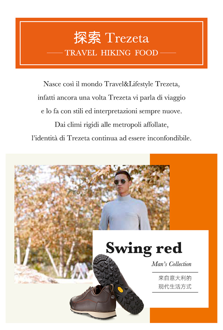 Trezeta山悅意大利戶外男士牛皮低幫休閒徒步登山鞋