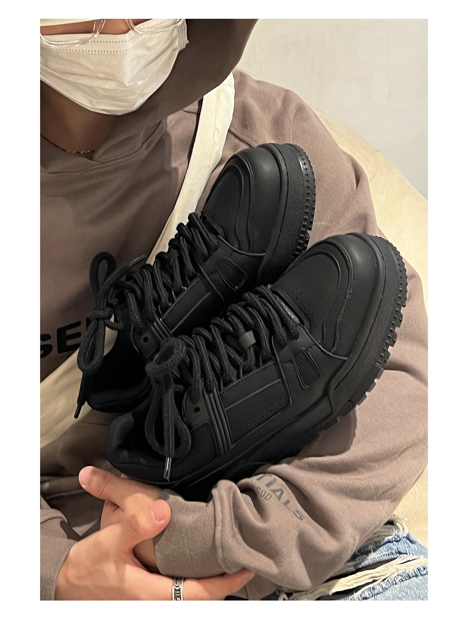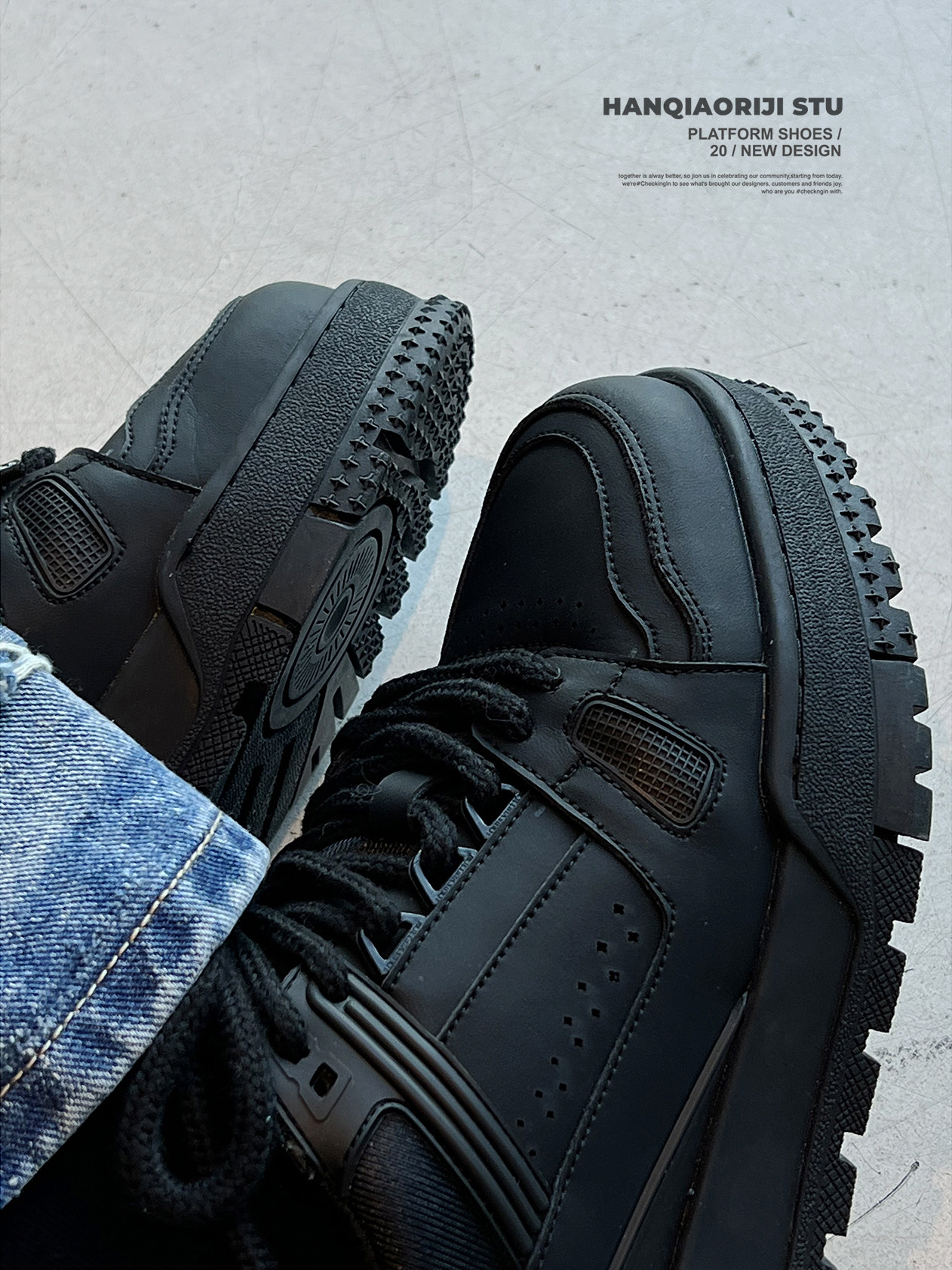 韓橋日記「黑血系列」ins情侶休閒板鞋潮百搭厚底增高男女休閒鞋