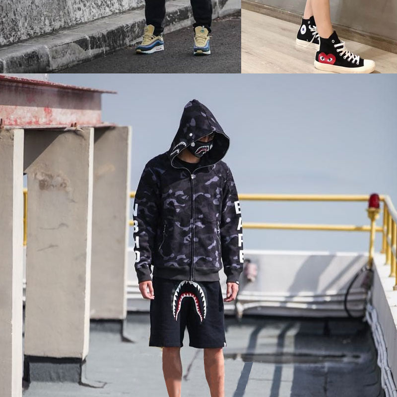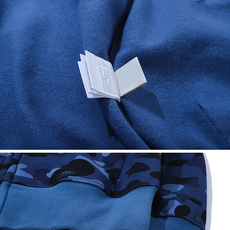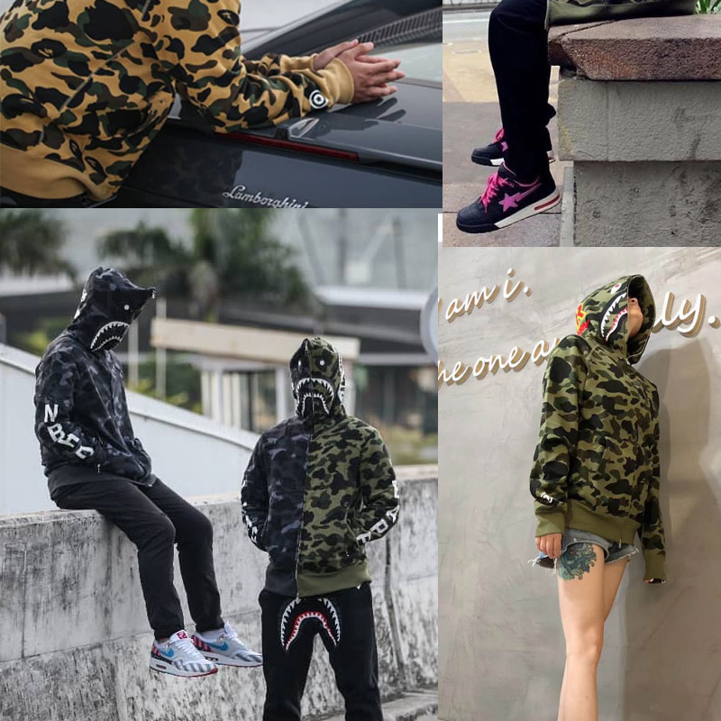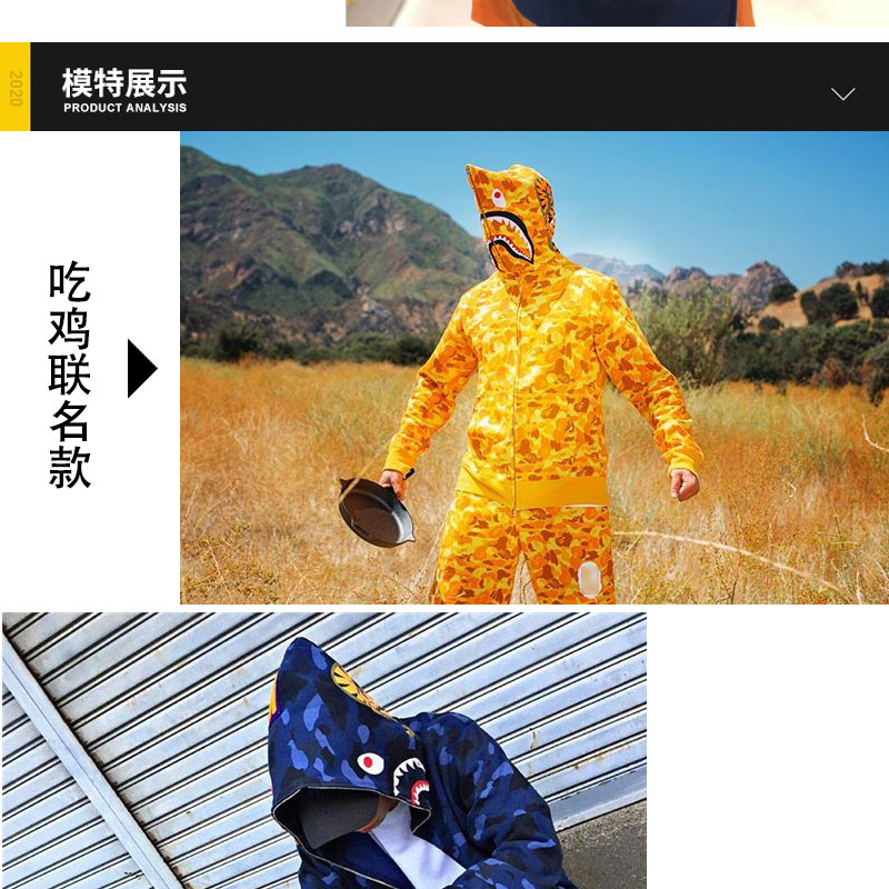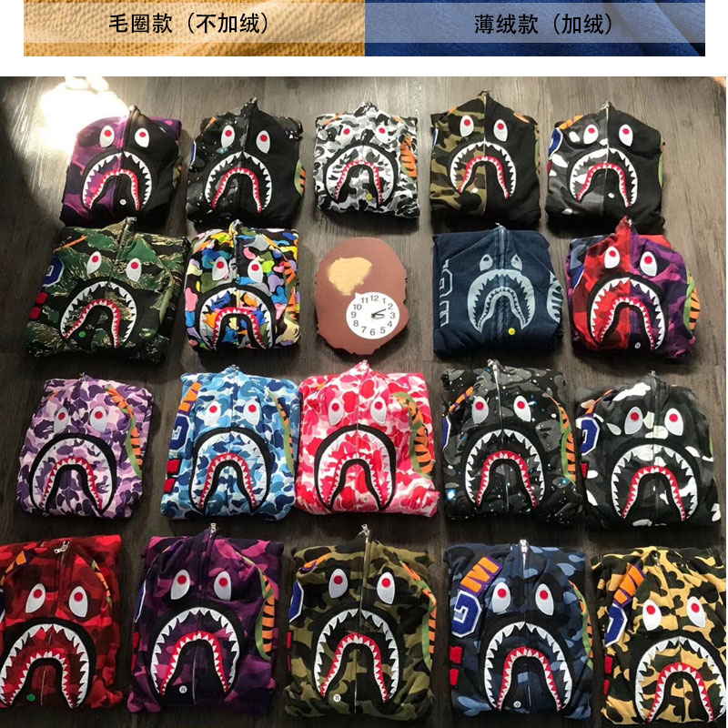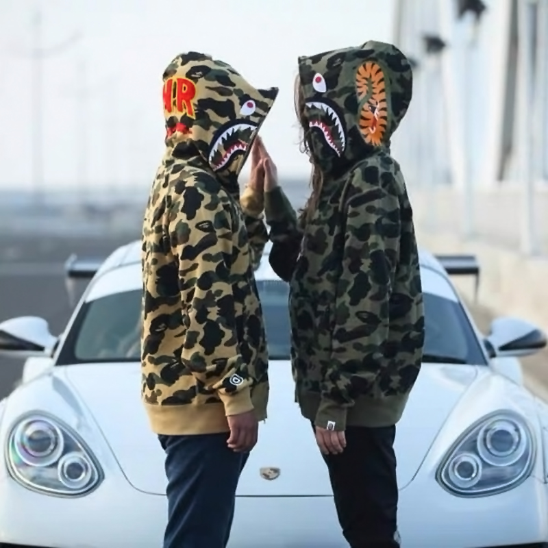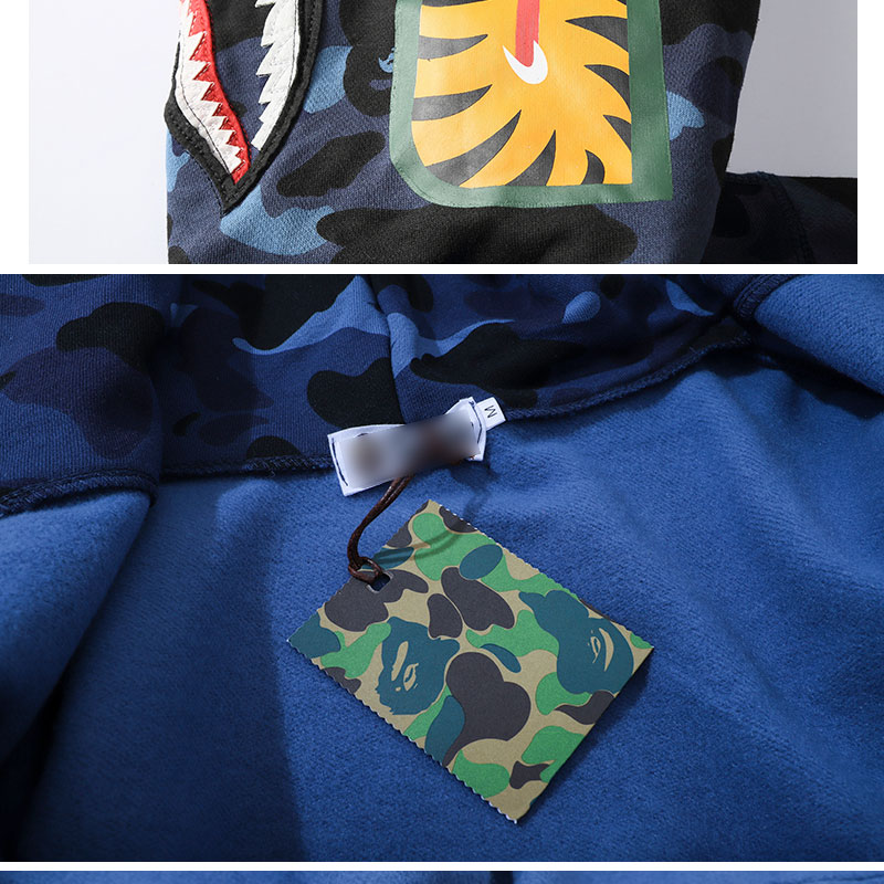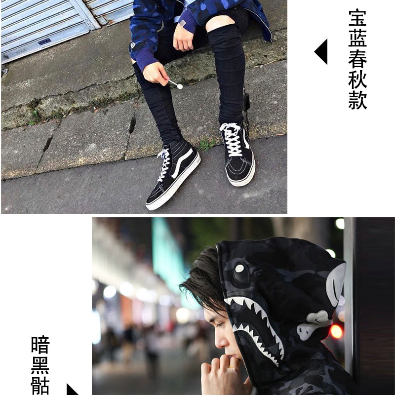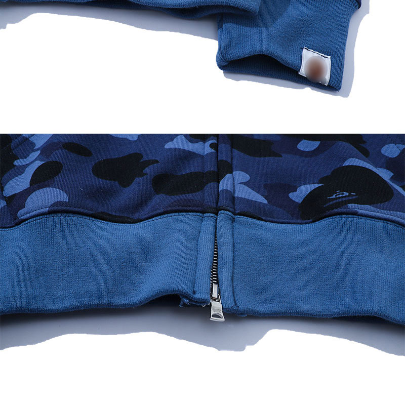 日系潮牌鯊魚外套迷彩夜光刺繡開衫連帽運動衫寬鬆拼接帽衫男女學生