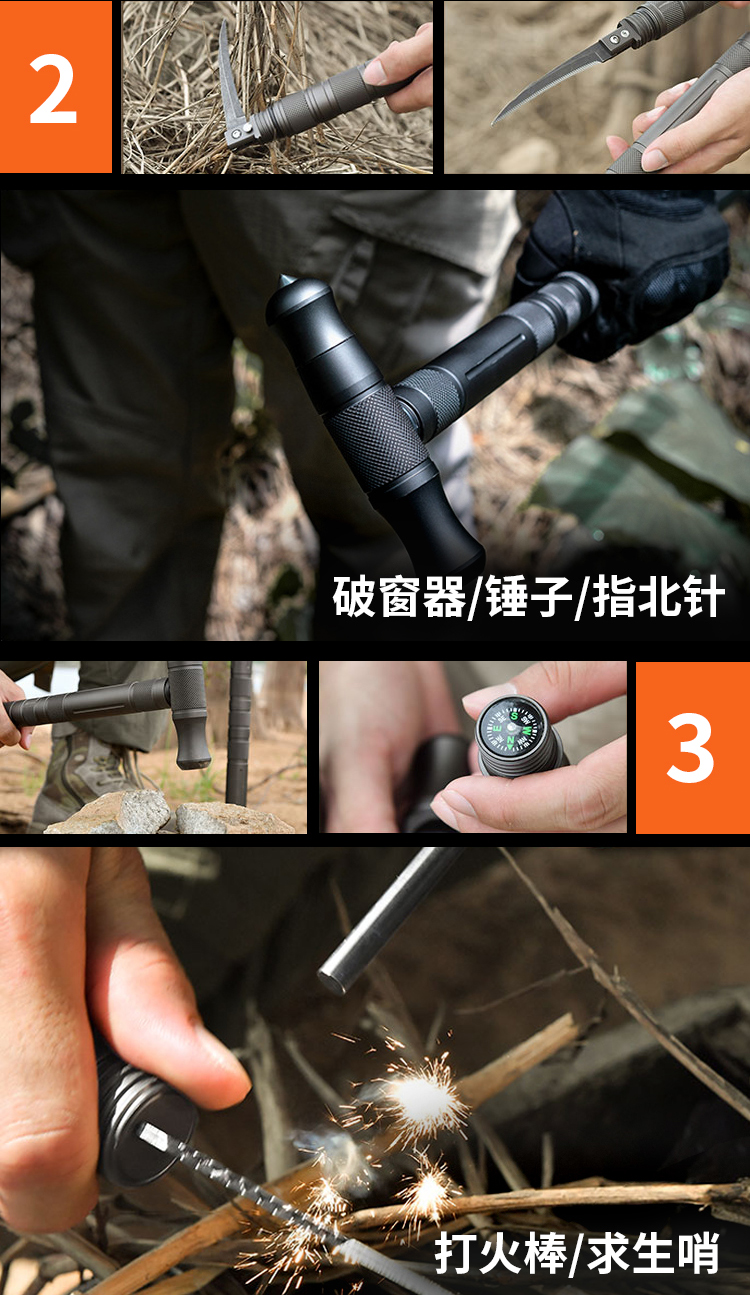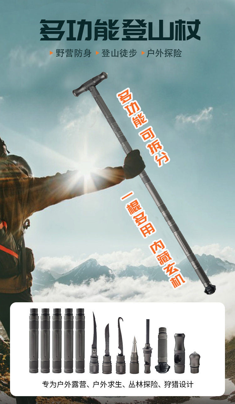 多功能登山杖戶外防身棍中刀自衛男車載防身戰術棍伸縮摺疊柺杖手