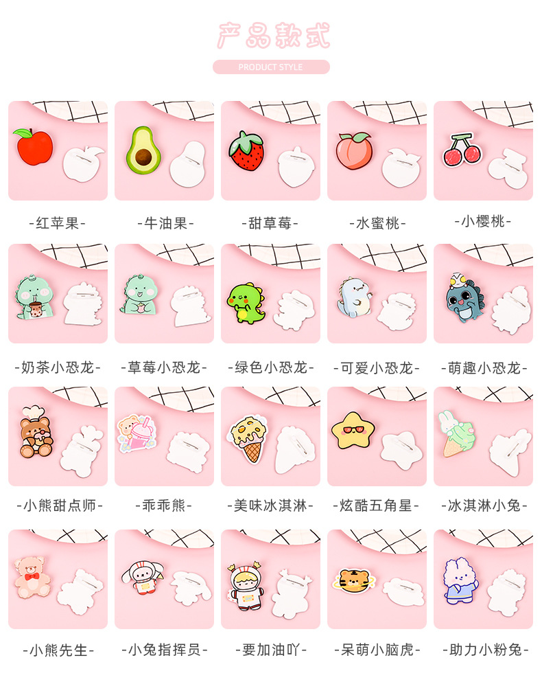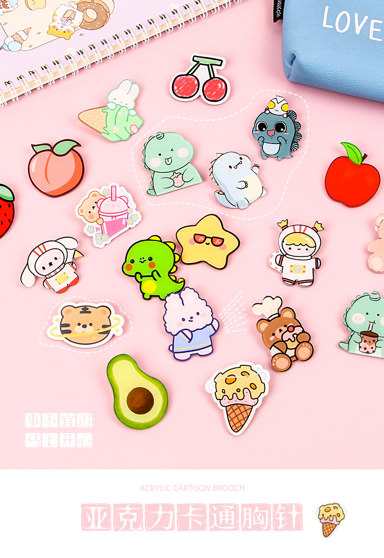 可爱胸针亚克力创意卡通衣服包包配饰别针儿童徽章小饰品批发