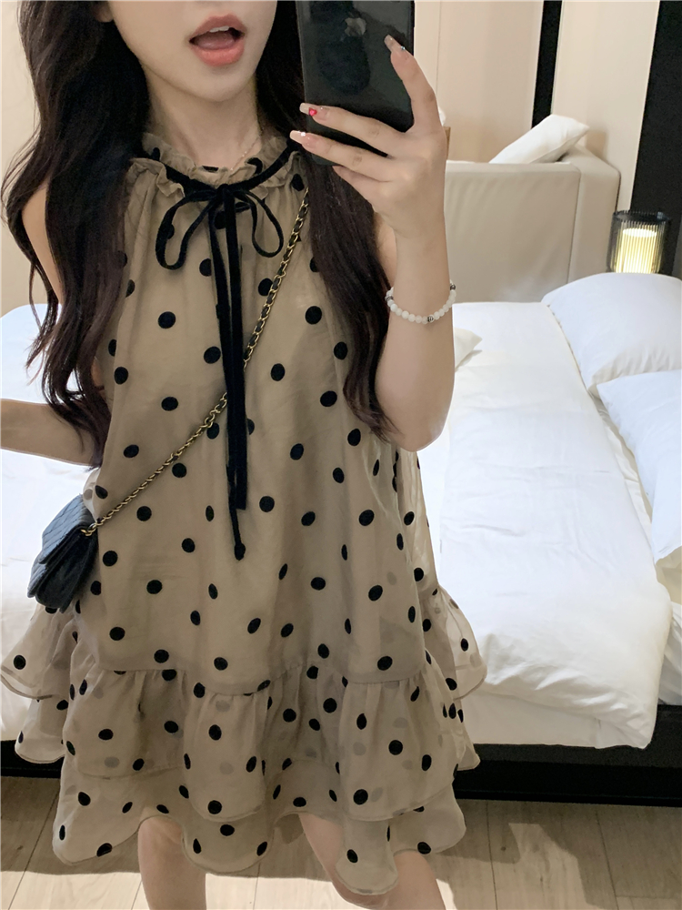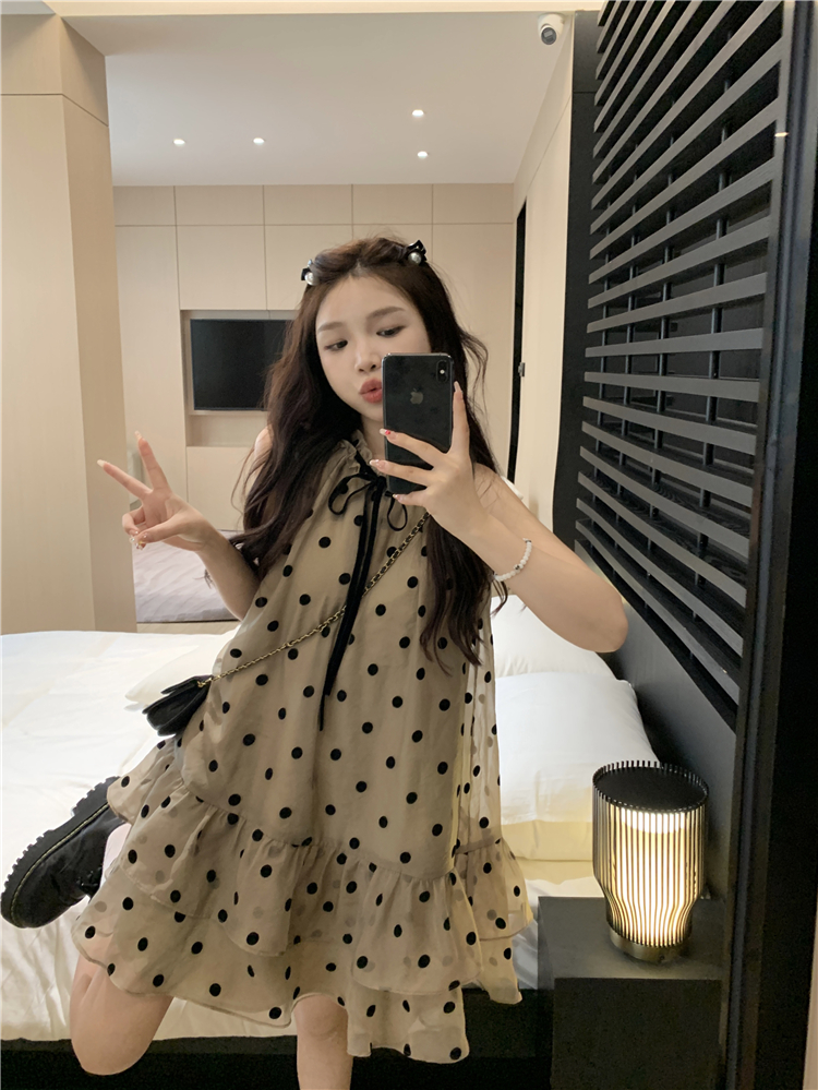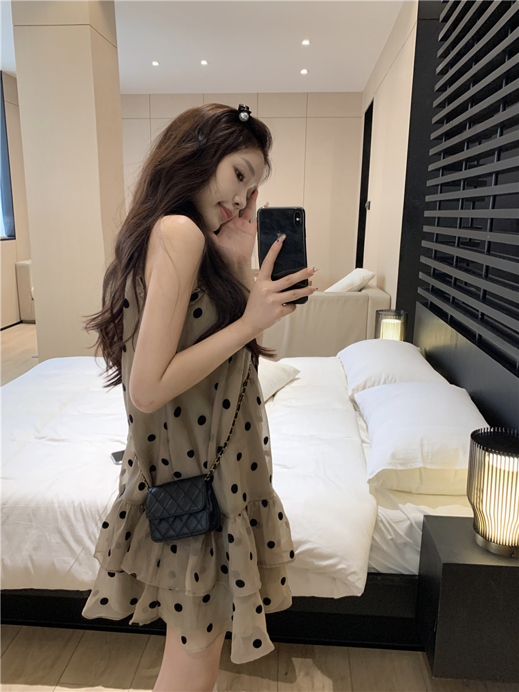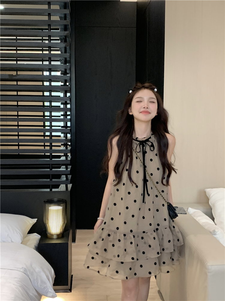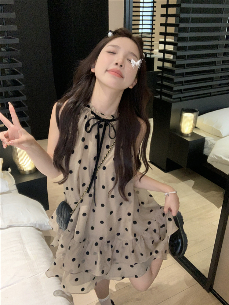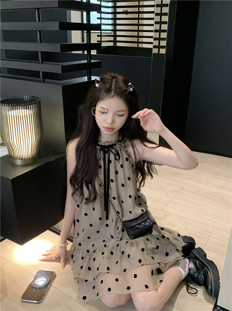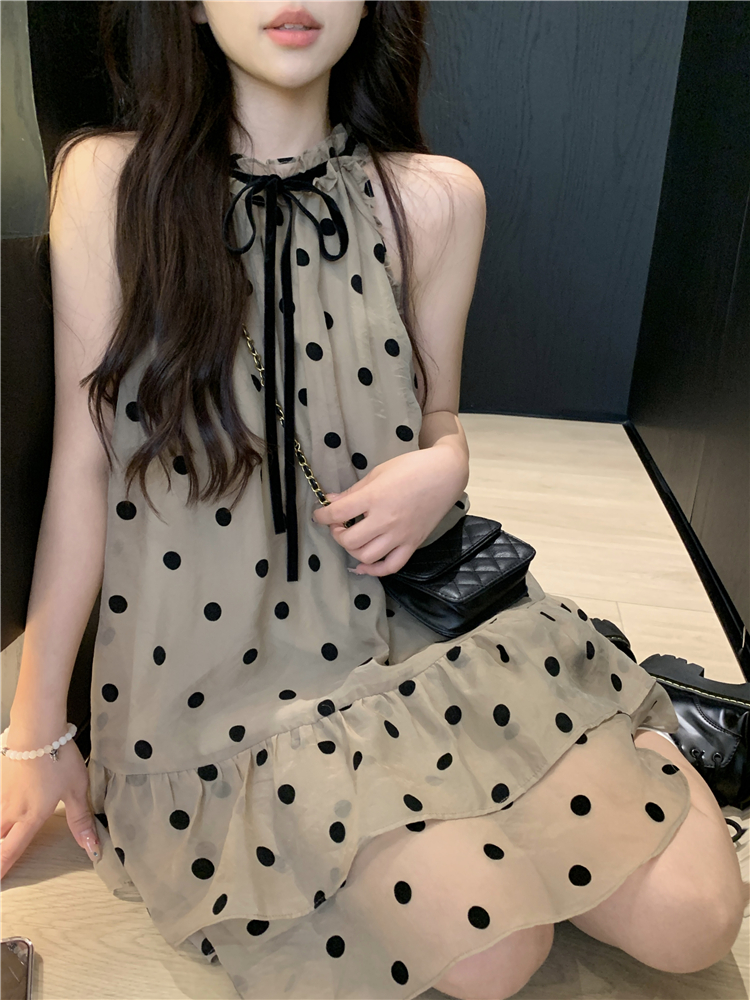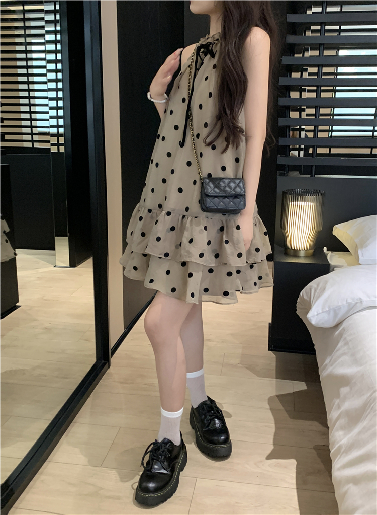 PPHOME香椰酷妹~洋派減齡寬鬆掛頸洋裝女夏設計感別致漂亮短裙