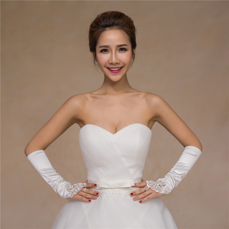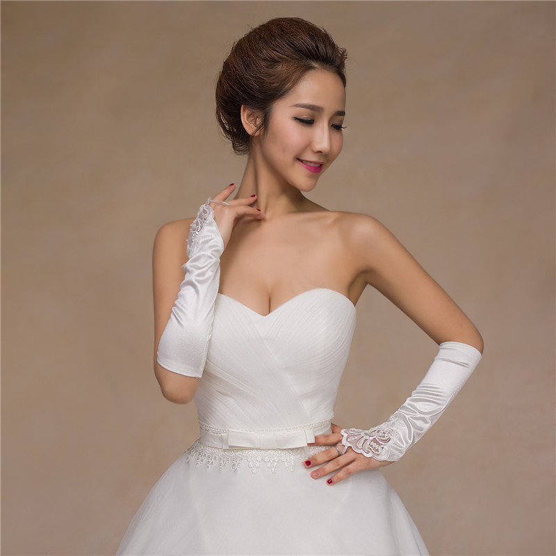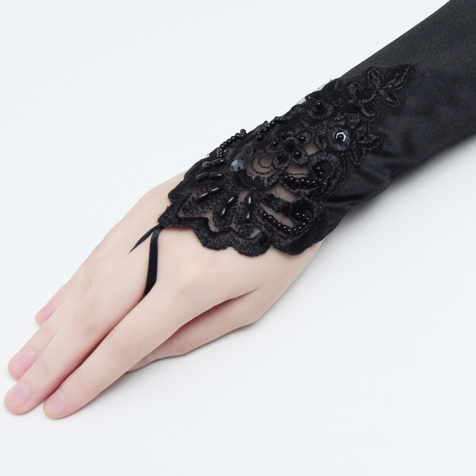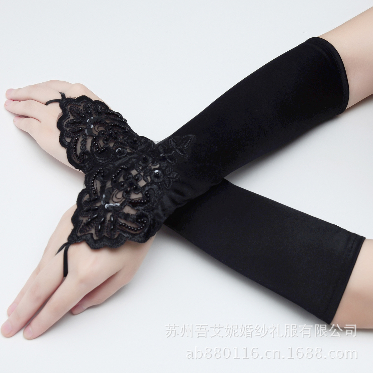 新娘手套无指小花平板绣花缝珠手袖婚纱礼服红色白色黑色婚庆手套