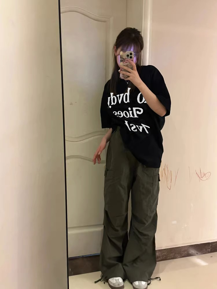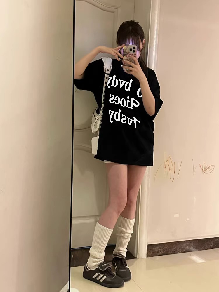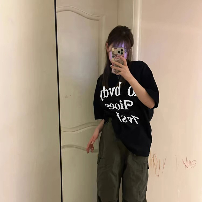 美式復古高街重磅純棉正肩短袖T恤女大尺碼寬鬆oversize半袖上衣ins