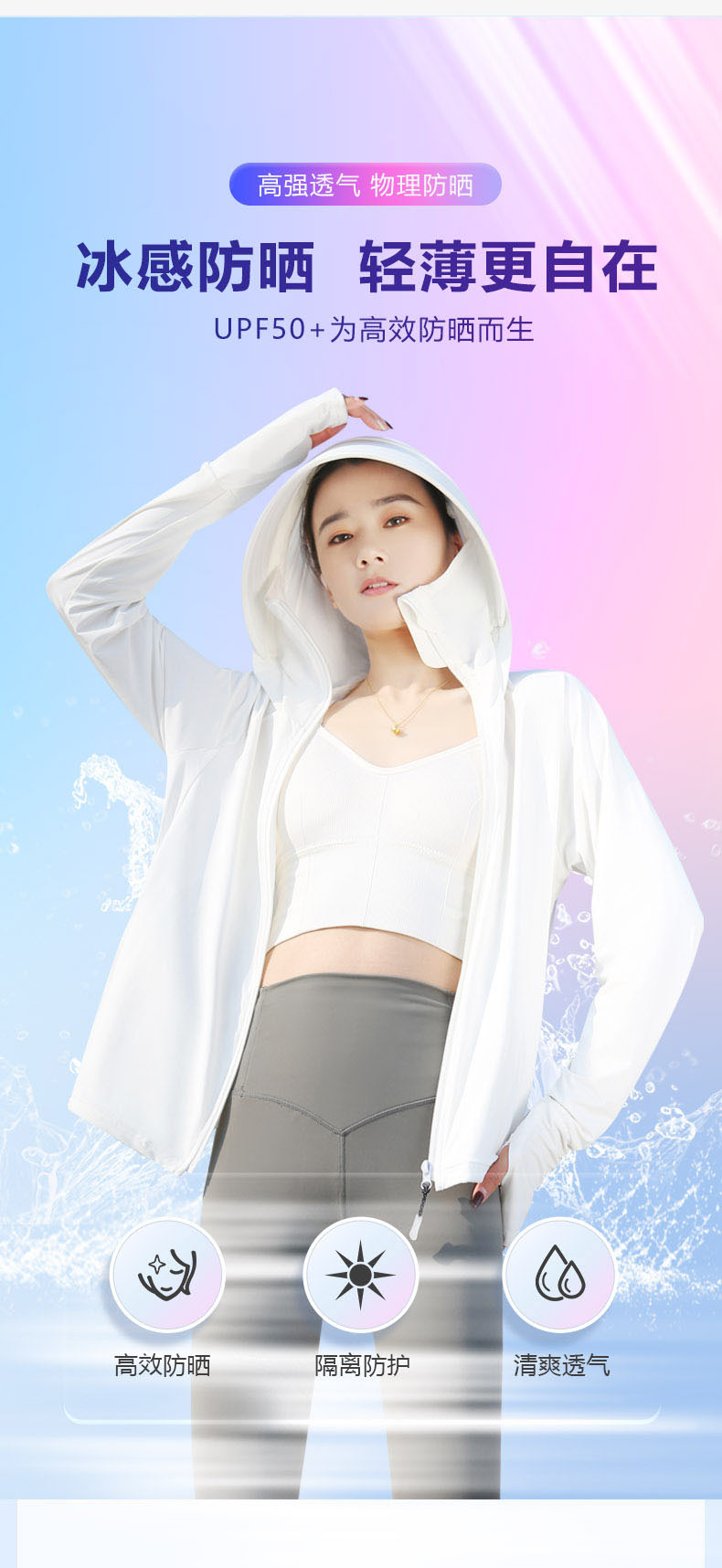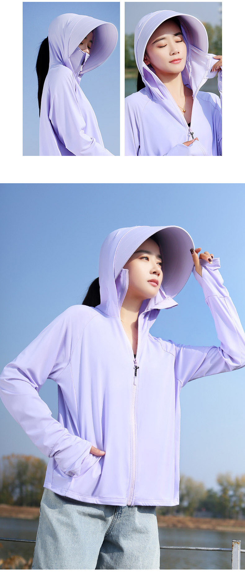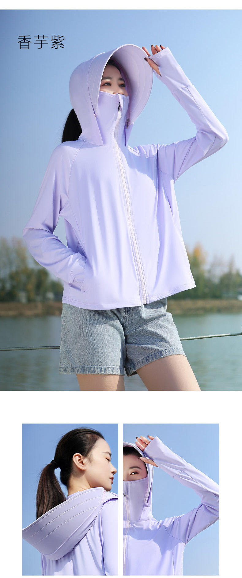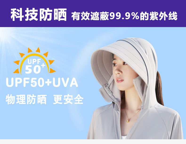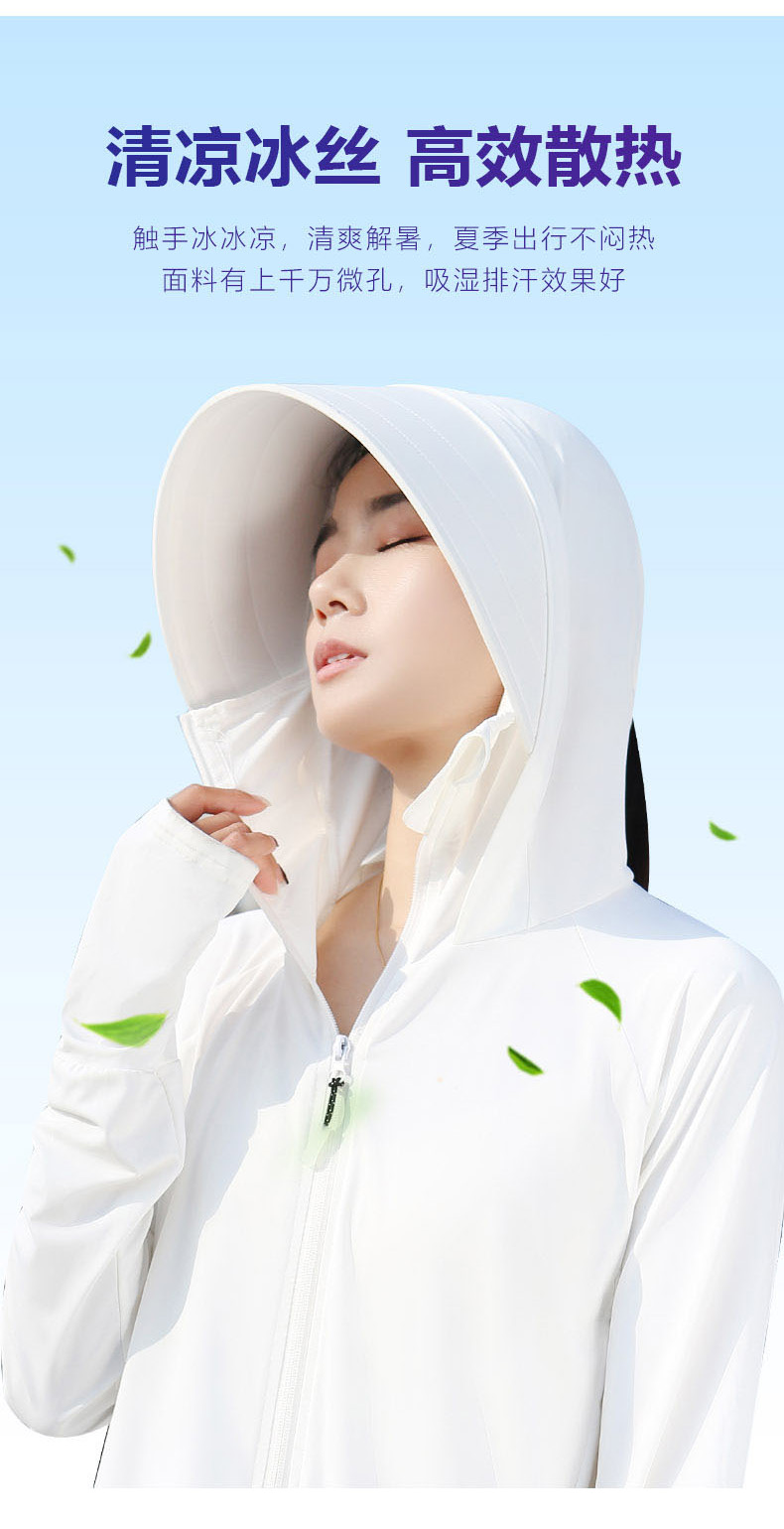 冰絲大帽簷夏季抗UV防曬衣女2023新款原紗薄款透氣涼感防曬服