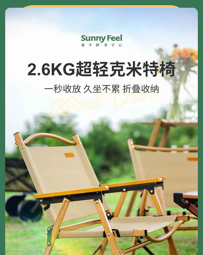 山扉Sunnyfeel戶外摺疊椅子可攜式露營野餐桌椅超輕鋁合金克米特椅