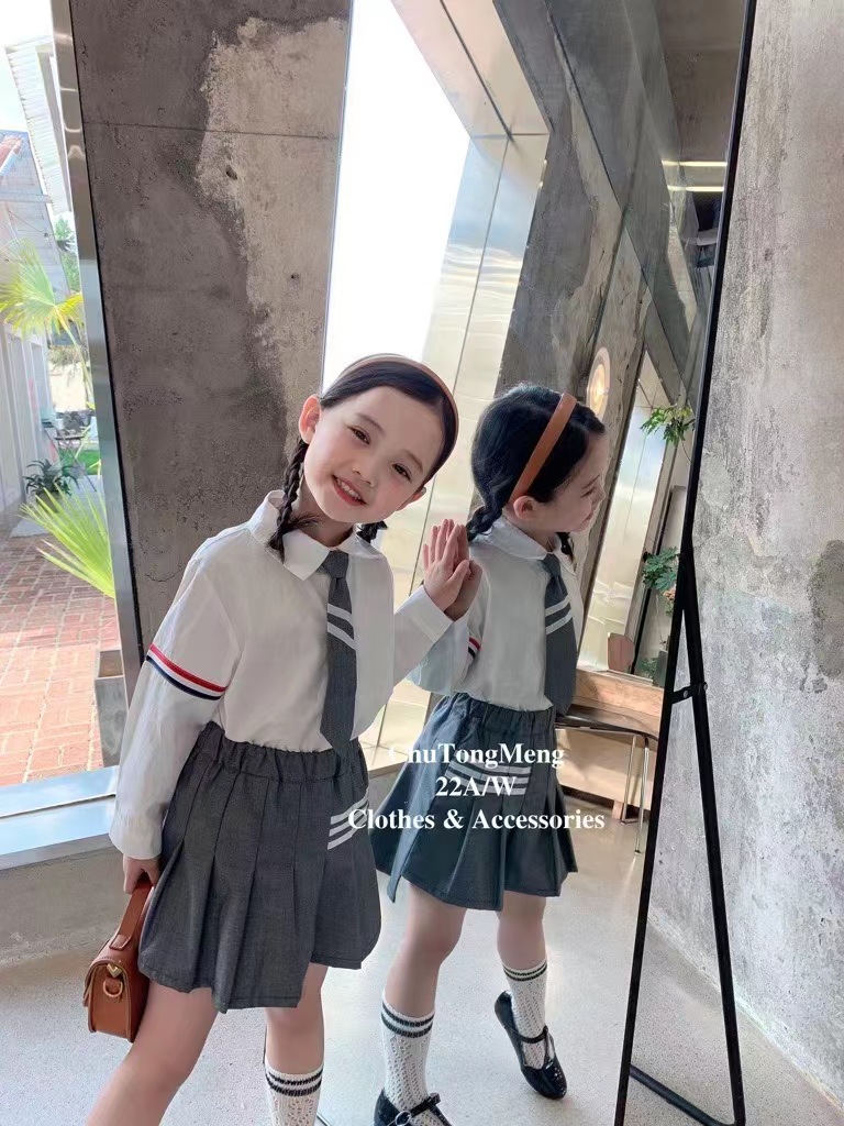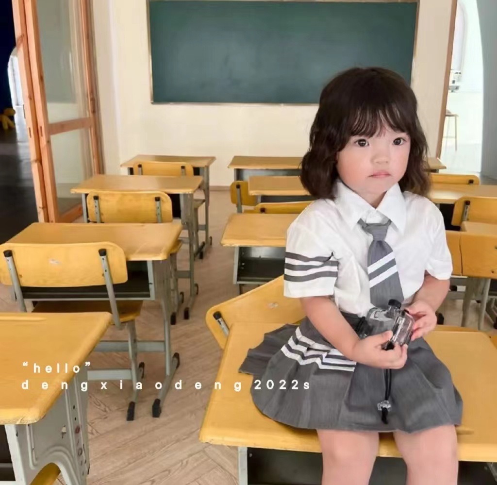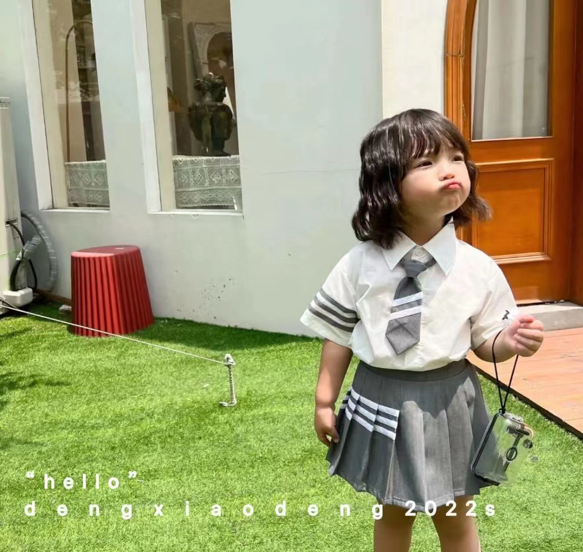 亲子男女童学院风套装2022夏季春秋新款甜美可爱两件套王心凌同款