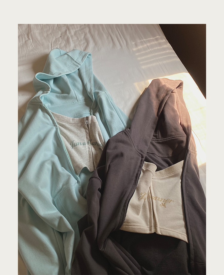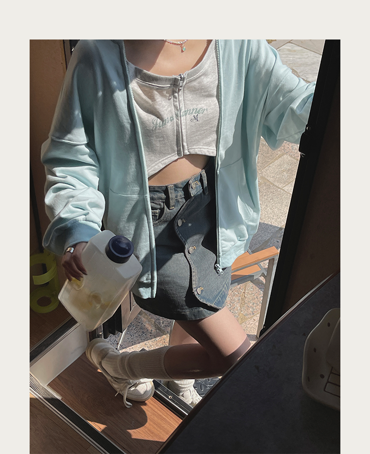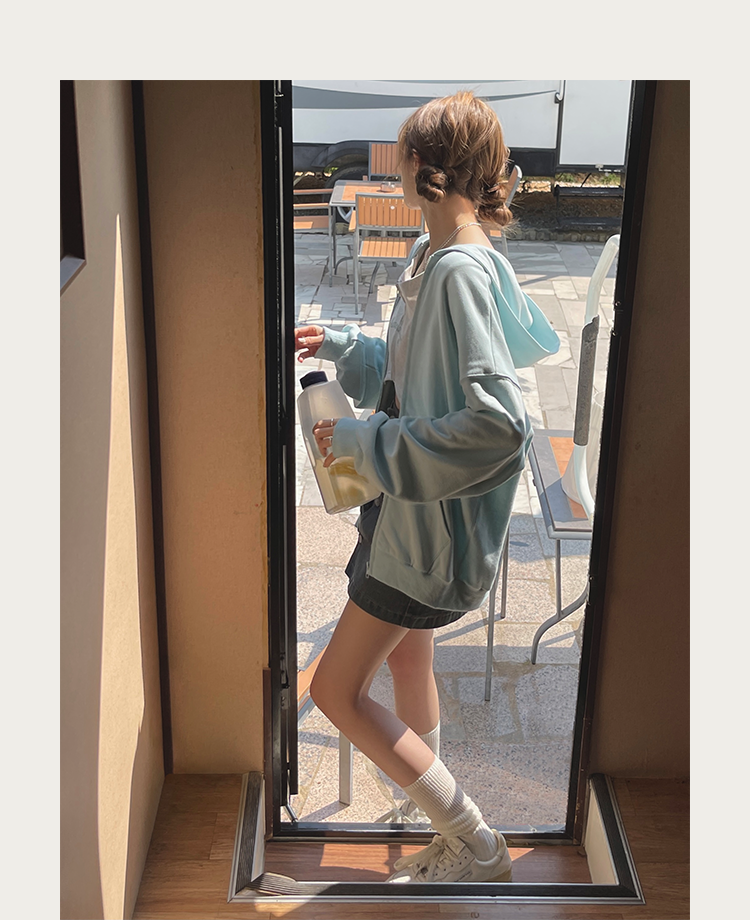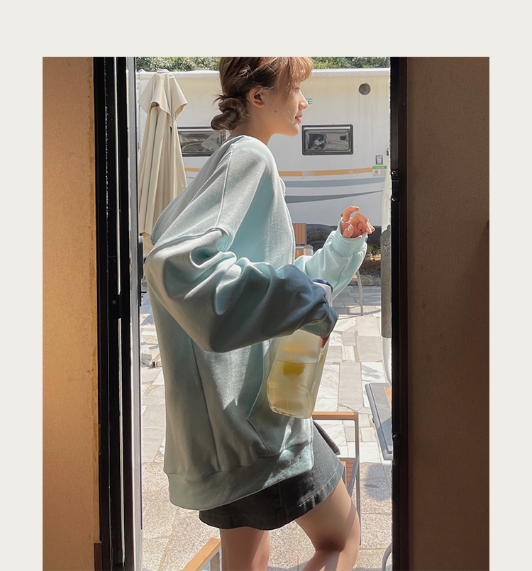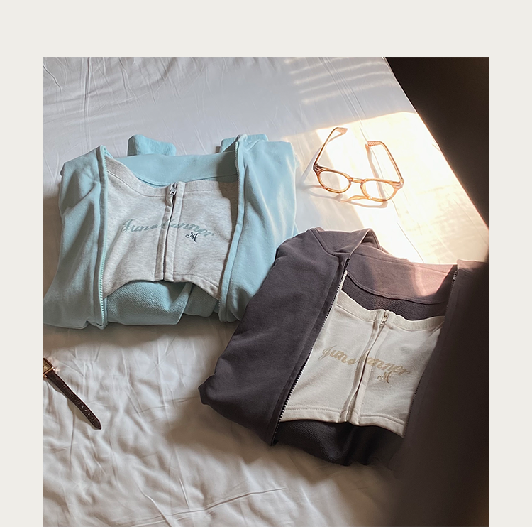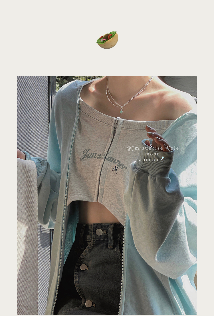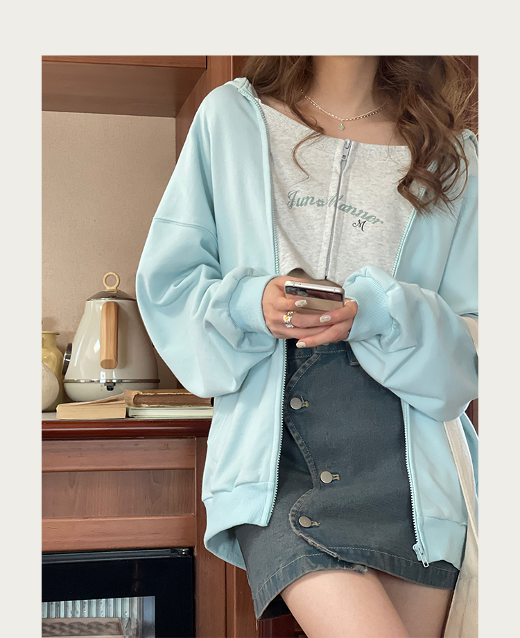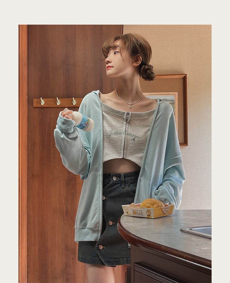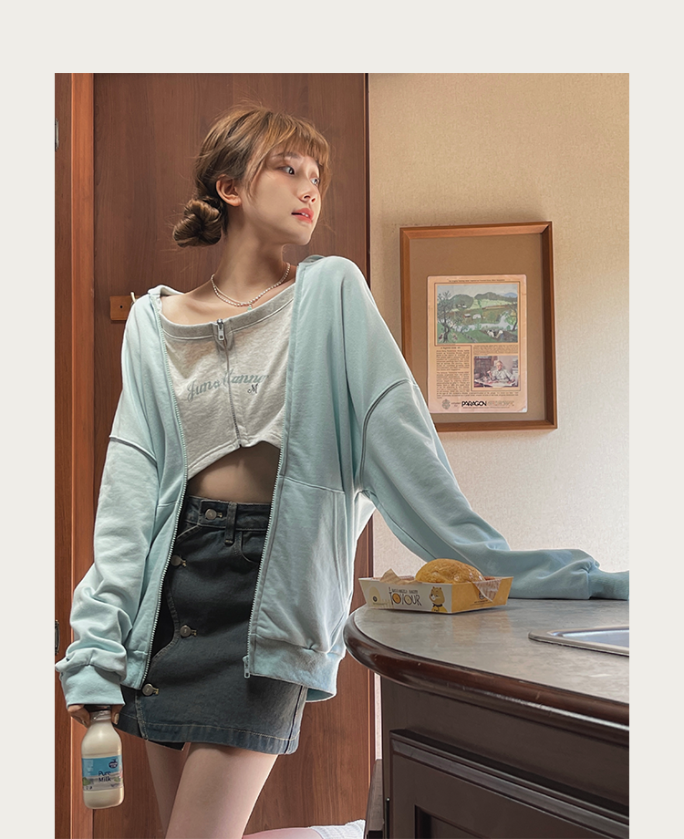 jmwomen 冰薄荷假兩件連帽運動衫開衫女寬鬆韓版2023春秋款小眾外套