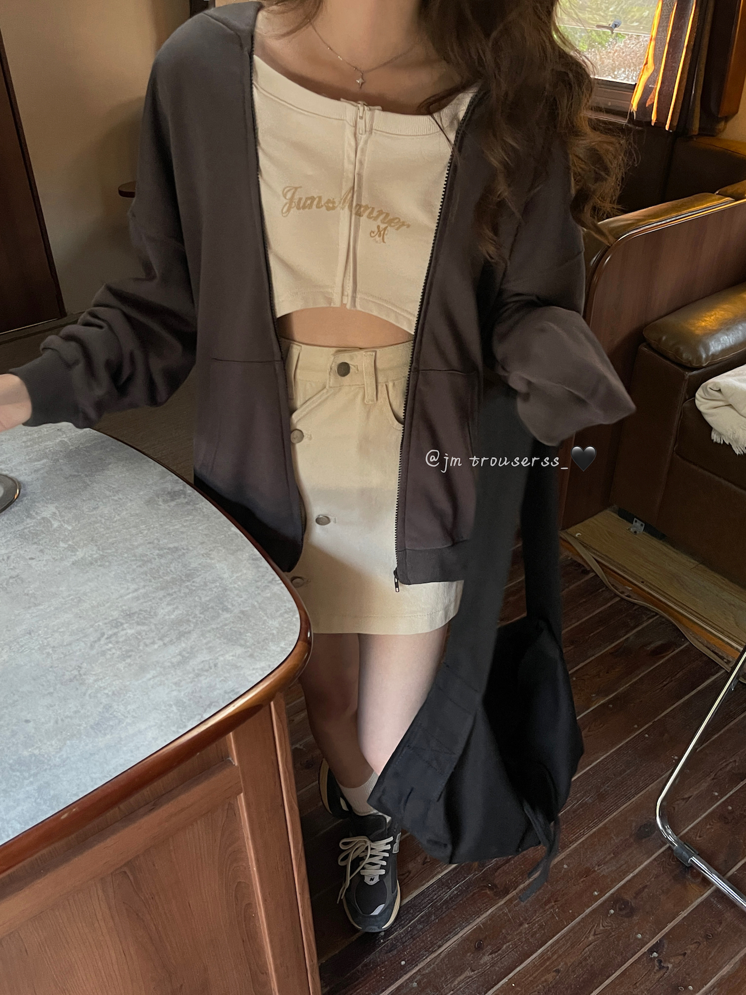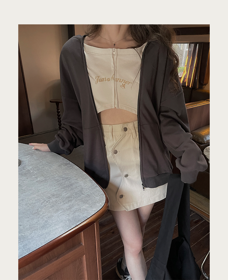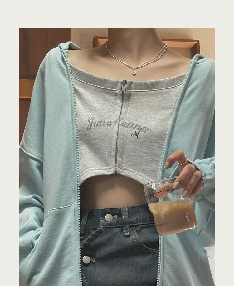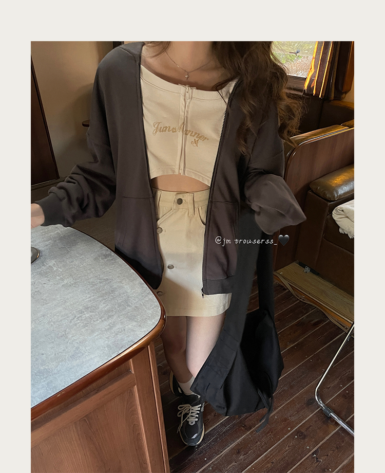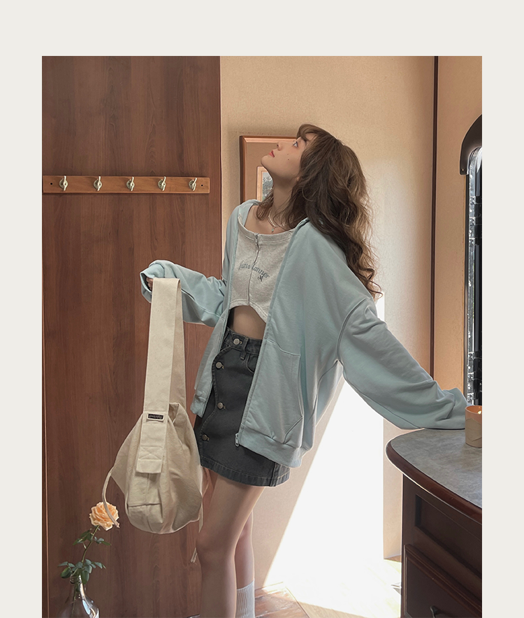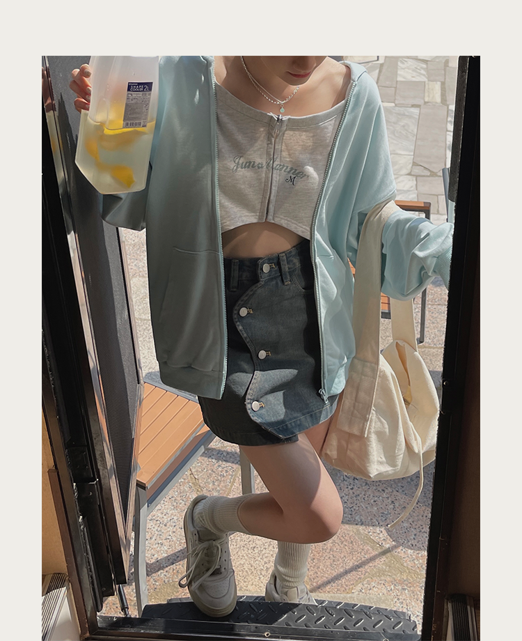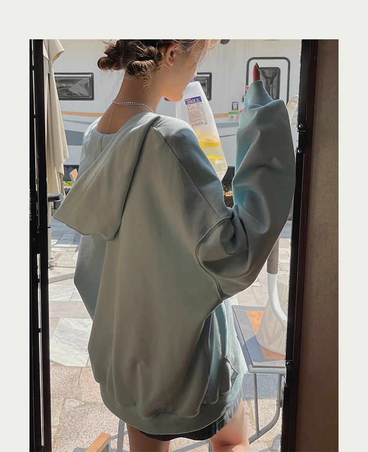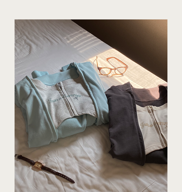 jmwomen 冰薄荷假兩件連帽運動衫開衫女寬鬆韓版2023春秋款小眾外套