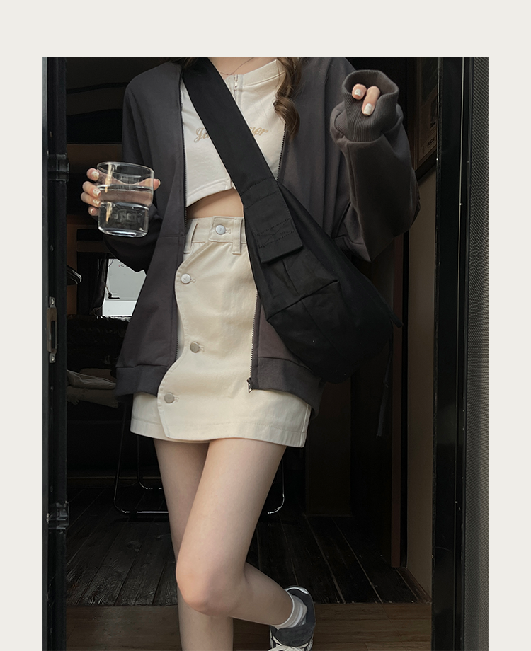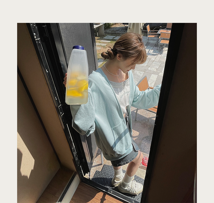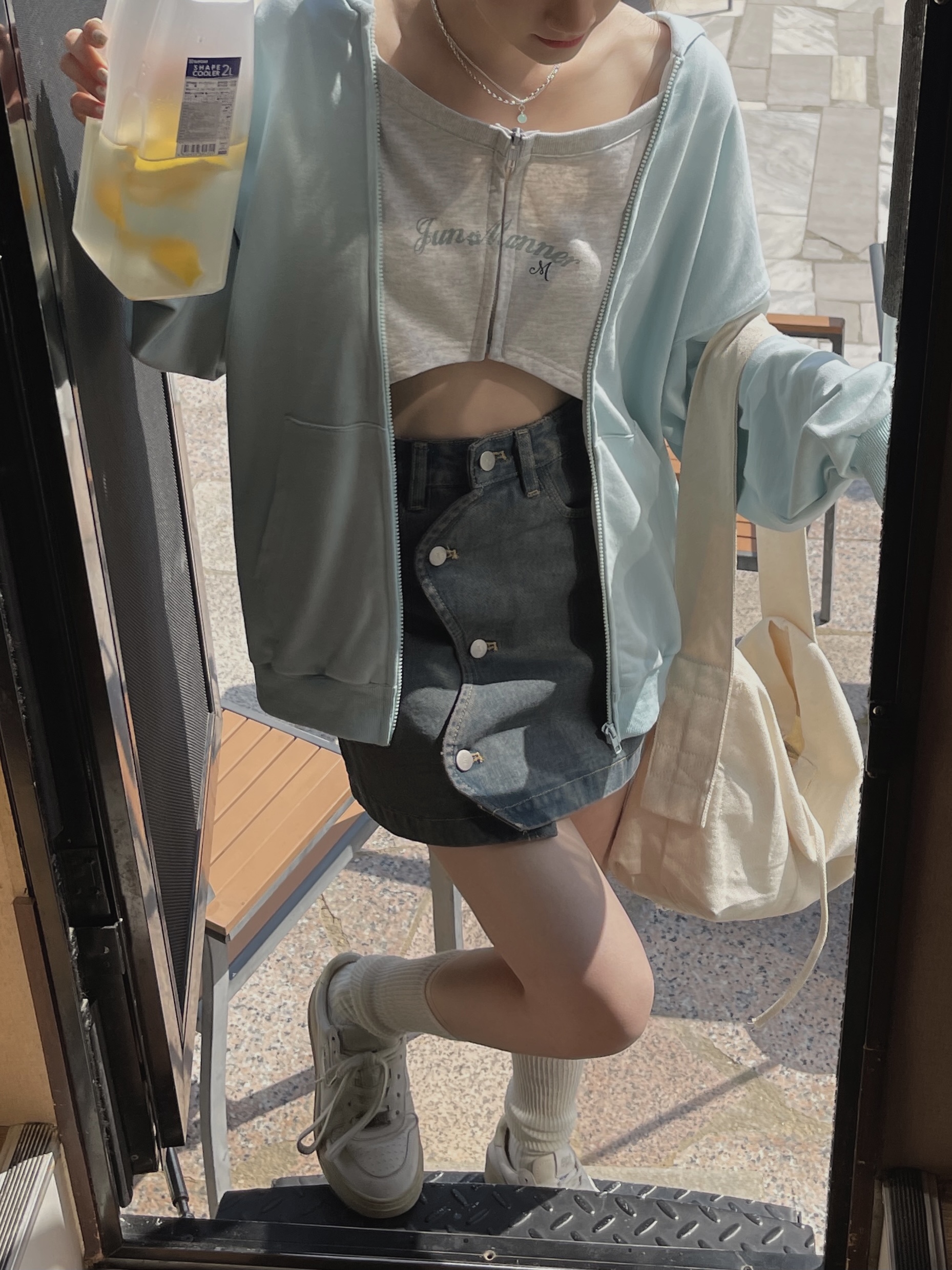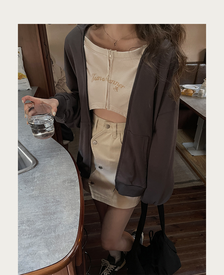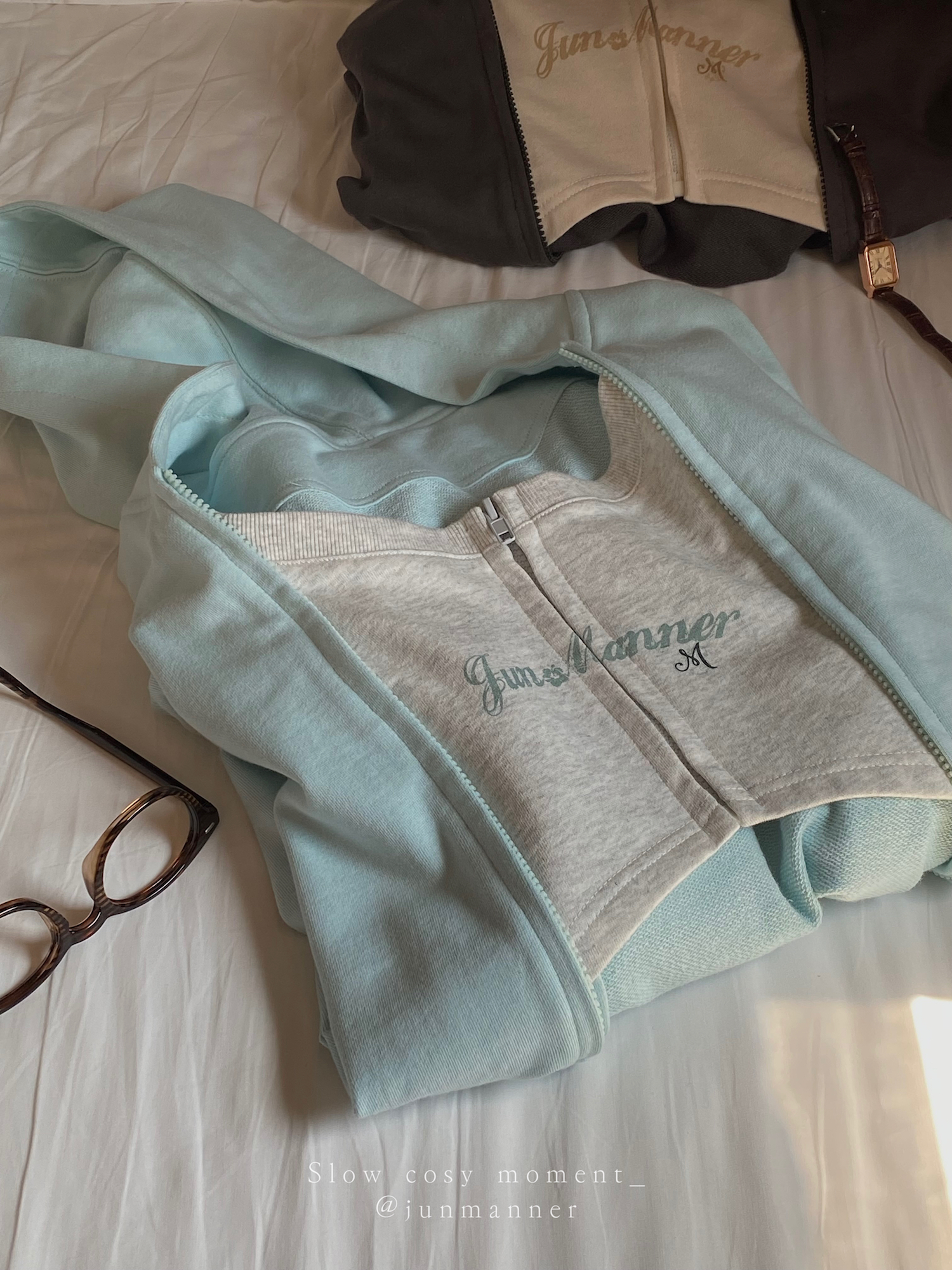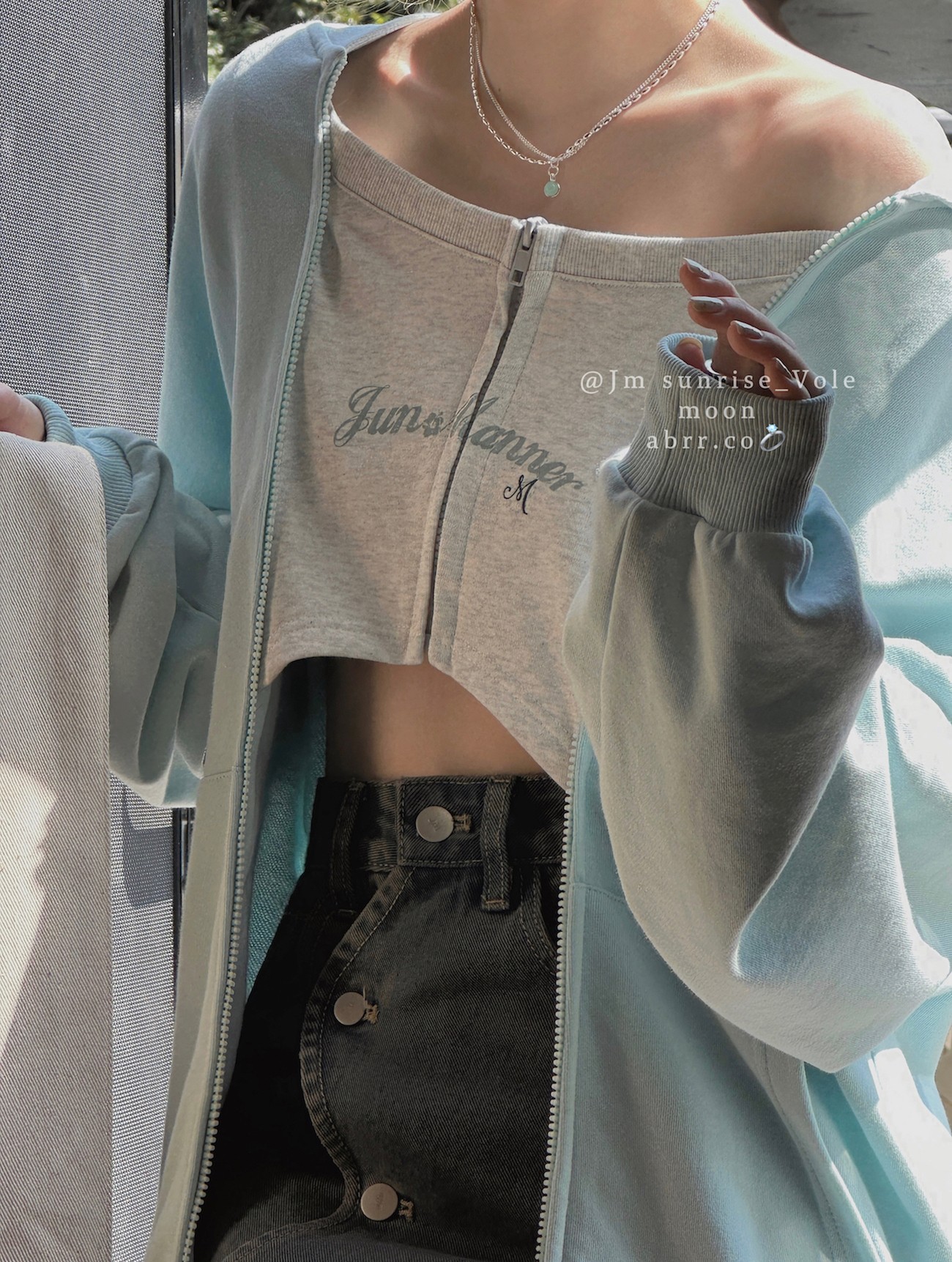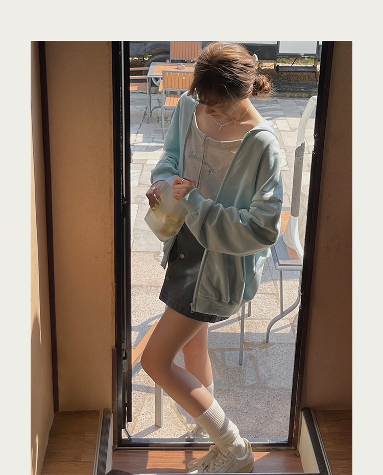 jmwomen 冰薄荷假兩件連帽運動衫開衫女寬鬆韓版2023春秋款小眾外套
